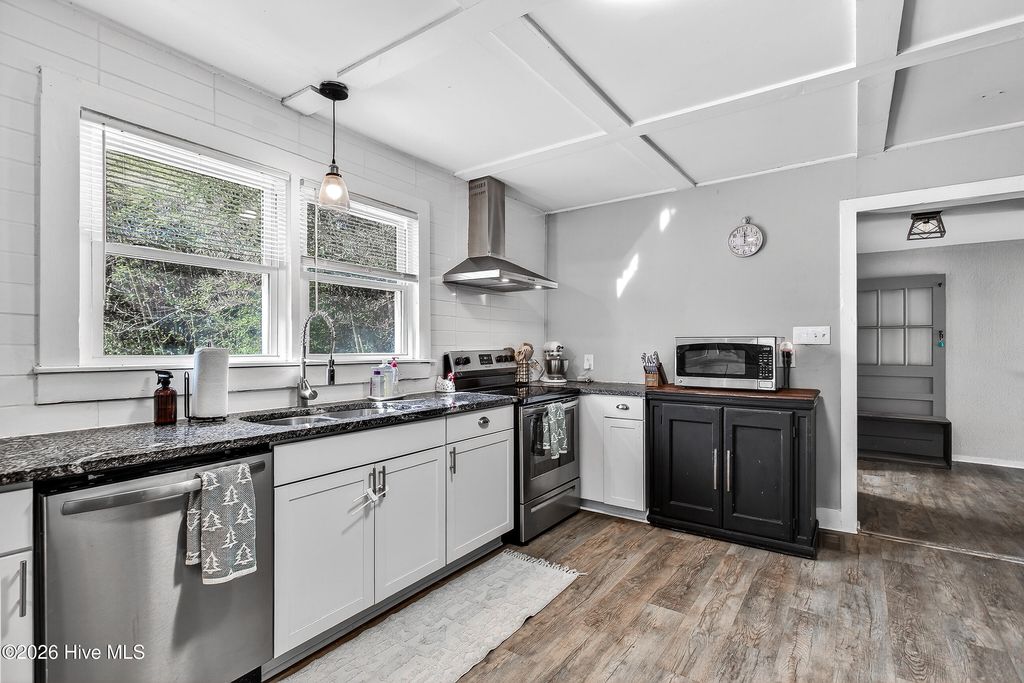 Tucked into a chapter of its own, this 1940s cottage feels like the kind of place where good stories begin. Fully remodeled while keeping its vintage soul intact, this three-bedroom, two-bath home offers 1,386 square feet of charm, warmth, and ''wait... this is cute'' moments around every corner. Exposed wood beams and statement ceilings set the tone right away"”because plain ceilings are for houses with no personality. Throughout the home, thoughtful details lean into classic cottage style without trying too hard, including the original front door repurposed as an interior feature"”a subtle flex for anyone who appreciates a good story and good craftsmanship. The kitchen is equal parts function and flair, featuring granite countertops, generous cabinet space, and plenty of room to cook, bake, or dramatically lean against the counter with a glass of wine while deciding what to order instead. There's no carpet anywhere, a spacious laundry room (finally), and a layout that actually makes sense. Big updates are already handled with a newer roof and HVAC system installed in 2022, so you can focus on enjoying the home, not budgeting for surprises. Out front, the enclosed front porch is made for slow mornings, rainy afternoons, and easing into the day with a good book or your favorite playlist. The property is framed by a truly unique bamboo forest, adding texture, movement, and undeniable charm you don't often see in this area"”especially for a home with such convenient access to everything nearby. A storage shed rounds out the package, because charm is great, but storage still matters. This isn't a house that's trying to impress you. It already knows you're going to fall for it. Vintage, warm, a little witty, and full of character"”this cottage is ready for its next love story. P.S. Bring your chickens...NO HOA