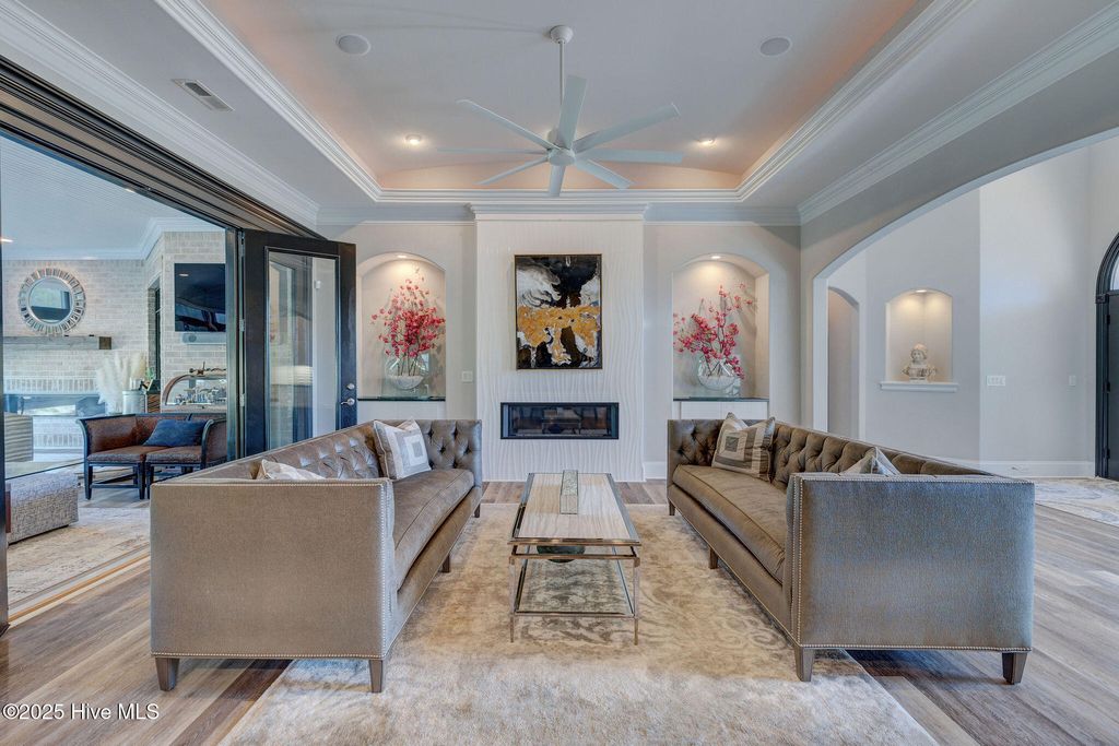 Stunning Golf Course & Pond View Home built by Liberty Homes. This exceptional 3,474 sq. ft. brick home offers luxury living with breathtaking views of the serene pond and golf course . From the grand water feature by the front door to the stunning Swarovski Crystal light fixture, every detail has been carefully designed. The gourmet kitchen features Miele appliances, Jenn-Air Fridge, a Blanco sink with pot filler, a spacious island with seating, and elegant white backsplash that matches the mantle. The formal dining room and in-kitchen dining provide versatile options for entertaining, while the lanai offers ample room for outdoor dining. The home's interior is beautifully appointed with black-painted trim throughout, while the master suite boasts a massive walk-in shower, three vanity areas, and dual walk-in closets complete with custom shelving, drawers, and cubbies. Enjoy the convenience of a beverage station near the kitchen and guest suite as well as a dedicated laundry room with drop zone. Off the hall by the lanai and second dining area is a powder room, full custom wooden bar room with copper accents and a jewelry safe and a storage room to ensure you have everything you need for both everyday living and hosting. Upstairs, a full guest suite with bath provides privacy and comfort, and the attic space offers additional storage options. Two gas fireplaces, a spacious side and back patio with both gas and wood-burning fire pits complete this home's unparalleled features. Perfect for those who love to entertain and appreciate fine craftsmanship, this home is truly one-of-a-kind!