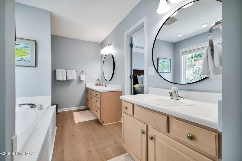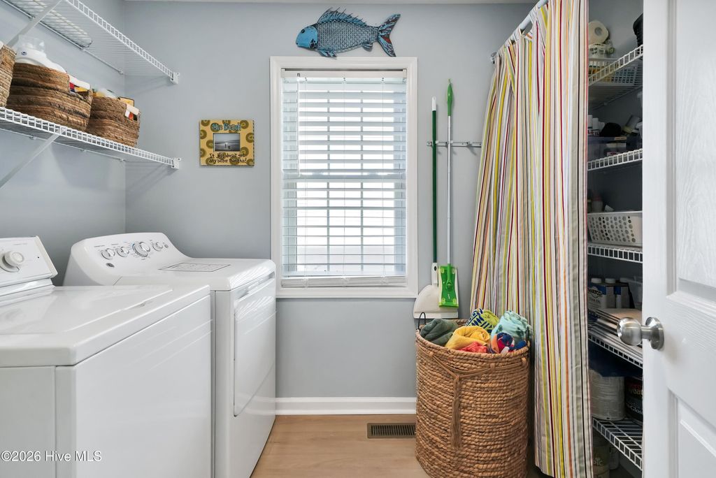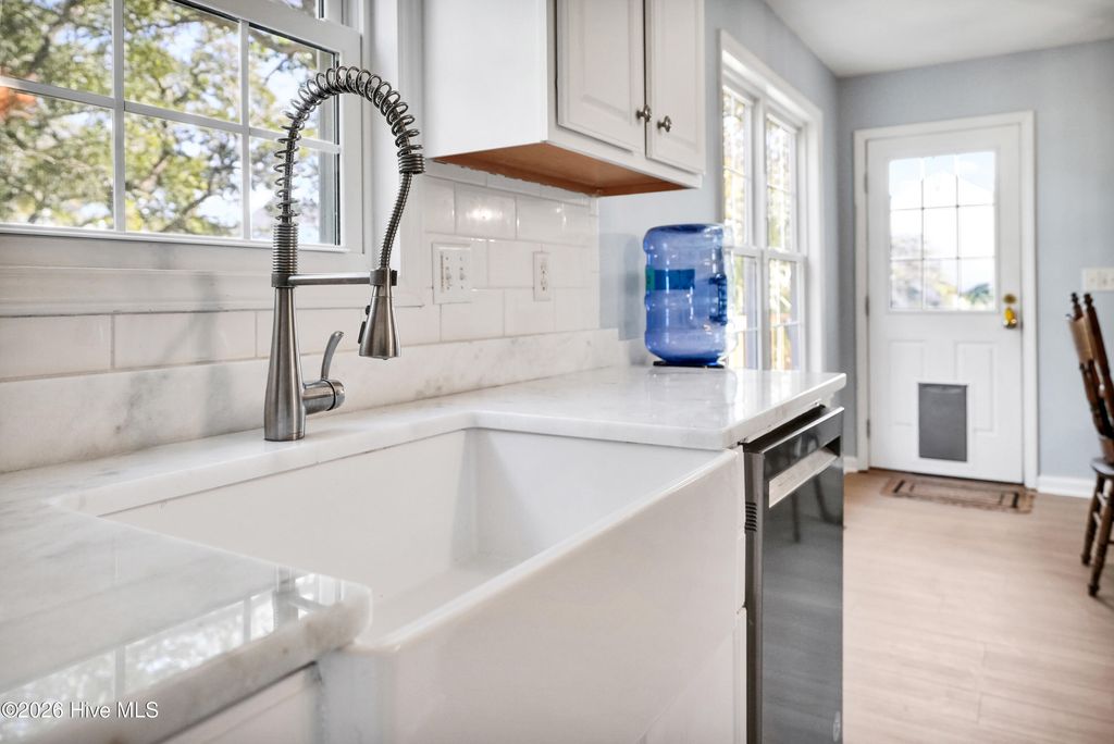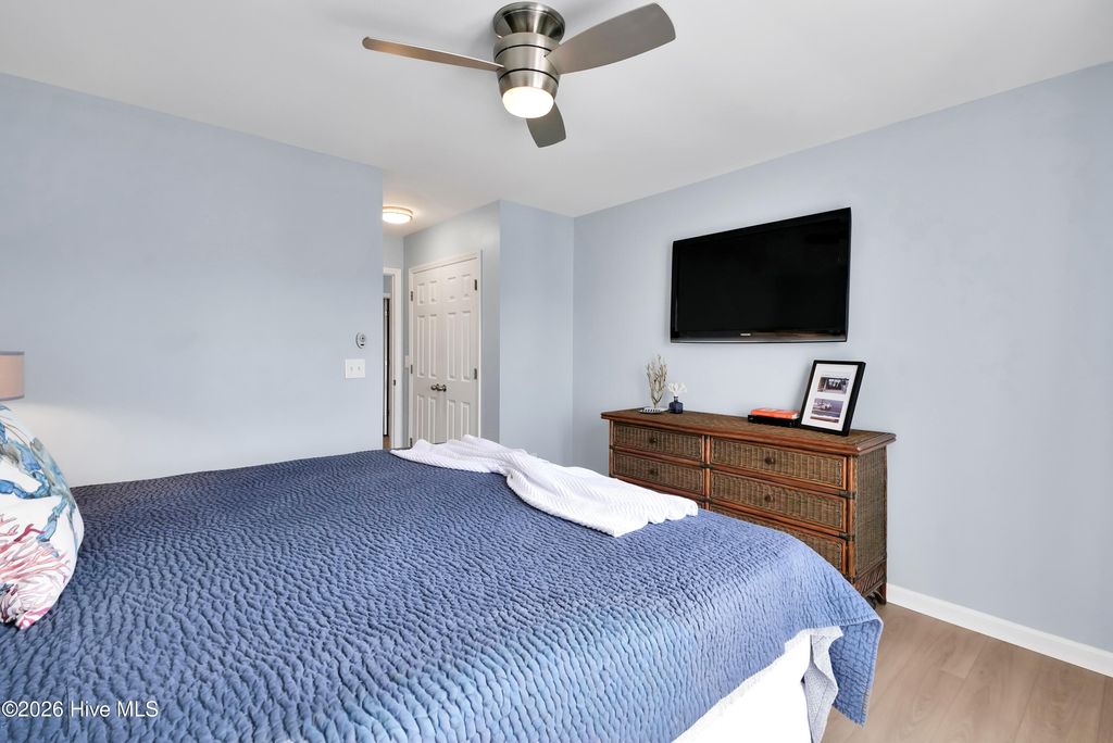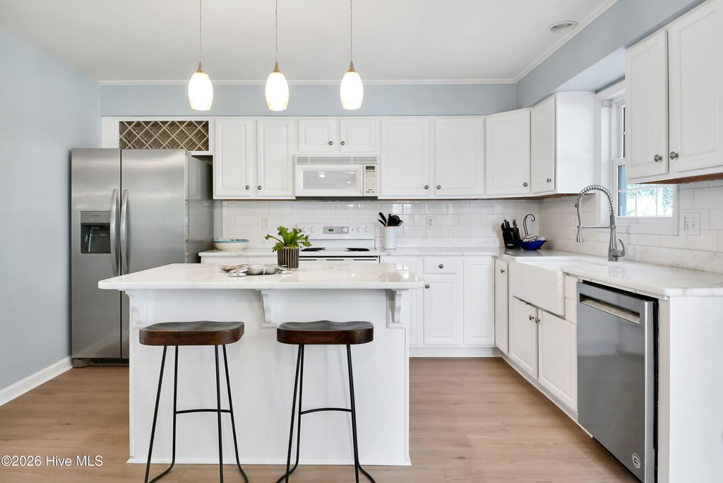 This is the one you've been waiting for! This classic beach cottage has a distinct coastal vibe and casual comfort you are sure to fall in love with. Only a short walk to the beach and in one of Surf City's few premiere water access communities, it's an even sweeter find! Shae's Landing affords you the luxury of preserving the value of your home and having pride in ownership while maintaining the integrity of a true seaside community. Only long-term rentals are allowed in this established interior neighborhood located on the desirable south side of Topsail Island. Home is a stand-out with good bones and recent transitional improvements: 2023 HVAC, new LVP flooring & hardwood stair treads, smooth ceilings, recessed lighting, new bathroom tile, spacious new deck & exterior stairs, fresh interior paint, modern ceiling fans; kitchen updates include farm sink, white Carrara marble countertops, subway tile, large island, brand new stainless refrigerator & stainless dishwasher. Other outstanding features include a large master suite w/ private porch, formal dining + breakfast room, ample closets, pantry & storage - so many closets, a cozy fireplace, relaxing hot tub, outdoor shower, fenced-in garden, patio, irrigation, & more! Fourth bedroom is a bonus with private ground floor entry -ideal for guests, in-laws or kids; even use it for an office or studio. Never rented & well-maintained with recent tastefully stylish renovations, you'll not want to miss this one! Furnished & turn-key w/ acceptable offer, make it YOUR beach retreat or permanent home before someone else does. Have it ALL - a stunning home, private beach path to the sparkling Atlantic nearby & access to the ICW to fully enjoy life and all that Topsail Island has to offer!