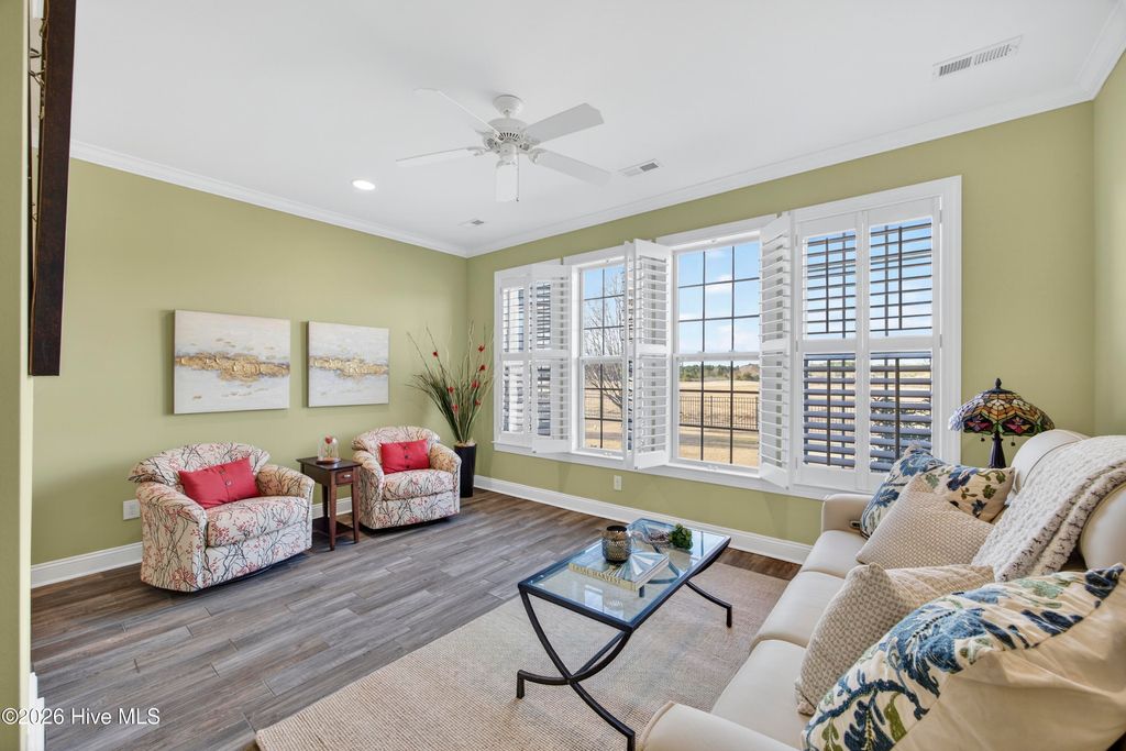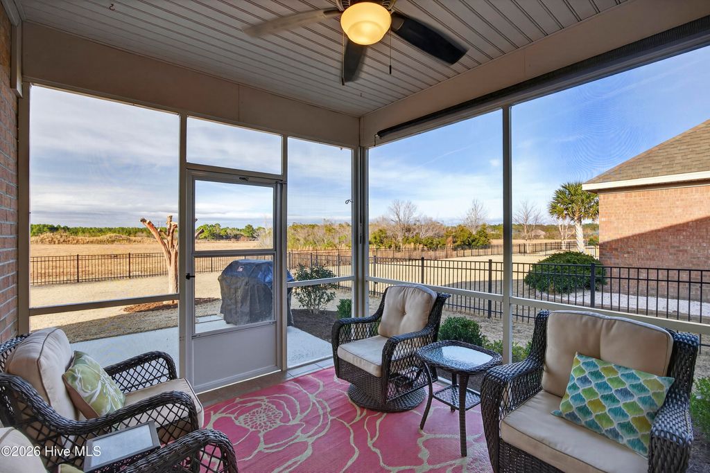 Nestled in the prestigious Castle Bay golf community of Hampstead, this impeccably maintained 4-bedroom, 3-bath brick home offers timeless curb appeal and a thoughtfully designed floor plan. Step inside the welcoming foyer, which opens seamlessly into an expansive open-concept living area. The formal dining room flows into a stunning vaulted family room anchored by a cozy fireplace"”an ideal space for gathering and relaxation. The spacious kitchen is both functional and inviting, featuring ample cabinetry and an easy connection to a casual dining area, perfect for everyday meals and entertaining. A separate laundry room and generous pantry add convenience and storage. Off the main living area, a charming screened porch and a sunroom overlook serene, community-owned land with the fourth hole fairway providing a picturesque backdrop. This peaceful setting offers tranquil views and year-round enjoyment, while the fenced backyard provides privacy and space for pets, play, or outdoor entertaining. The main-level primary suite is generously sized and includes dual vanities, a private water closet, soaking tub, and separate shower. Two additional first-floor bedrooms offer flexibility for guests, a home office, or hobbies. Upstairs, a finished bonus room with a full bath adds versatility as a guest suite, media room, playroom, or private retreat. Recent updates include a brand-new HVAC system (April 2025), roof replacement (late 2018), and a whole-house water softener (2017). Gutters surround the home, and the upgraded kitchen refrigerator conveys. Optional Castle Bay memberships are available, offering golf-only privileges or full amenities such as a swimming pool, fitness room, and tennis and pickleball courts. With convenient access to the future Hampstead bypass, this home is ideally located near Wilmington and Topsail Beach, a premier seaside destination. Make this home yours and start enjoying the best of coastal living today!