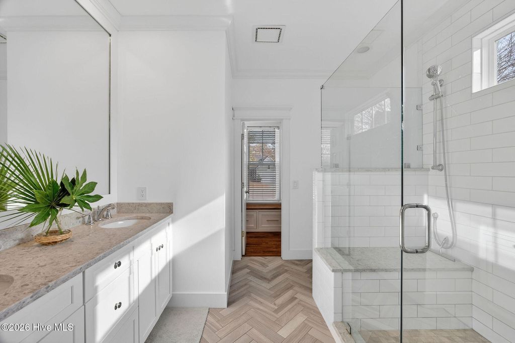 Wrightsville Beach School District!! Discover your dream home in the Wrightsville Beach ''bubble'' with this beautifully updated single-family residence located in the vibrant community of Lucia Point near Mayfaire. Featuring 3 bedrooms, 2 and one half baths, and a spacious 2-car garage, this meticulously maintained property offers a perfect blend of modern design and comfortable living. The ideal location places you within easy reach of shopping, dining, and the stunning shores of Wrightsville Beach and this home is in the Wrightsville Beach School District! The inviting open floor plan seamlessly connects the living, dining and kitchen spaces. The gourmet kitchen is a chef's delight, showcasing custom cabinetry, sleek countertops, and quality appliances. The main suite serves as a tranquil retreat, complete with a walk-in closet featuring custom shelving, ideal for organization. The luxurious bathroom is designed for relaxation, boasting dual sinks, a walk-in shower, and elegant herringbone tile floors. Two additional bedrooms and a full bathroom are conveniently located on the main level, accommodating both guests and family with ease. Upstairs, a spacious bonus room awaits and could be a 4th bedroom, media room or office. Outdoor enthusiasts will appreciate the stunning backyard, highlighted by a refreshing pool and ample yard space for gardening or recreational activities. The covered porch invites you to unwind and enjoy the serene surroundings, making it the perfect spot for morning coffee or evening relaxation. This charming home not only stands out in its features but also in its desirable location within Wilmington. Experience a lifestyle that embraces coastal living with exceptional comfort and style. Don't miss the chance to make this house your home!