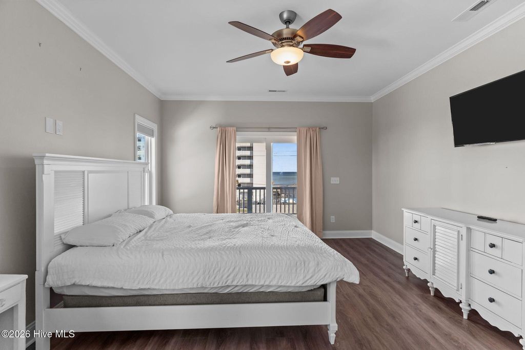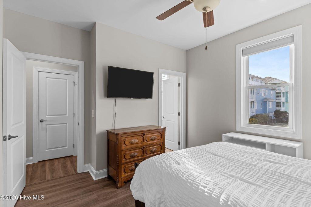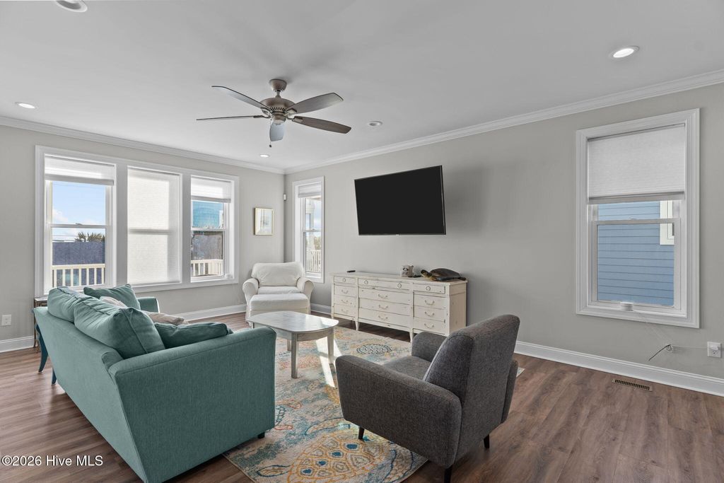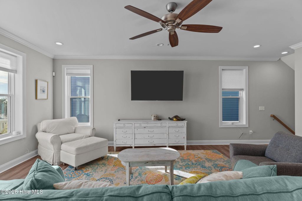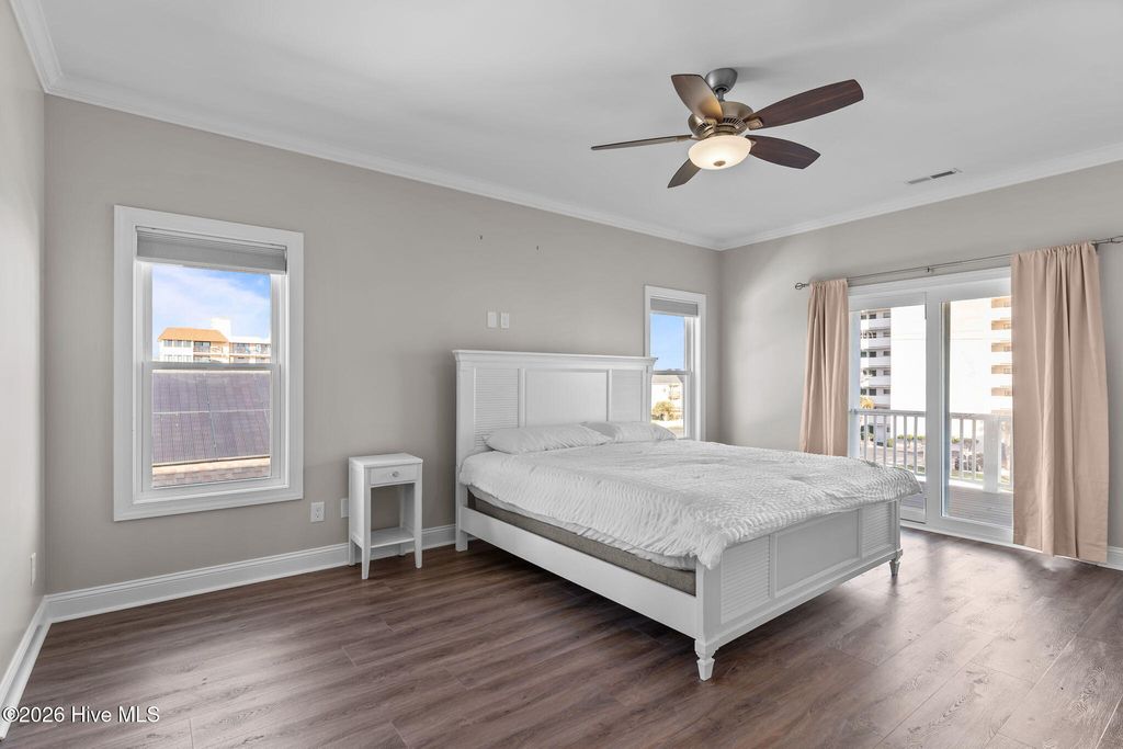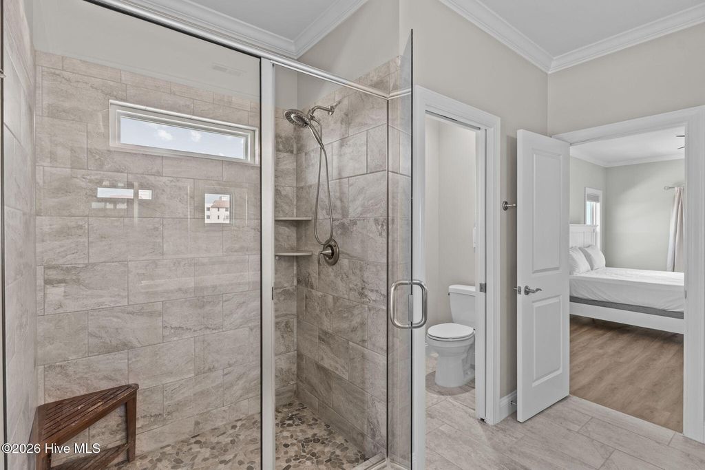 This Richard Wallace Builder home is steps away from the soft sands of Carolina Beach and feels like brand-new construction. With 4 bedrooms, each featuring its own private en suite, every family member or guest enjoys comfort and privacy. The main living areas are bright and airy, featuring 9-foot ceilings, crown molding, and an open-concept design. The chef's kitchen is a showstopper with luxurious stainless steel appliances, a large curved island with seating, and plenty of storage, perfect for entertaining friends and family. Step outside to two expansive decks with ocean views, including a screened porch off the kitchen for shaded outdoor meals. The fully fenced backyard offers privacy and security, with a new outdoor shower, outdoor kitchen complete with TV, and space for a future pool or garden oasis. This home is loaded with modern upgrades: a new GenX generator, mini-split HVAC systems, garage closets for added storage, and a Holmes security system for peace of mind. The master suite is a private retreat with a spacious deck overlooking the ocean, walk-in closet, dual vanities, and a walk-in shower. Built to Gold Fortified hurricane protection standards, this home combines luxury, safety, and coastal style for an unmatched beach lifestyle. Whether you're enjoying sunset views from the deck, cooking in the outdoor kitchen, or relaxing in your private master suite, this home is ready to deliver the ultimate Carolina Beach experience.