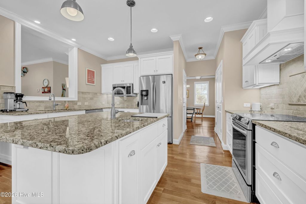 If you're looking for extra privacy, space and a tranquil neighborhood, this rare home is for you. The home is located on an exceptionally large lot for the Wilmington area and backs up to woods and a salt marsh. With only 1 entrance and exit in the neighborhood, there is no through traffic, which enhances the quiet you will experience. Spacious 9-foot ceilings and genuine Hickory hardwood floors flow throughout both levels of the home. The eat-in kitchen is built for cooking with a large granite island and generous cabinets. Enjoy entertaining in the formal dining room under the elegant, coffered ceiling. This home has 4 bedrooms, with 1 on the main level and 3 upstairs. Relax outdoors under the full length wraparound front porch with a board and batten ceiling. This home even has a side loading 3-car garage for all your stuff and a potential workshop or studio. Excellent schools are in this area, with Odgen Elementary just down the street. Mayfaire Shopping Center is conveniently close, and Wrightsville Beach is only minutes away! NO HOA!! COUNTY TAXES ONLY!!