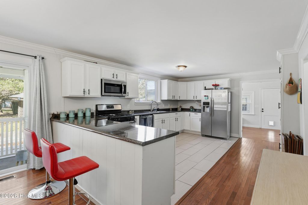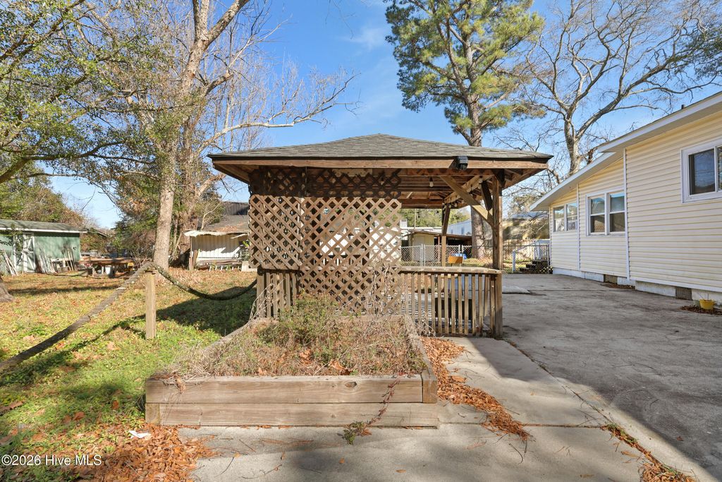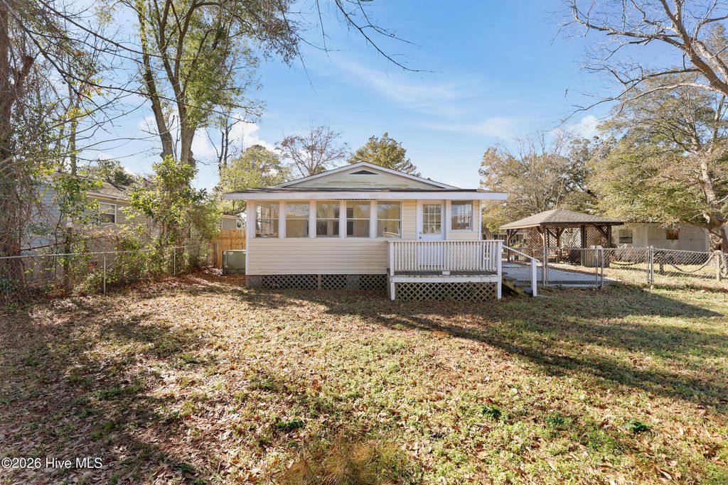 Welcome home to this adorable 3-bedroom, 1-bathroom bungalow perfectly situated at the edge of Wilmington's Cargo District, backing up to Carolina Place. Enjoy the convenience of a quick stroll to local favorites like The Rift or Mess Hall for a burger and milkshake"”it's all just around the corner in one of the city's most exciting and walkable neighborhoods. This home beautifully blends historic charm with modern updates. The welcoming open-concept living area features abundant natural light thanks to newer windows throughout (excluding the back porch), making the space feel bright and airy"”ideal for entertaining or relaxing with family and friends. The kitchen is fully equipped with stainless steel appliances, including a gas range, built-in microwave, dishwasher, and a large refrigerator. It also features a reverse osmosis water system"”a rare bonus! The bathroom has been tastefully updated with newer cabinets and hardware. Each of the three bedrooms is comfortably sized, while the sunroom (not included in the heated square footage) offers a peaceful retreat for morning coffee, reading, or yoga. Step outside to a fully fenced backyard with plenty of space for pets or kids to play, plus two raised garden beds, a tiki bar gazebo, and two sheds for added storage. Whether you're grilling, gardening, or hosting friends, this backyard is made for outdoor living. Additional highlights include: Newer exterior vinyl siding Extra-large driveway for ample parking HVAC (2006) in great working condition Seller-provided home warranty with HVAC coverage for the first year This home offers excellent potential to personalize further while enjoying the many updates already in place. With bars, boutiques, and live entertainment just steps away, this is your chance to be part of a vibrant, tight-knit community. Don't miss this opportunity"”homes in this location rarely last long!