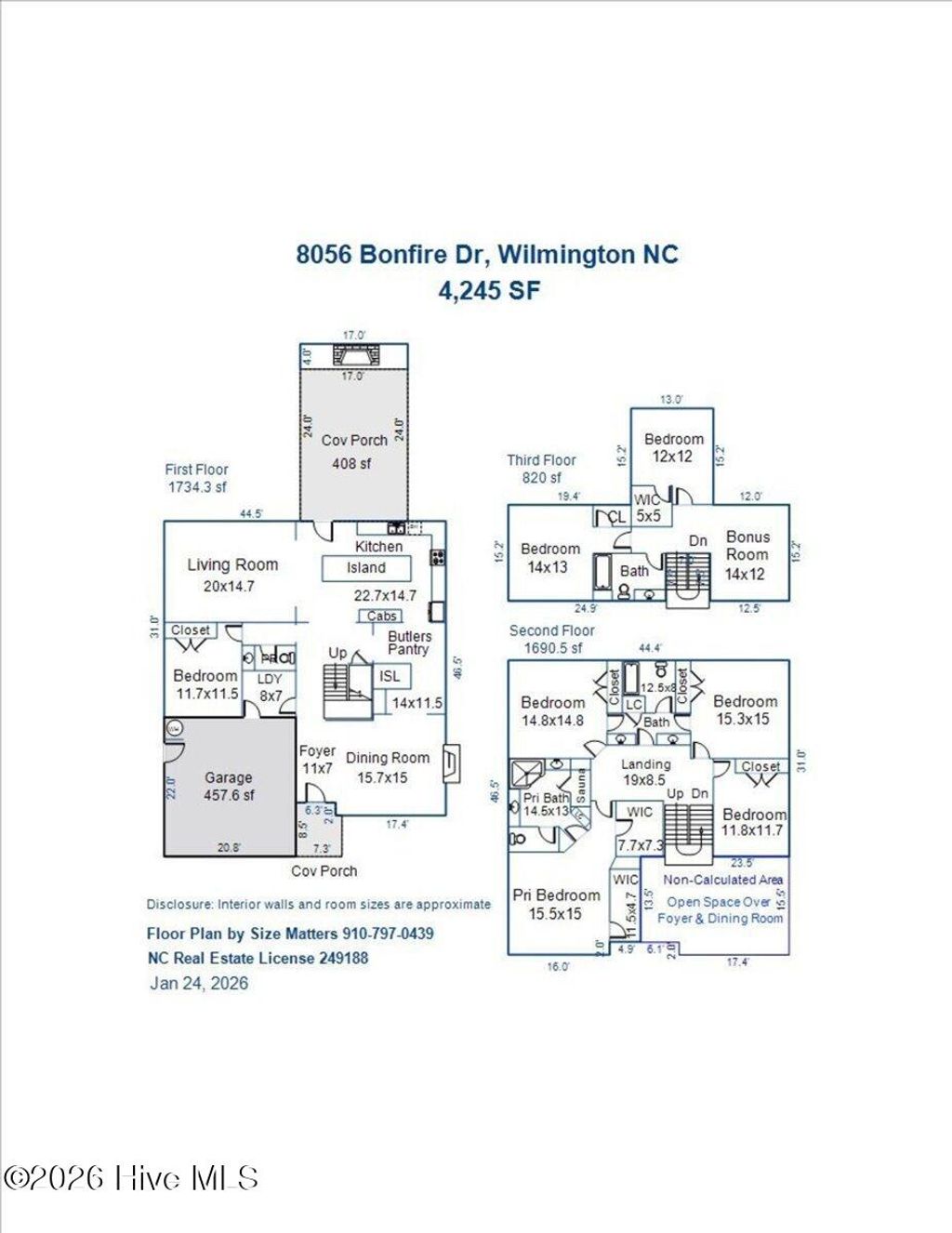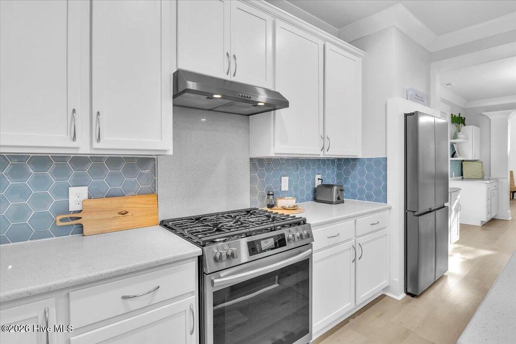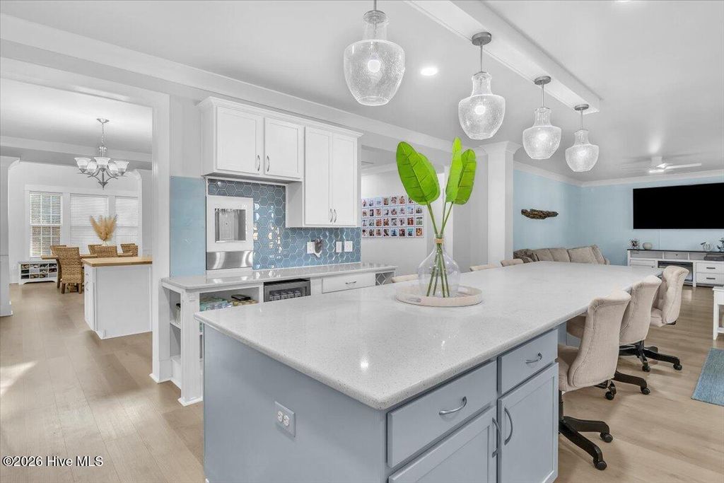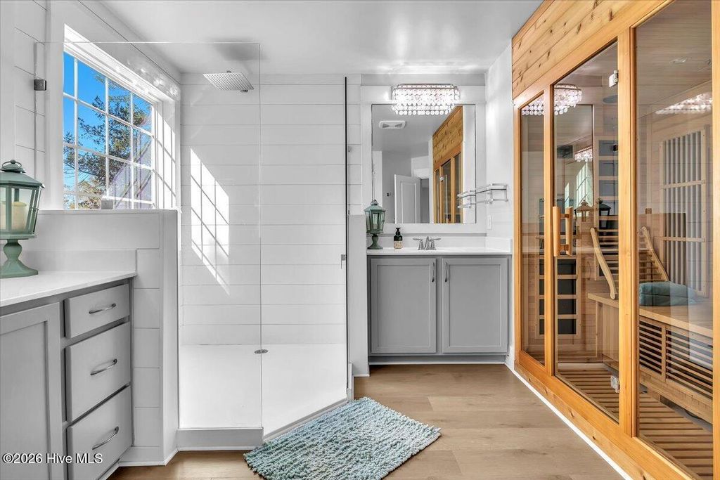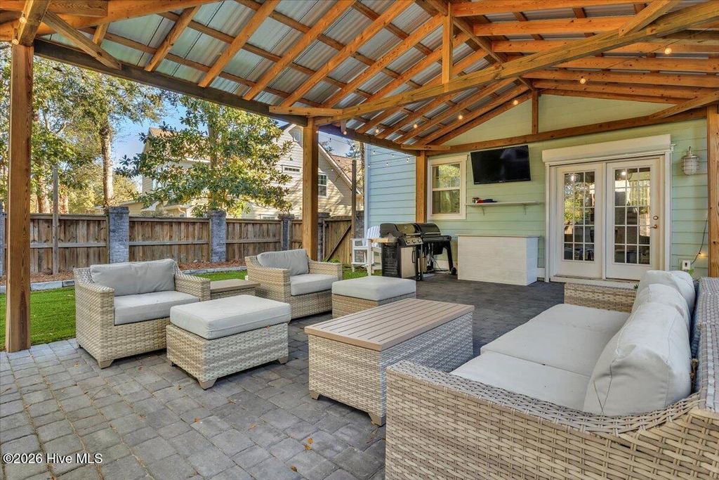 Experience coastal living at its finest in one of Wilmington's most coveted communities on the Intracoastal-TidalWalk! Nestled within this prestigious, gated community, 8056 Bonfire blends luxury with the feeling of home. TidalWalk offers exclusive access to a private community beach and is defined by resort-style amenities. Residents enjoy a private beach, pier, gazebo, day dock, resort-style clubhouse with a salt-water pool and fully equipped fitness center. This thoughtfully-designed property is one of the largest homes in the community. Over 4000 square feet designed across three levels provide effortless flow with seven bedrooms and four baths offering much versatility. Upon entrance you immediately feel what makes this home special with its refined, elegant finishes. Gourmet kitchen boasts an expansive, quartz island, gas range paired with hood, new stainless appliances, built-in beverage fridge, ice machine and a sleek built-in water dispenser. Kitchen opens to an inviting light-filled living room offering great flow for entertaining. A beautifully-designed butler's pantry is thoughtfully appointed with ample cabinetry and workspace; easily adapts for cooking or creative projects-bringing both function and convenience to the heart of the home. The home opens seamlessly into a dining room with its striking wood accent wall and gas fireplace. Dining room could serve as an additional living area if you prefer. One secondary bedroom downstairs makes a great office. White oak LVP flooring main living areas. Head on up to the second level to find four bedrooms and two full bathrooms. Primary bedroom suite has two walk-in closets. The spa-inspired primary bathroom was designed so you can indulge in everyday luxury with dual vanities and an in-home sauna! The third level offers a flex area, perfect for a game/entertainment room. You will also find two additional bedrooms and another full bathroom. Ample attic storage on this level as well. Inviting outdoor-living designed for year-round enjoyment. The paver patio, resort-style gazebo and brick fireplace creates the perfect outdoor oasis! Lush, low-maintenance turf adds a refined finish. Backyard is complete with fence accented by classic brick columns. This space sets the scene for cook-outs and cornhole. New interior paint throughout. Home exterior painted in 2025. Hurricane shutters provide peace of mind. 8056 Bonfire sits on a quiet cul-de-sac. TidalWalk is a neighborhood like no other! Come see for yourself what makes living here special. TidalWalk is a golf-cart friendly community. Walk, bike or golf-cart through the neighborhood to witness the beauty of marsh and water views. If you are looking for neighborly connection you will enjoy the golf cart parades, live music at the clubhouse common areas, pool parties, food trucks, bookclubs, and so much more. Carolina Beach is a 10 minute drive. Inlet Watch Marina is just a few miles south of the community. Masonboro Island-a protected reserved barrier island, is a short paddleboard or kayak ride from the community beach across the Intracoastal. I am certain once you explore what TidalWalk has to offer, YOU WILL KNOW YOU ARE HOME. Be sure to view the Virtual Tour to get a true sense of what living looks like at 8056 Bonfire.
