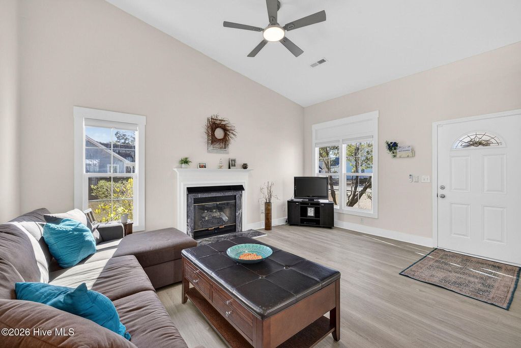Discover this beautifully updated 3-bedroom, 2-bathroom single-family home, nestled in a welcoming neighborhood of Wilmington, NC. This home offers an open floor plan designed for both relaxation and entertaining. The allure of coastal living is complemented by its prime location just off Gordon Road, placing you mere minutes away from shopping, dining, and the stunning shores of Wrightsville Beach. The heart of the residence is the contemporary kitchen, featuring updated cabinets, sleek countertops, and a chic backsplash, all paired with newer appliances that elevate your culinary experience. The expansive living room boasts vaulted ceilings and a cozy fireplace, creating a perfect setting for gatherings or quiet evenings at home. The main suite is thoughtfully designed with a spacious walk-in closet and a luxurious bathroom featuring updated vanities and a stylish walk-in shower. Guest bath (all updated with walk in shower) and 2 more bedrooms make this spacious home all one level living. The exterior of the property is equally inviting, offering a covered front porch that provides a charming entryway. The courtyard off the kitchen is perfect for barbecues or soaking up the sun. The fenced backyard is an oasis for outdoor enjoyment, featuring a private patio and newer storage shed that adds convenience and functionality, making it an excellent space for your outdoor gear or gardening tools. All the work has been done for you - just move in!