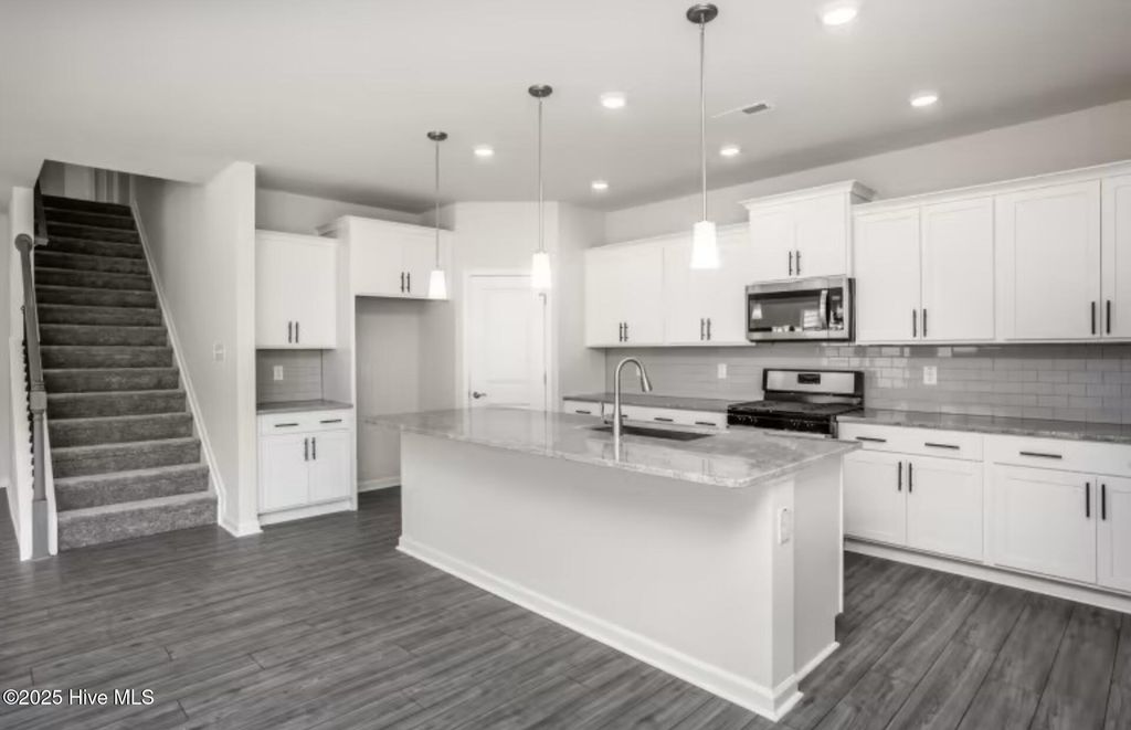 Welcome to the Raymond, a thoughtfully crafted home offering 2,229 square feet of well-designed living space that adapts beautifully to a wide range of lifestyles. This residence features three bedrooms, two and a half bathrooms, a private office, and a generous loft, creating a layout that balances everyday comfort with flexibility. At the center of the home is an inviting, upgraded kitchen designed to impress. A large island serves as a striking focal point, enhanced by upgraded pendant lighting. Quartz countertops brighten the space and pair seamlessly with rich brown cabinetry and a stylish tile backsplash. Stainless Steel appliances, a spacious single-basin sink, and upgraded hardware elevate both functionality and visual appeal, making this kitchen ideal for cooking, gathering, and entertaining. The main-level owner's suite offers a peaceful retreat, complete with an ensuite bathroom featuring dual quartz vanities, a walk-in shower with an elegant tile surround and frameless glass door, and a large walk-in closet. Just outside the suite, the conveniently located laundry room adds ease to daily routines. The first floor also includes an open-concept gathering room that flows effortlessly to a screened-in porch, providing the perfect space to relax or host guests. Upstairs, a spacious loft offers endless possibilities, complemented by an additional flex room that can be customized to suit your needs. Two secondary bedrooms and a full bathroom complete the second level, offering privacy and comfort for family members or visitors. Throughout the home, hard surface flooring enhances the main living areas, while plush carpeting adds warmth to the bedrooms. Additional highlights include solid oak stair treads, window blinds, LED lighting, an upgraded interior trim package, a programmable thermostat, a Ring doorbell camera, and a two-car garage. You'll fall in love with the Raymond floorplan the moment you step inside"”come see it for yourself today!