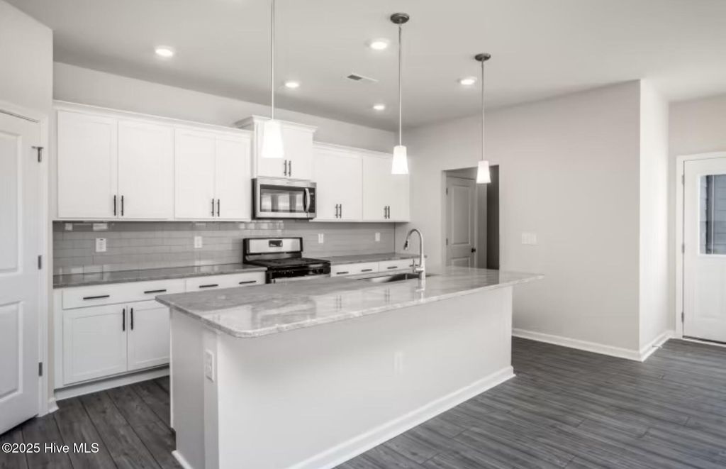 Fall in love with the Raymond floorplan, a beautifully crafted home offering 2,229 square feet of flexible living space designed to suit a variety of lifestyles! With three bedrooms, two and a half bathrooms, a private office, and a spacious loft, this home delivers a perfect blend of comfort, function, and flexibility. The heart of the home is the impressive upgraded kitchen, where a large island creates a welcoming gathering space accented by upgraded pendant lighting. Quartz countertops reflect natural light and complement crisp white cabinetry and a stylish tile backsplash. Premium KitchenAid gas appliances, a generous single-basin sink, and upgraded hardware add both convenience and refined style, making this kitchen ideal for everyday living and entertaining alike. The owner's suite, located on the main level, serves as a tranquil retreat. The ensuite bathroom features dual quartz vanities, a walk-in shower with an elegant tile surround and frameless glass door, and a spacious walk-in closet. Just steps away, the main-level laundry room adds everyday convenience. Also on the first floor, the open-concept gathering room flows seamlessly into a screened-in porch, creating an inviting space for relaxation or hosting guests. Upstairs, a large loft provides versatile living space, accompanied by an additional flex room that can easily be tailored to your needs. Two secondary bedrooms and a full bathroom complete the second level, offering comfort and privacy for family members or visitors. Hard surface flooring enhances the main living areas throughout the home, while plush carpeting in the bedrooms adds warmth and comfort. Additional features include solid oak stair treads, window blinds, LED lighting, an upgraded interior trim package, a programmable thermostat, a Ring doorbell camera, and a two-car garage. The Raymond floorplan makes a lasting impression from the moment you enter. Come experience it for yourself today!