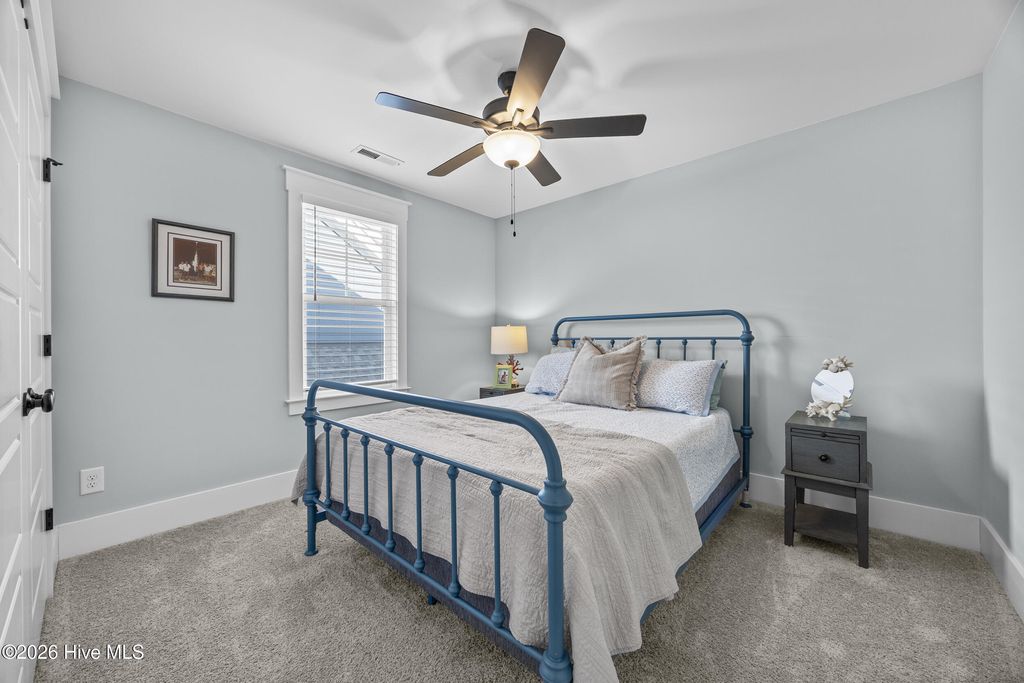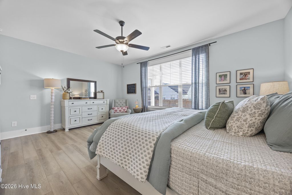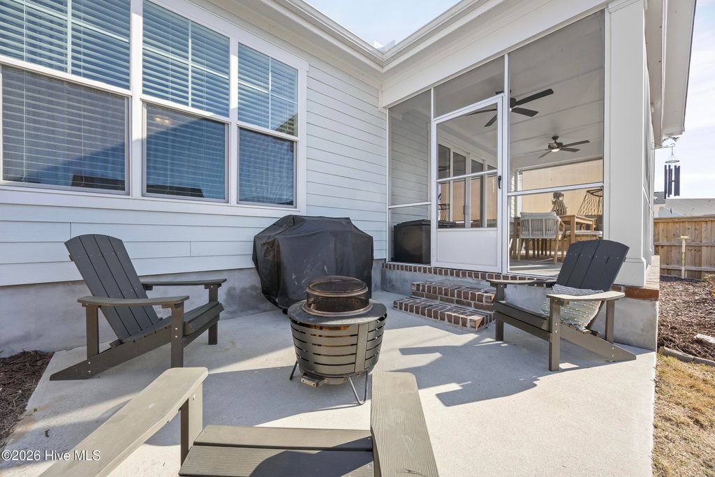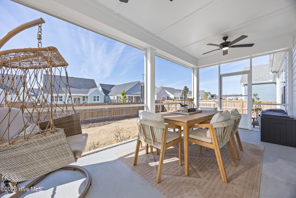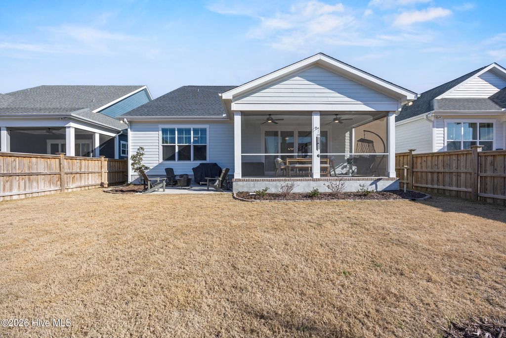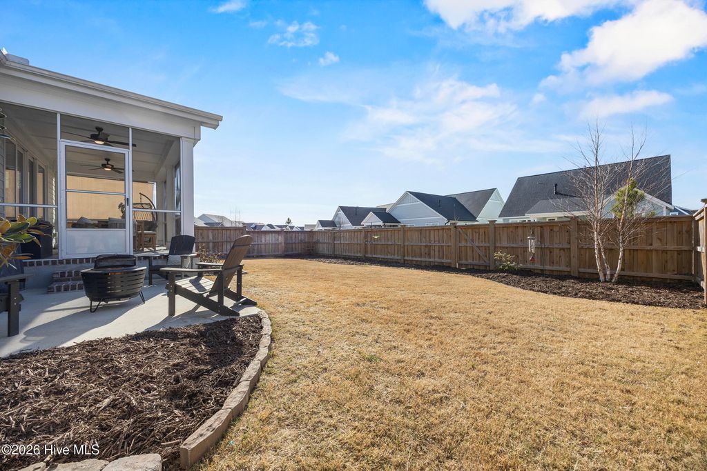 This beautifully upgraded home offers 3 bedrooms and 3.5 bathrooms with a highly desirable first-floor primary suite, private study, and screened porch. Designed with an open floor plan, the kitchen, dining, and great room flow seamlessly"”ideal for entertaining and everyday living. The luxury kitchen features upgraded cabinetry, quartz countertops, and a 30'' gas cooktop. The great room impresses with a fireplace, custom built-ins, exposed beams, and a center-meet sliding glass door opening to the screened-in porch for effortless indoor-outdoor living. The spacious first-floor primary suite includes a large walk-in closet and spa-style bath with dual vanities, oversized tiled shower, frameless glass enclosure, and private water closet. Upstairs features an oversized bonus/recreation room, guest bedroom, full bath, and large walk-in unfinished storage with future expansion potential. Recent upgrades include $9,000 in custom window shutters and a wooden privacy fence, enhancing privacy, curb appeal, and refined design. Smart-home ready with a tankless gas water heater, this home delivers modern luxury and thoughtful finishes. Located in the vibrant Riverlights community, residents enjoy scenic Cape Fear River frontage, miles of walking and biking trails, a 38-acre freshwater lake for kayaking and paddleboarding, parks, and outdoor gathering spaces. Marina Village offers restaurants, shops, and waterfront views, plus resort-style amenities like the Lakehouse with pool, fitness center, gathering spaces, and community events that foster a true sense of neighborhood. This home was built by Bill Clark Homes, known for quality craftsmanship, and is move-in ready in one of Wilmington's most sought-after coastal communities.