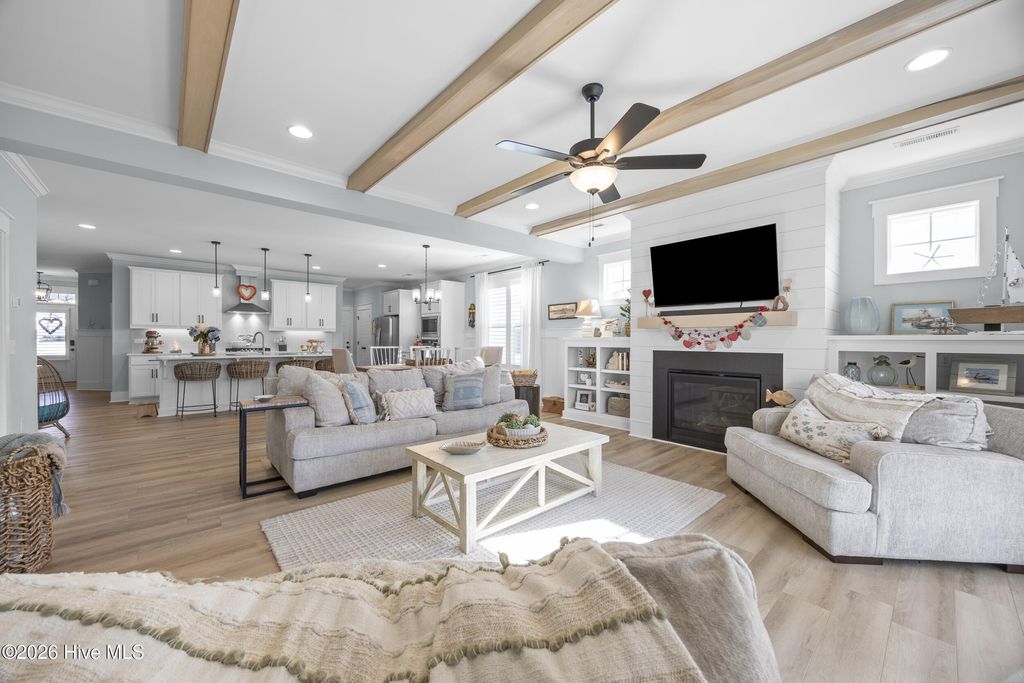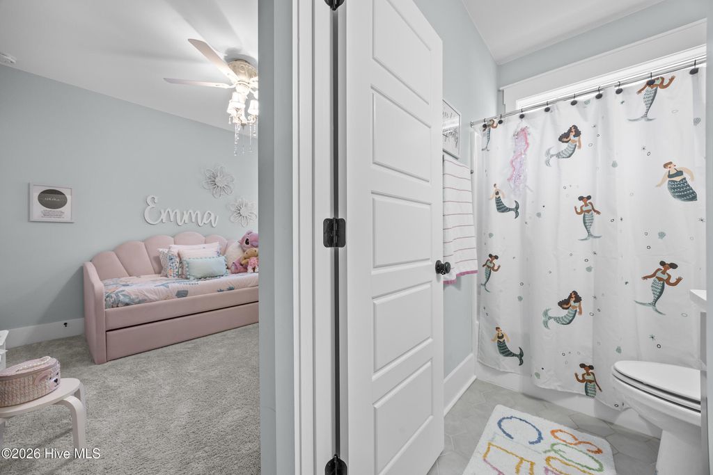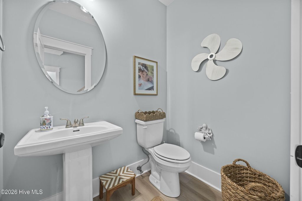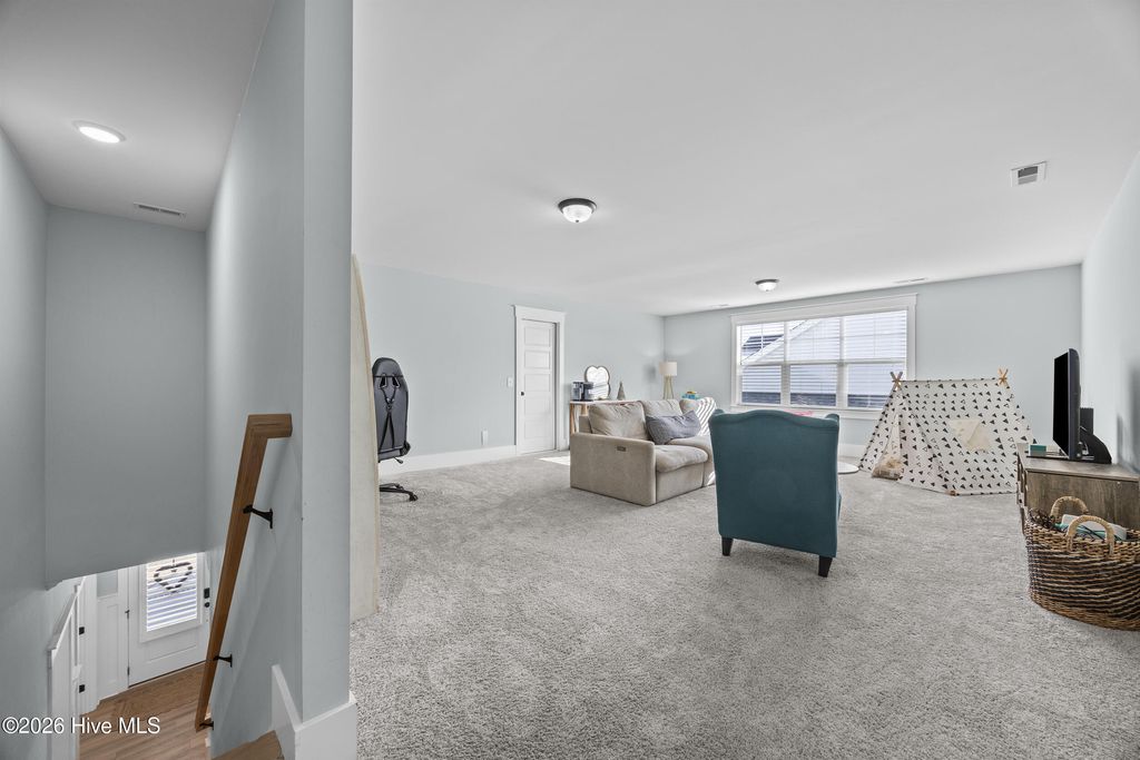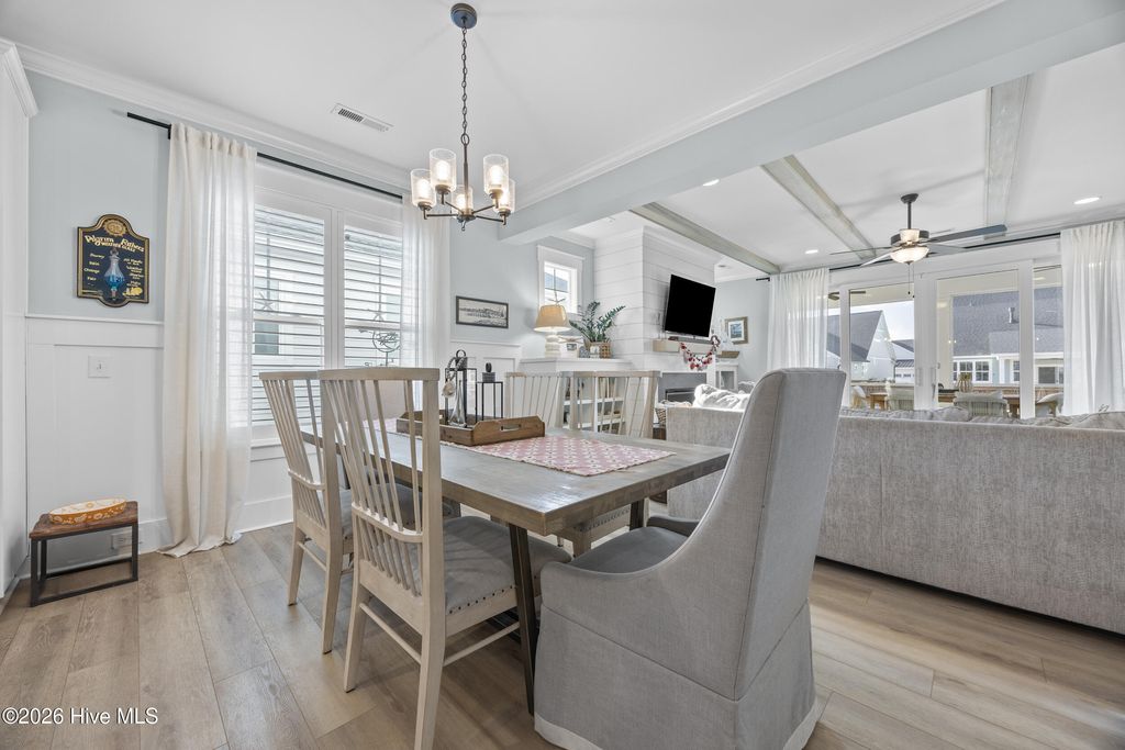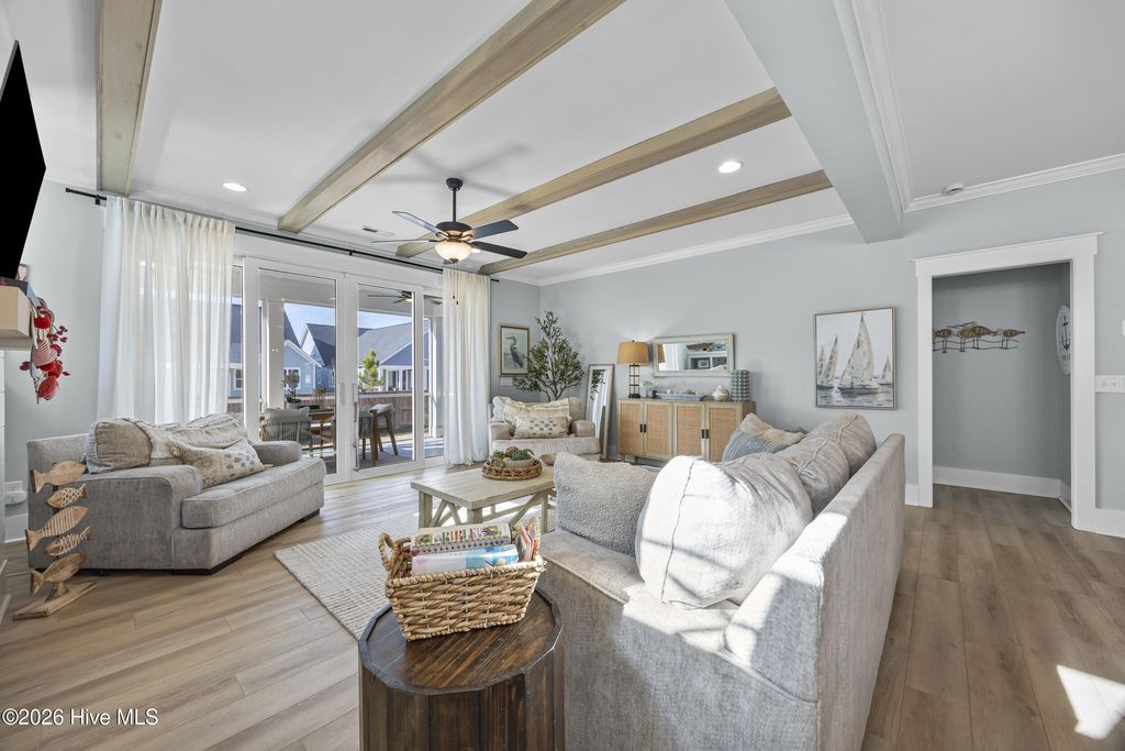 This beautifully upgraded home offers 3 bedrooms and 3.5 bathrooms with a highly desirable first-floor primary suite, private study, and screened porch. Designed with an open floor plan, the kitchen, dining, and great room flow seamlessly"”ideal for entertaining and everyday living. The luxury kitchen features upgraded cabinetry, quartz countertops, and a 30'' gas cooktop. The great room impresses with a fireplace, custom built-ins, exposed beams, and a center-meet sliding glass door opening to the screened-in porch for effortless indoor-outdoor living. The spacious first-floor primary suite includes a large walk-in closet and spa-style bath with dual vanities, oversized tiled shower, frameless glass enclosure, and private water closet. Upstairs features an oversized bonus/recreation room, guest bedroom, full bath, and large walk-in unfinished storage with future expansion potential. Recent upgrades include $9,000 in custom window shutters and a wooden privacy fence, enhancing privacy, curb appeal, and refined design. Smart-home ready with a tankless gas water heater, this home delivers modern luxury and thoughtful finishes. Located in the vibrant Riverlights community, residents enjoy scenic Cape Fear River frontage, miles of walking and biking trails, a 38-acre freshwater lake for kayaking and paddleboarding, parks, and outdoor gathering spaces. Marina Village offers restaurants, shops, and waterfront views, plus resort-style amenities like the Lakehouse with pool, fitness center, gathering spaces, and community events that foster a true sense of neighborhood. This home was built by Bill Clark Homes, known for quality craftsmanship, and is move-in ready in one of Wilmington's most sought-after coastal communities.