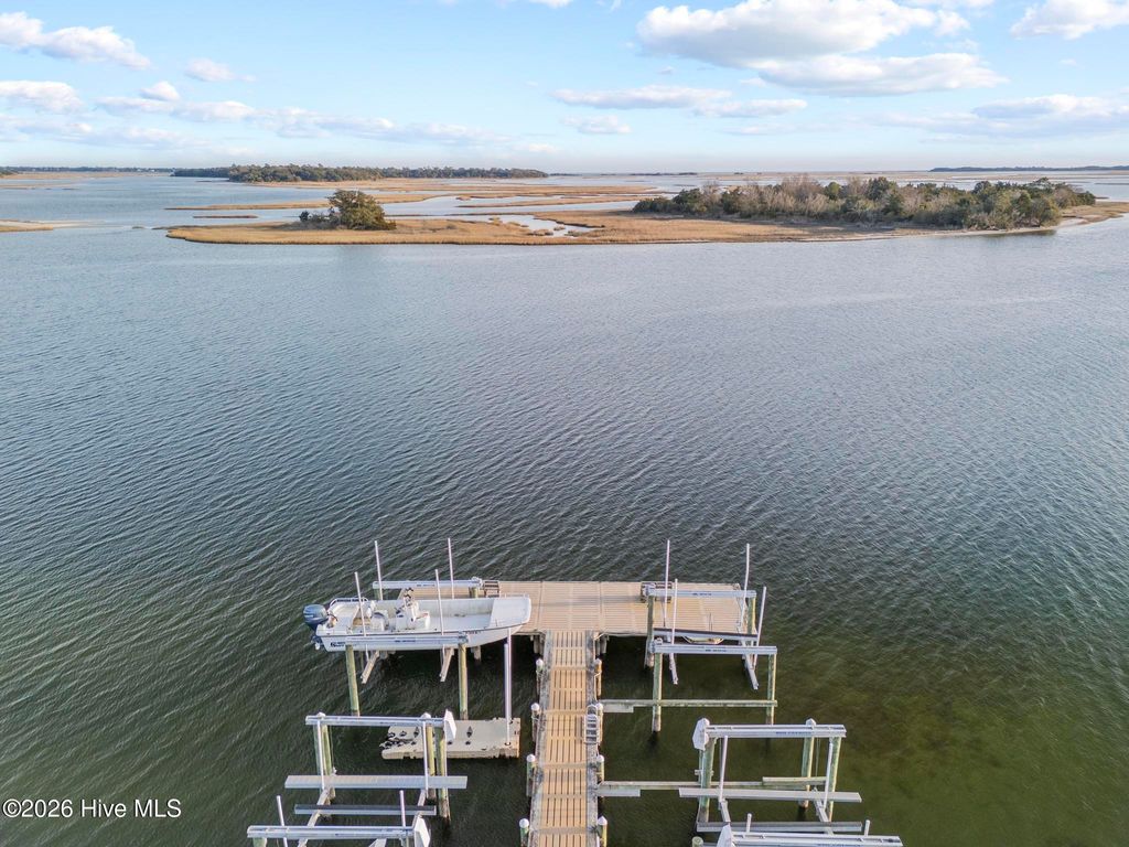 ICWW ACCESS and ENDLESS views with deeded slip ! The last lot available in this fantastic location of Deer Island Harbor . Views in 3 directions ! South is uninterrupted view down the waterway ! Then straight out between the two homes and northeast to Swansboro . Unbeatable ! This community is located 1 point South of downtown Swansboro and there is walking, biking , golf cart access ! Location, location for boating is fantastic . Lot conveys with deeded slip that has a 10k lift installed . Lot has public sewer , so a pool would be easy if desired . Great opportunity .