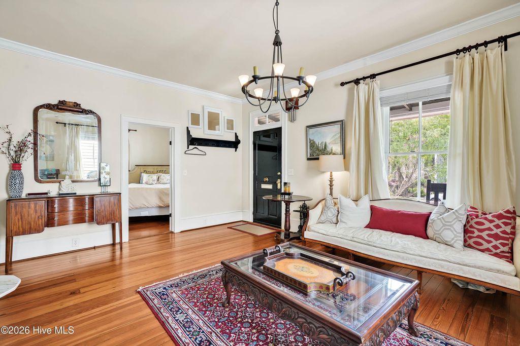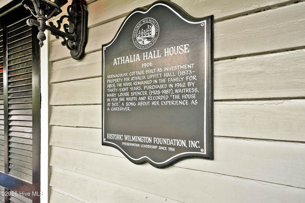 The Athalia Hall house, a featured home on the Azalea Festival Home Tour, seamlessly blends history with modernity. This c. 1906 one level living cottage, has many of the details from the turn of the 19th century such as stained glass windows, heart pine flooring, 4 non-working fireplaces, porches, 10 foot ceilings, 12 inch baseboards, and a location that is a block from the river and a short stroll to everything downtown. Beyond its' beautiful Front Street location, what sets this home apart is the thoughtful updates and renovations adding more than a splash of modern. The Kitchen which has been showcased on the Historic Foundation's ''Back Door Kitchen Tour'' is thoughtful and open with a unique vaulted ceiling, Mahogany cabinets, a large center island, Soapstone and Carrara marble. It is the heart of the home. There is also a fully updated bath with tile, glass, a walk-in shower and walk-in closet. This is a very special home that has been very well taken care of. The front porch offers a glimpse at the social fabric of downtown and the back porch offers privacy and an area often dedicated as the ''al fresco'' dining area. Lastly, of note to the house's history and character, in 1978 Mary Louise Spencer wrote and recorded the song, ''The House at 503'' about her time spent living at the Althalia House. * Subject to minor preservation easement with Historic Wilmington Foundation.