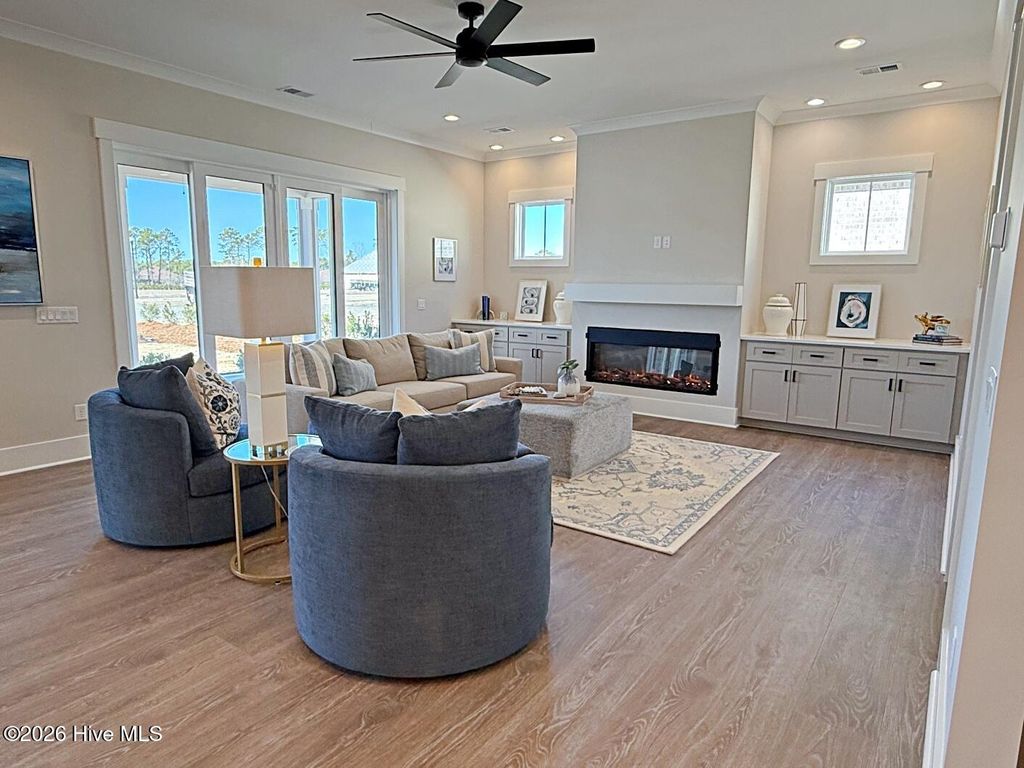 Move-in Ready New Construction! Single-story luxury living at its finest. Our new SeaSpray floor plan is sure to please. This low maintenance brick-sided home. 10' interior ceilings with 8' solid core interior doors enhance the spaciousness of this open floor plan. Kitchenaid appliances include a 36'' Natural Gas range and stainless range hood. Built-in microwave in a large 9' double-cabineted island. Quartz counters throughout the home. Walk-in pantry with tons of space. Expansive Great room and Dining rooms make entertaining a breeze. Large Master suite includes an enormous Walk-in Closet. The 38' long screened porch overlooks beautiful sunsets behind the home! No detail has been spared. 3-car garage with epoxy floor included! HOA-provided lawn care and access to 2 amenity areas. No city taxes! Currently used as Model home and open for tours Mon-Sat 10a-5pm.
