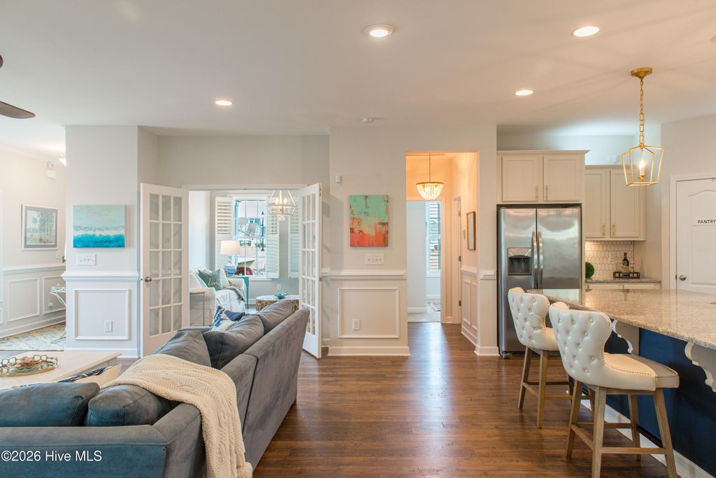 Welcome to effortless coastal elegance in this impeccably maintained one-level home, perfectly positioned on a tranquil lake in the heart of Riverlights. Bathed in natural light, the open-concept design is both inviting and functional "” ideal for everyday living and memorable entertaining. The stunning kitchen anchors the home, flowing seamlessly into the spacious living and dining spaces. The primary suite is a true sanctuary, featuring a spa-inspired bath with soaking tub, walk-in shower, and an exceptional walk-in closet. A second bedroom and private home office/future 3rd bedroom with french doors both enjoy peaceful lake views, while the four-season sunroom steals the show "” capturing breathtaking sunsets. A rare and highly coveted rear alley-loaded garage allows the front of the home to shine with charming curb appeal and uninterrupted water views "” a prized feature in this community. Step onto the covered front porch to enjoy your morning coffee as fountains shimmer across the lake, or stroll the scenic walking trails just beyond your door step. Just minutes from both Riverlights' resort-style amenity centers and popular Marina Village with day docks, waterfront dining, shopping, and entertainment along the Cape Fear River. You can also enjoy kayaking, canoeing and paddle boarding on the lake, two dog parks, and easy access to the area's largest Harris Teeter, historic Downtown Wilmington, Carolina Beach, and Wrightsville Beach. With the brand-new Riverlights Fire Department now open and 7 Bridge rapidly coming to life, this vibrant community truly feels like its own coastal town. Seeing is believing "” and opportunities like this are rare. If this is the lifestyle you've been waiting for, schedule your private tour today. Great vacation home or investment property!