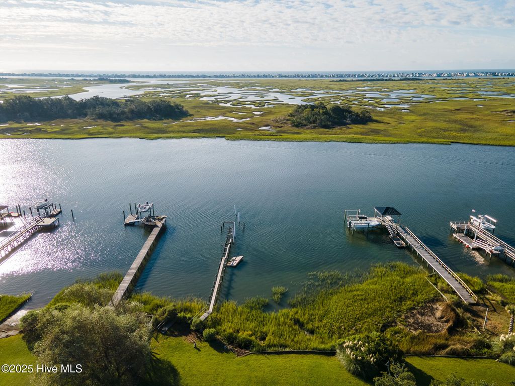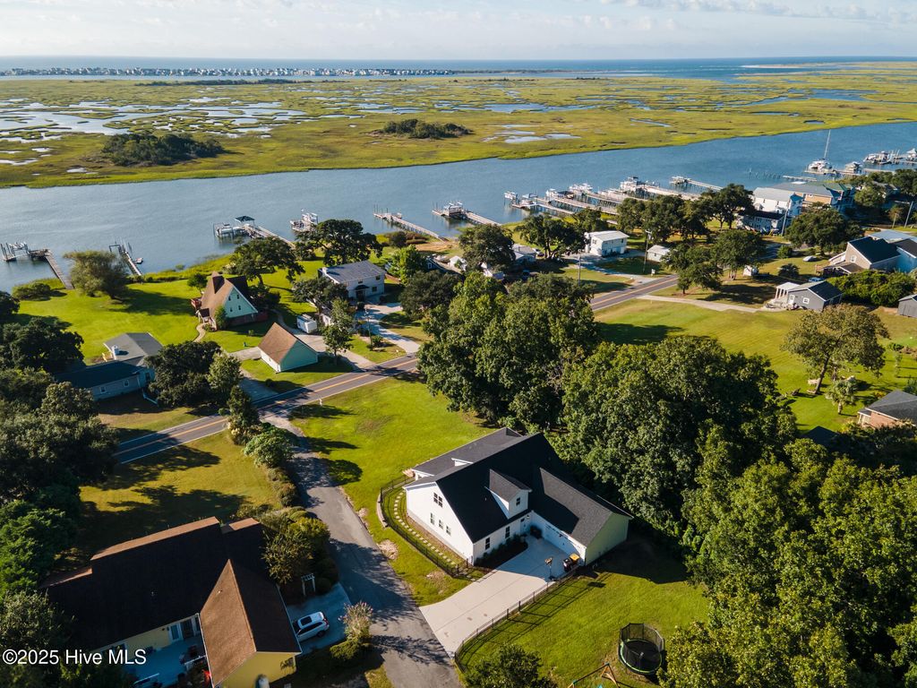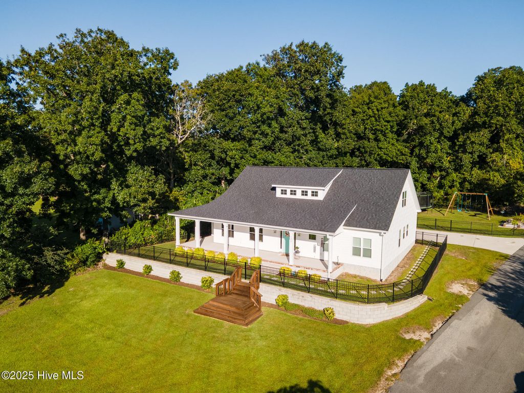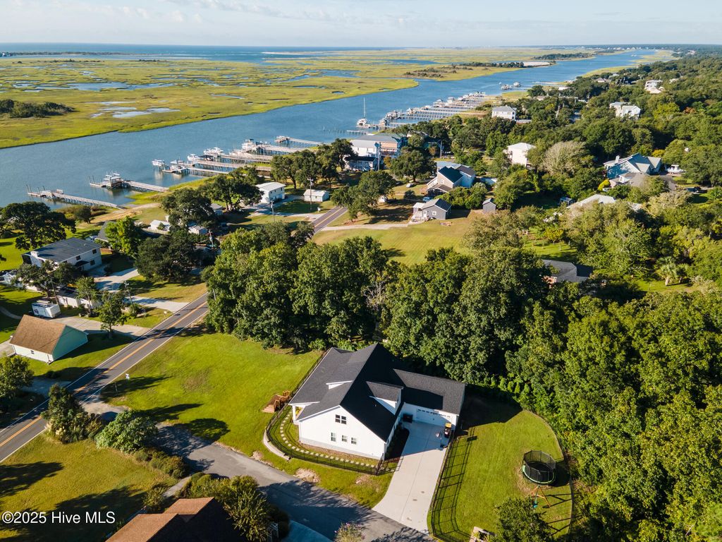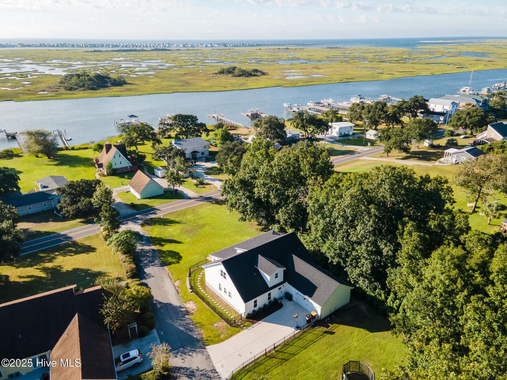 Welcome to 1406 Kings Landing Road, a custom-built 4 bed, 3 bath home, nestled on a beautifully elevated .46 acre lot where a coastal aesthetic merges seamlessly with a floorplan designed for functionality! Located just across the street from the Intracoastal Waterway, this home offers sunrise views of the scenic Waterway & South Topsail Island, and showcases a wraparound porch that's perfect for taking in the salt air while overlooking a sweeping front yard. Inside, stylish Craftsman details, along with a neutral color palette, accentuate a simple, but elegant layout while offering the perfect canvas for you to make your own! Upon stepping inside, you're greeted by a spacious living area where the windows suffice for art, framing the coastal views, along with LVP flooring that runs throughout the main living area & Kitchen. The kitchen boasts stainless appliances, a gorgeous tile backsplash, ample cabinetry, a Reverse Osmosis System (that will convey) & solid surface countertops that overlook the living room, dining area & foyer. Adjacent to the kitchen are a guestroom and full bath on one side and a large laundry room on the other. The Master Suite completes the downstairs and also offers a water view that starts your day before stepping into the luxurious en suite that showcases tile flooring, dual vanities, a soaking tub and a walk-in shower! Upstairs, two remaining bedrooms flank an open living area that's perfect for a media room, play space or an additional family room upstairs, along with another full bath for convenience! This home offers a large array of diversity in the form of options for a home office, adequate guest spaces and/or a growing family, all while accommodating a coastal lifestyle and ambiance. Outside ,a two car garage & fenced play area complete the home & encourage outdoor play, relaxation or entertaining family & friends! See Agent Remarks for more info