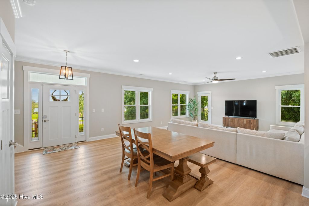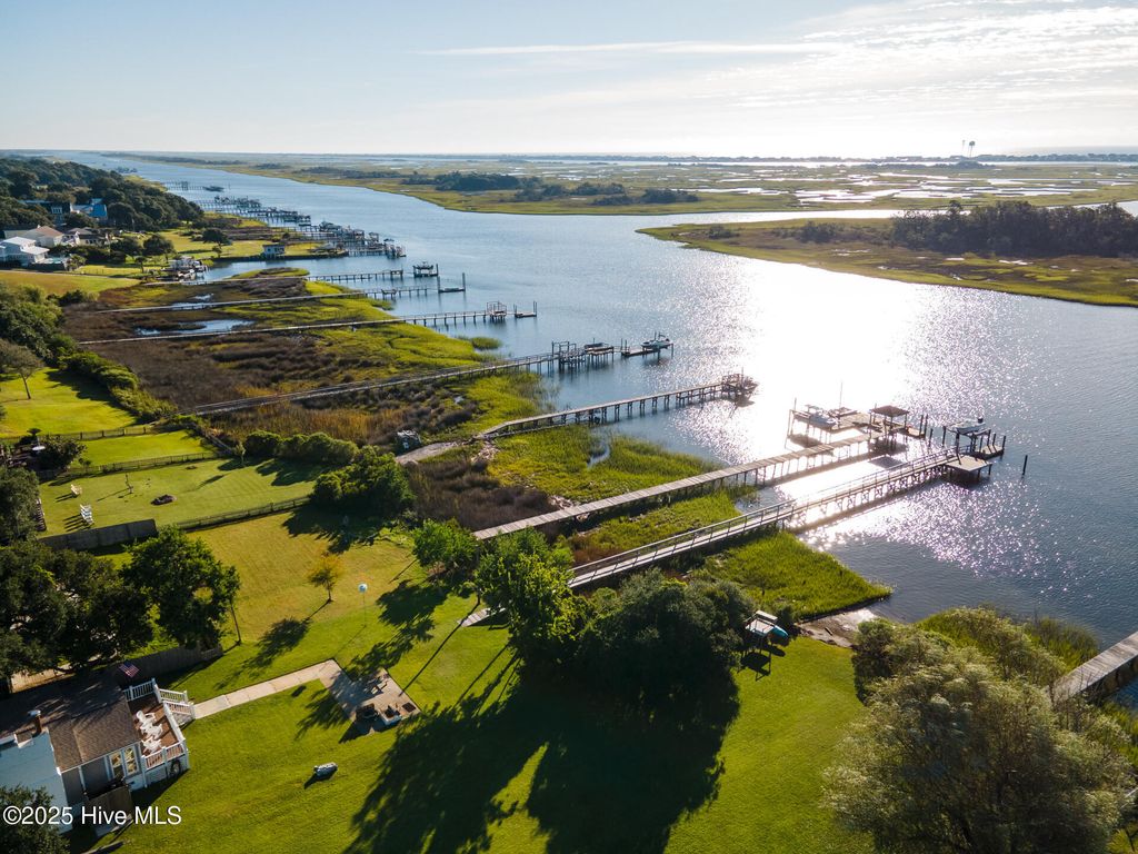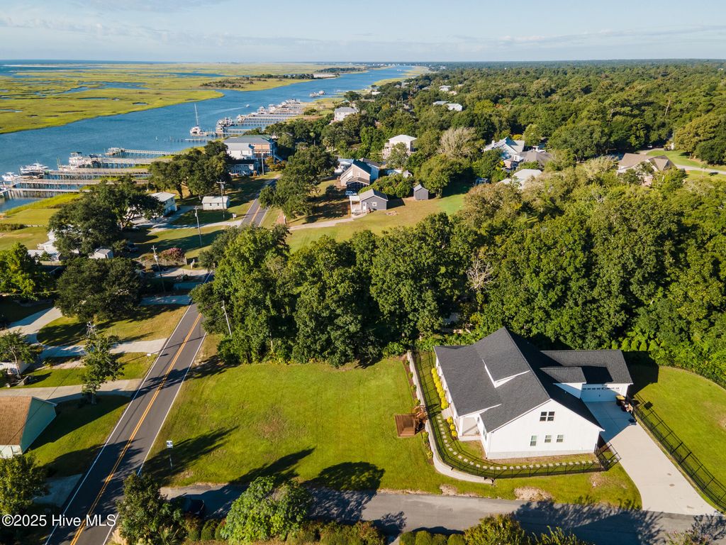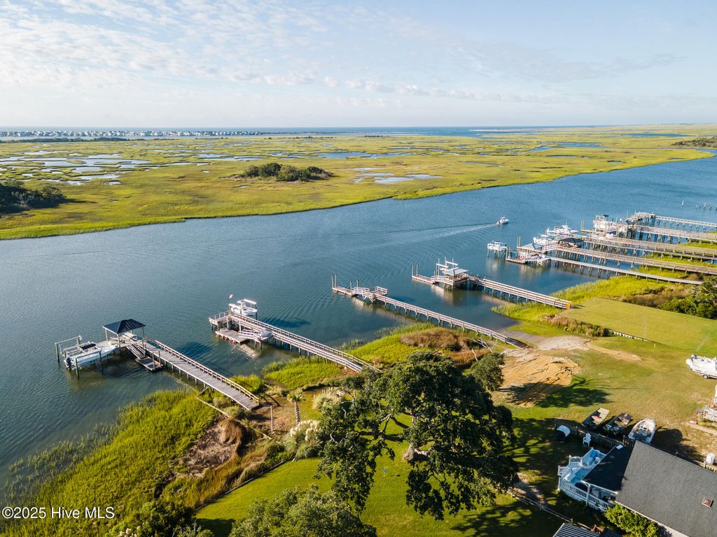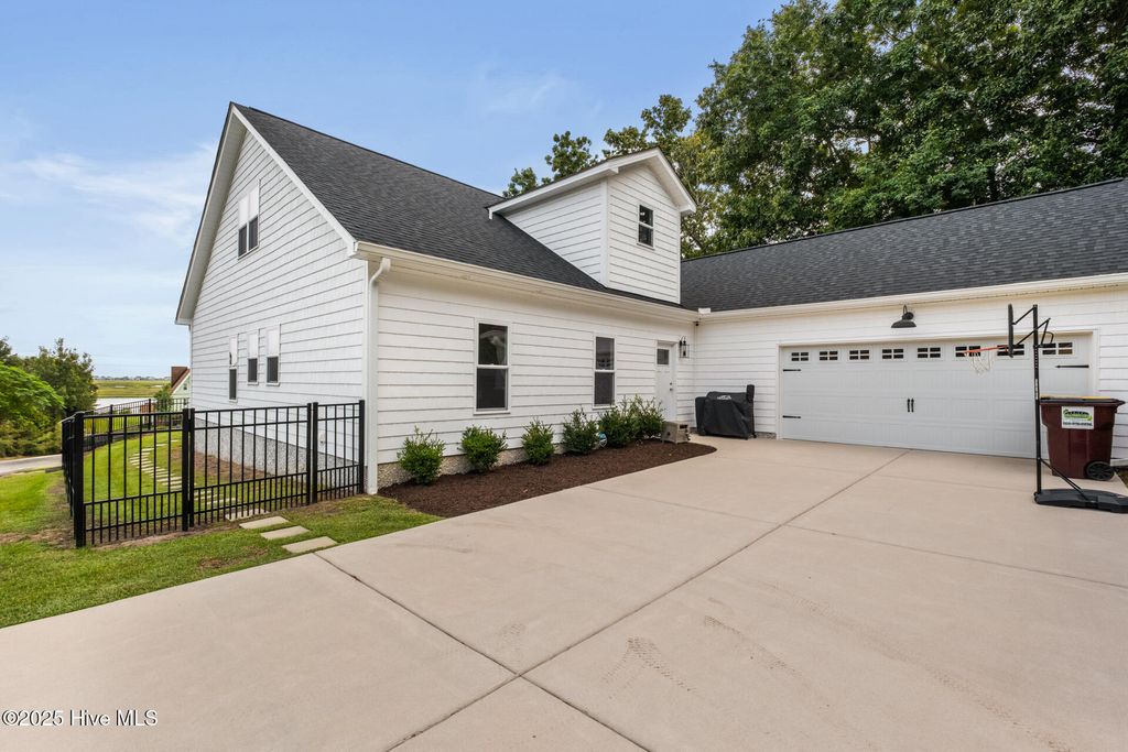 Welcome to 1406 Kings Landing Road, a custom-built 4 bed, 3 bath home, nestled on a beautifully elevated .46 acre lot where a coastal aesthetic merges seamlessly with a floorplan designed for functionality! Located just across the street from the Intracoastal Waterway, this home offers sunrise views of the scenic Waterway & South Topsail Island, and showcases a wraparound porch that's perfect for taking in the salt air while overlooking a sweeping front yard. Inside, stylish Craftsman details, along with a neutral color palette, accentuate a simple, but elegant layout while offering the perfect canvas for you to make your own! Upon stepping inside, you're greeted by a spacious living area where the windows suffice for art, framing the coastal views, along with LVP flooring that runs throughout the main living area & Kitchen. The kitchen boasts stainless appliances, a gorgeous tile backsplash, ample cabinetry, a Reverse Osmosis System (that will convey) & solid surface countertops that overlook the living room, dining area & foyer. Adjacent to the kitchen are a guestroom and full bath on one side and a large laundry room on the other. The Master Suite completes the downstairs and also offers a water view that starts your day before stepping into the luxurious en suite that showcases tile flooring, dual vanities, a soaking tub and a walk-in shower! Upstairs, two remaining bedrooms flank an open living area that's perfect for a media room, play space or an additional family room upstairs, along with another full bath for convenience! This home offers a large array of diversity in the form of options for a home office, adequate guest spaces and/or a growing family, all while accommodating a coastal lifestyle and ambiance. Outside ,a two car garage & fenced play area complete the home & encourage outdoor play, relaxation or entertaining family & friends! See Agent Remarks for more info