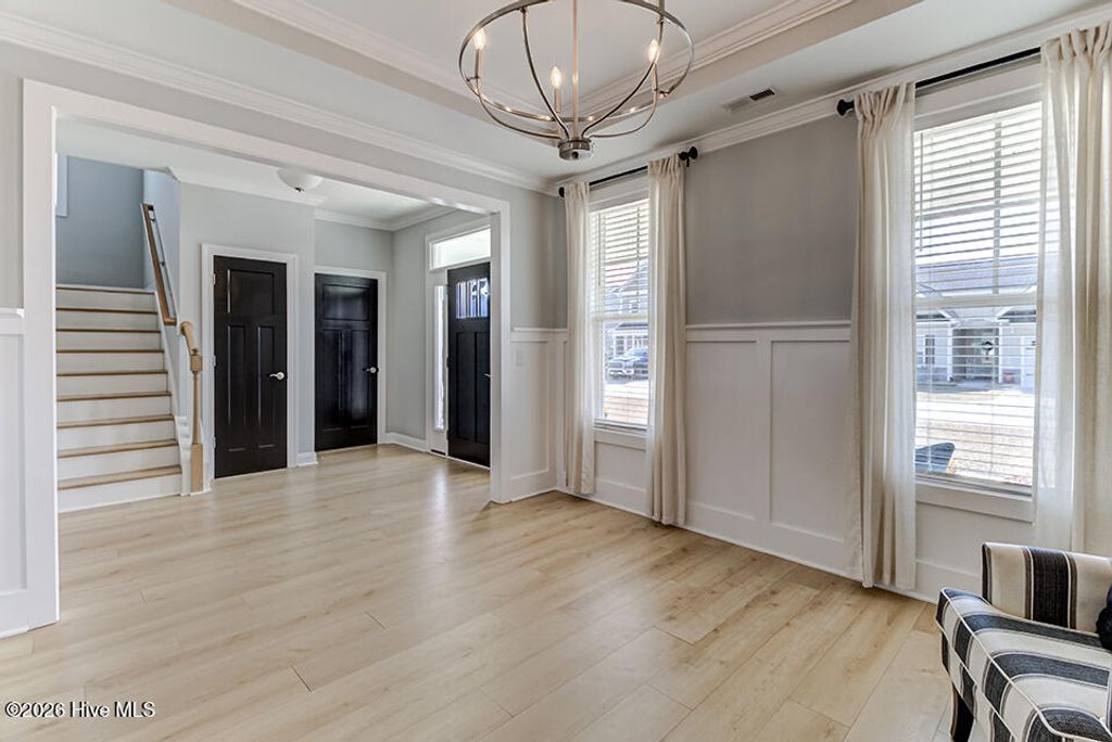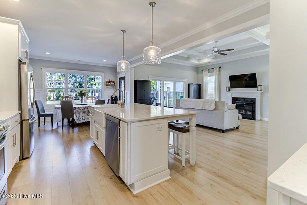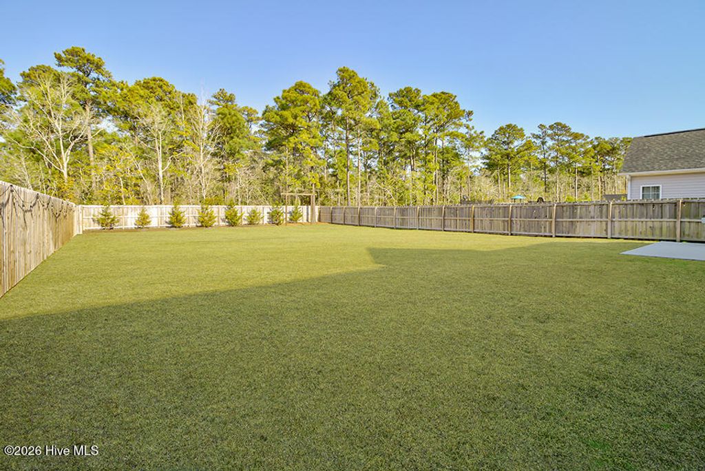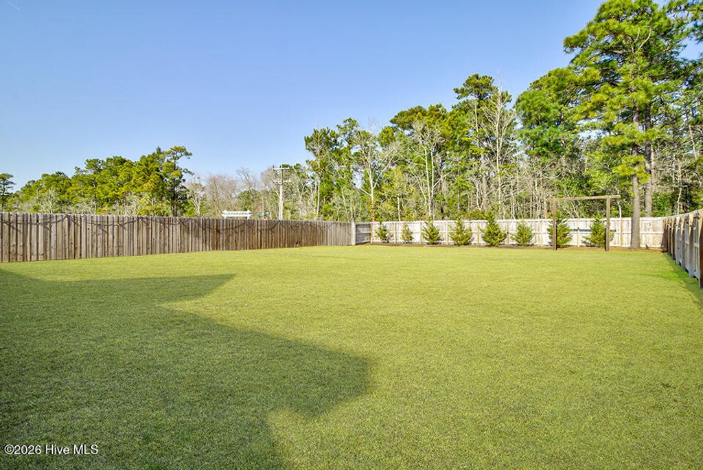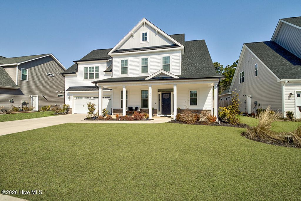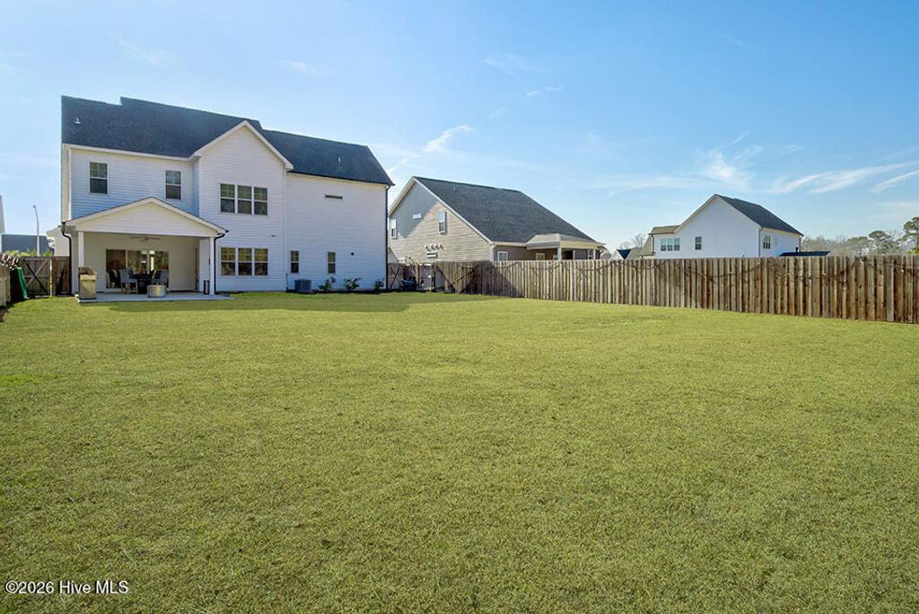 Located in the desirable Hampstead community of Sanctuary at Forest Sound, this beautiful Hardison Builders home is truly better than new and offers the perfect blend of style, function, and space"”inside and out. Situated in the Topsail school district and just a short drive to the beach, this location combines everyday convenience with coastal living at its best. Designed with today's lifestyle in mind, the open floorplan is filled with tons of natural light and showcases beautiful plank flooring throughout the downstairs. The well-equipped kitchen is the heart of the home, featuring abundant storage, a large center island, gas cooktop, breakfast nook, spacious pantry, and seamless flow into the main living spaces"”ideal for everyday living and entertaining alike. Downstairs also includes a thoughtfully designed drop zone complete with a built-in private workstation, perfect for working from home or staying organized. Upstairs, you'll find generously sized secondary bedrooms with walk-in closets and a convenient Jack and Jill bathroom. The oversized primary suite is a true retreat, offering exceptional space and a tremendous walk-in closet that will exceed expectations. The laundry room is ideally located adjacent to the bedrooms for added convenience. Step outside and experience one of this home's standout features"”an enormous, fully privacy-fenced backyard with endless possibilities. With room for a future pool, garden parties, play areas, or outdoor entertaining, this space is ready to bring your vision to life. Enjoy outdoor living year-round with welcoming front and back porches along with a large patio area perfect for relaxing or hosting guests. This exceptional home combines quality craftsmanship, functional design, a prime Hampstead location near the beach, and access to Topsail schools"”making it an opportunity you won't want to miss.
