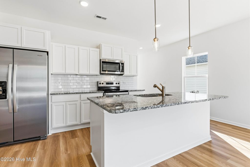 Welcome to Brookfield Branch! This beautifully designed Honeybird floor plan with charming farmhouse elevation offers the perfect blend of style, comfort and thoughtful upgrades. Featuring 9 foot ceilings and a finished bonus room, this home provides flexible living space ideal for a home office, guest retreat or media room. The primary suite is conveniently located on the first floor, creating easy everyday living and added privacy. The kitchen is the heart of the home with 36 inch upper white shaker cabinets, granite countertops and stainless steel appliances. Elegant pendant lighting adds warmth and character while the open layout flows seamlessly into the main living areas. Bathrooms feature quartz countertops and comfort height toilets for both style and convenience. The Cottage trim package throughout the home enhances window jambs and cased openings, adding architectural detail and a polished finish. Enjoy premier landscaping with irrigation in the front, sides and backyard, making maintenance simple while keeping your lawn lush year round. Exterior flood lights at the front and rear provide added security and peace of mind. Located in the desirable Brookfield Branch community, this home offers timeless design, modern upgrades and exceptional value in Hampstead. Schedule your private tour today.