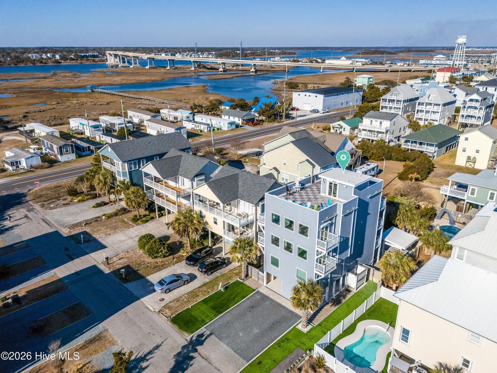 Welcome to some of the best views in Surf City! 106 Charlotte Avenue has so much to love about it. It is less than a minute walk to the beach, it is less than half a mile to the shops and restaurants in Surf City, and it has some absolutely incredible Ocean and Intracoastal views from the massive rooftop deck. This updated home has over 3,700 square feet of indoor living space with 6 bedrooms and 6 bathrooms, plenty of room for friends and family to enjoy the beach life. With 2026 rental projections well over $160,000, this property also makes a fantastic second home or investment. The in-ground pool and hot tub in the backyard make it feel like you are on vacation. The outdoor shower lets you keep all the sand and salt outside where it should be. The sunsets and sunrises from the rooftop deck are second to none, there is a lot to love about 106 Charlotte Avenue!
