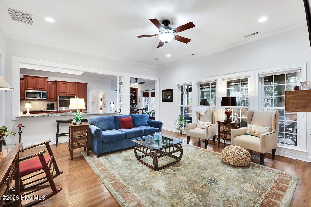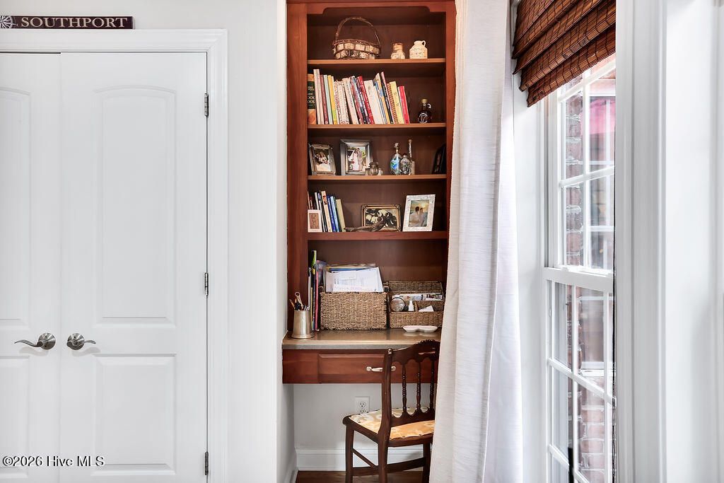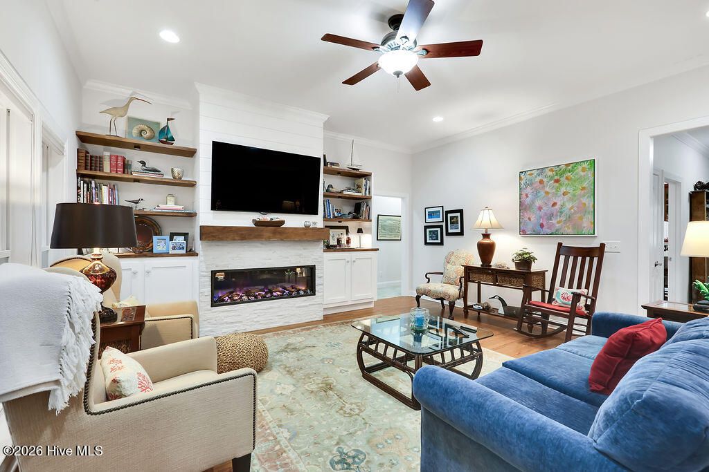 Lowcountry brick home in The Landing at Southport -beautifully updated, meticulously maintained, and refined with thoughtful upgrades throughout. Capital improvements elevate the home's integrity with a new roof, new HVAC system, encapsulated crawlspace, whole-house water filtration system, hurricane shutters, and termite bond. The interior has been freshly painted and enhanced with custom built-in bookcases and an electric fireplace. The driveway has been extended with an additional concrete pad; the garage now includes a new workbench, refrigerator, and door opener. Additional enhancements include a new kitchen refrigerator, washer & dryer, updated faucets, new dining chandelier and lush new landscaping with sod, irrigation, and trees. A brand-new rear deck completes the outdoor transformation. Located in one of Southport's most sought-after riverfront communities, this all-brick residence sits on approximately .29 acres framed by mature landscaping that creates privacy and a peaceful setting. The thoughtfully designed floor plan offers 3 bedrooms, 2 baths, a flex/or studio space, formal dining room, spacious bonus room, and a 2-car garage. The open kitchen and living area create an inviting space for everyday living and entertaining. The kitchen features a vaulted ceiling, solar tube for added natural light, cherry cabinetry, granite countertops, stainless steel appliances, and a generous breakfast area overlooking the backyard. The primary suite includes a tray ceiling, plantation shutters, a large walk-in closet, tiled shower and garden tub. Gorgeous hardwood floors in the main living areas provide a classic look. Carpeted bedrooms and tiled baths provide comfort and durability. The living room showcases twelve-foot ceilings and floor-height windows filling the home with natural light. Residents enjoy a clubhouse, swimming pool, sidewalks, and a private pier on the Cape Fear River embracing the very best of the Southport Riverfront Lifestyle.