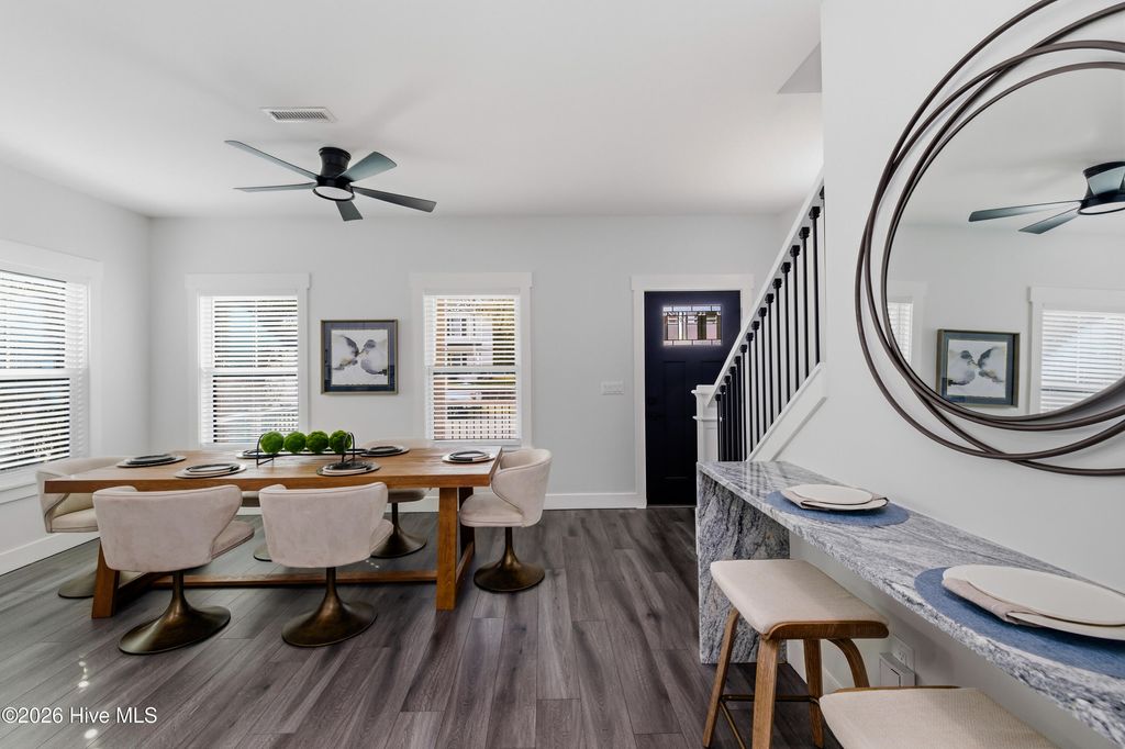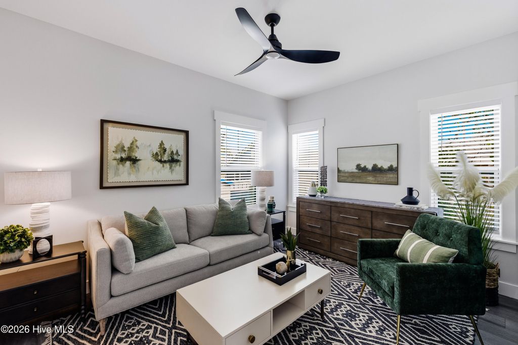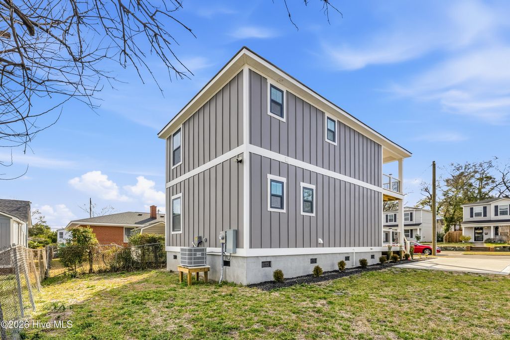 Brand new construction in the heart of the vibrant Brooklyn Arts District! This stunning 3-bedroom, 3-bath home blends modern design with coastal comfort and an unbeatable downtown lifestyle. Step inside to beautiful natural light, gleaming LVP flooring, granite countertops, stainless appliances, and a bright, open layout designed for both everyday living and entertaining. The three full bathrooms feature tasteful tile work with sleek glass shower doors, while ceiling fans and blinds throughout the home add both style and convenience. Each closet is thoughtfully designed with modern black built-in shelving for a clean, elevated look. One of the true highlights? Two massive covered porches--one on the lower level and one upstairs--perfect for morning coffee, evening gatherings, or simply soaking in Wilmington's coastal climate year-round. Imagine enjoying your morning coffee straight out of your bedroom looking toward the Cape Fear River. Located just steps from the restaurants, breweries, a park, coffee shops, galleries, and riverfront charm that make Downtown Wilmington so special, this property offers the best of walkable city living. Off-street parking adds convenience and value. The Brooklyn Arts District is one of Wilmington's fastest growing districts and quickly becoming the most popular meeting spot for local charm. Whether you're looking for a primary residence in the middle of it all or a savvy investment opportunity, this Brooklyn Arts District beauty checks every box.