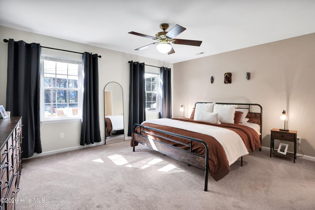 Welcome home to this versatile 3-4 bedroom split-bedroom floor plan situated on nearly half an acre! A long driveway leads to the 2-car garage, offering ample parking and privacy. The low-maintenance vinyl exterior and laminate flooring throughout make everyday living easy and convenient. The Finished Room Over Garage provides incredible flexibility"”perfect as a 4th bedroom, home office, gym, playroom, or media space. The spacious, fenced backyard and patio offers room to relax, entertain, garden, or let pets roam freely. Enjoy the freedom of NO HOA while still being conveniently located just south of Hampstead city proper"”giving you that peaceful country-living feel with easy access to Wilmington, Hampstead, and nearby beaches. A rare combination of space, flexibility, and location- Check out the Matterport tour or come see it in person today!