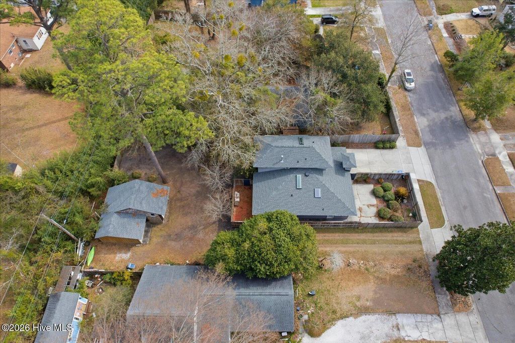2111 Klein Road is a 2-bedroom, 2-bath home with an attached turnkey studio ADU in Wilmington's Princess Place neighborhood, approximately 2 miles from downtown and 2 miles from ILM airport. What sets this property apart is its built-in income potential, the upstairs ADU has its own kitchen, bath, and private entrance, ready to rent from day one. Recent upgrades include a brand new roof, new skylights, fresh paint, and new LVP flooring throughout the main level. The oversized lot features a patio, wood deck, wired storage shed, and established wood fencing with no HOA. Located in a quiet, tree-lined neighborhood with Wrightsville Beach just 9 miles east, this is one of the most unique investment ready properties currently available in Wilmington at this price point.