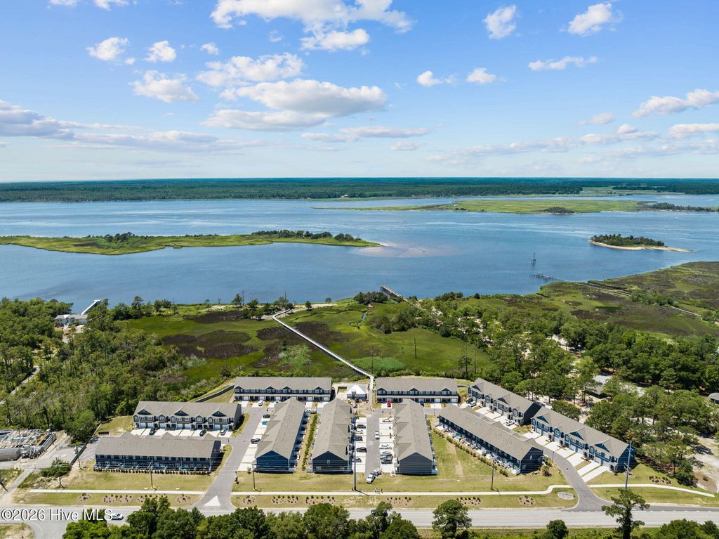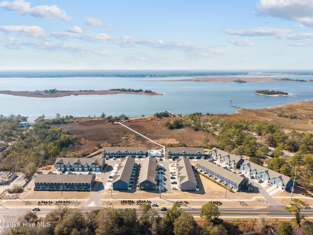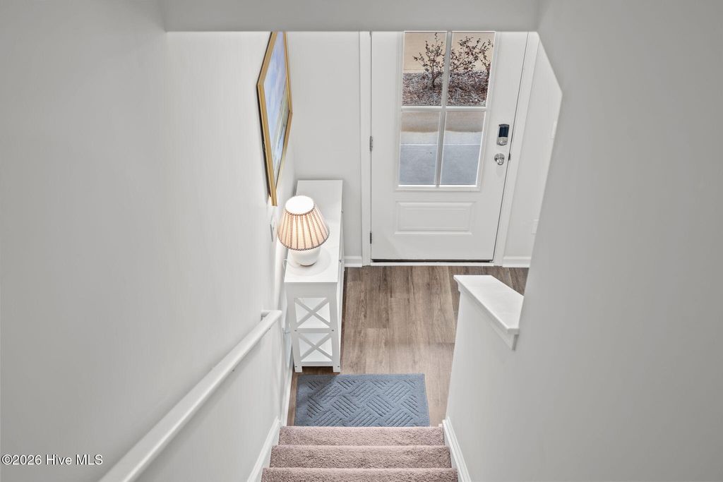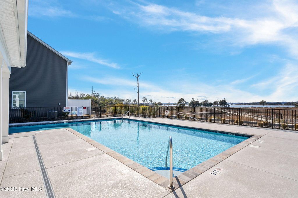 Low-maintenance living meets riverfront lifestyle in this 3-bedroom, 2.5-bath townhome in the Grand Bay community. With water access and a pool overlooking the Cape Fear River, this is coastal living designed to be easy. The main level offers a well-designed open floor plan that feels both functional and inviting. The kitchen anchors the space with an oversized island, quartz countertops, stainless steel appliances, and a pantry for extra storage. It flows seamlessly into the living and dining areas, making everyday living and entertaining feel effortless. Just off the main space, step outside to your private patio, perfect for quiet evenings or weekend grilling. A half bath, additional storage closet, and access to the one-car garage complete the first floor. Upstairs, the primary suite features cathedral ceilings, a spacious walk-in closet, and an en suite bath with a double vanity, walk-in shower, and linen closet. Two additional bedrooms, a full bath, a convenient laundry closet, and extra linen storage provide flexibility and function for guests, family, or a home office setup. Grand Bay residents enjoy resort-style amenities including a community pool overlooking the river, kayak launch and storage, and a riverfront boardwalk and gazebo - ideal for taking in the incredible sunsets. Conveniently located just minutes from Carolina Beach and a short drive to Downtown Wilmington and Wrightsville Beach, you'll have easy access to dining, shopping, groceries, and medical facilities while still enjoying a peaceful coastal setting.