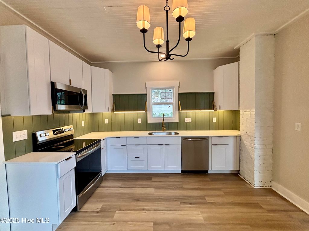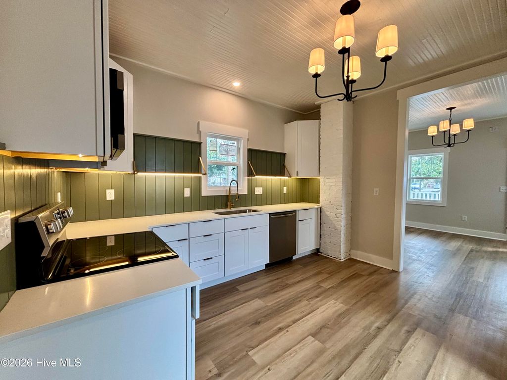 Fully renovated, turnkey Brooklyn Arts District cottage tucked away on a corner lot on a brick-lined street. This charming home is perfect for investors or anyone seeking affordable downtown living with no updates needed. This home was renovated from the studs up, and features high-quality finishes such as new wood shaker cabinetry, quartz countertops, LVP flooring throughout (no carpet), tiled shower and bathroom, stainless steel appliances, fireplace, craftsman trim, upgraded lap accent walls, tounge and groove wood ceilings, and a fully fenced yard - all rare features at this price point. Other notable features include a brand new metal roof, new windows, new drywall, new insulation, and new flooring throughout. HVAC (mini splits), electrical (including panel), and plumbing systems are all brand new. Historic porch spindles and original wood beadboard ceilings add to the charm of this cozy bungalow. This cottage would make a great short- or long-term rental property that's truly turnkey, low-maintenance, energy-efficient, and located within walking distance of historic downtown Wilmington, the Live Oak amphitheater, and the Brooklyn Arts District.