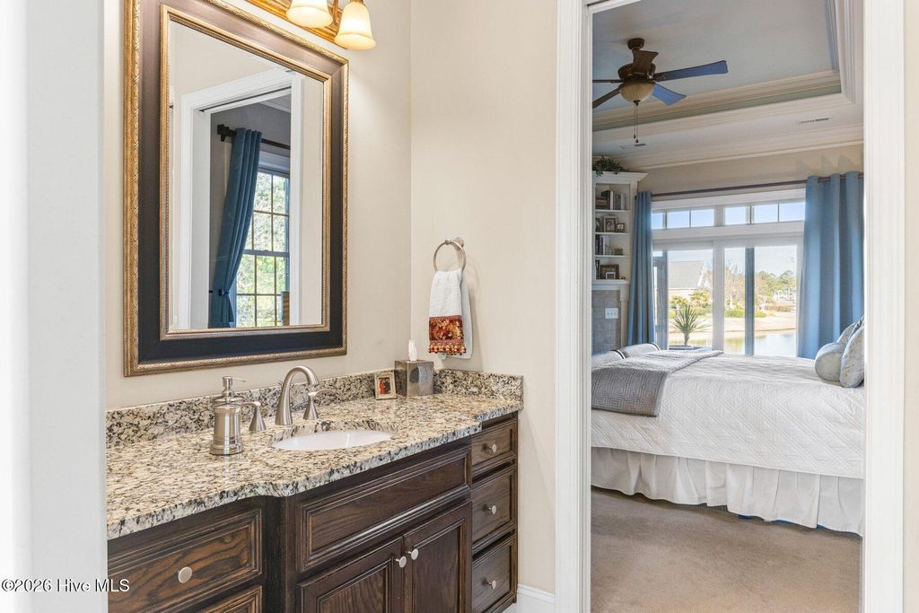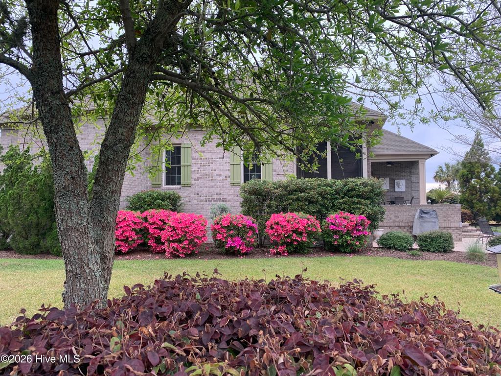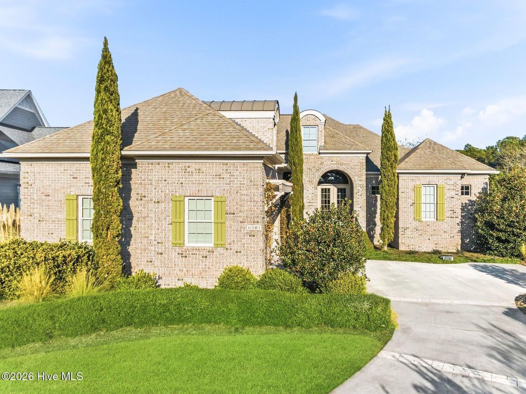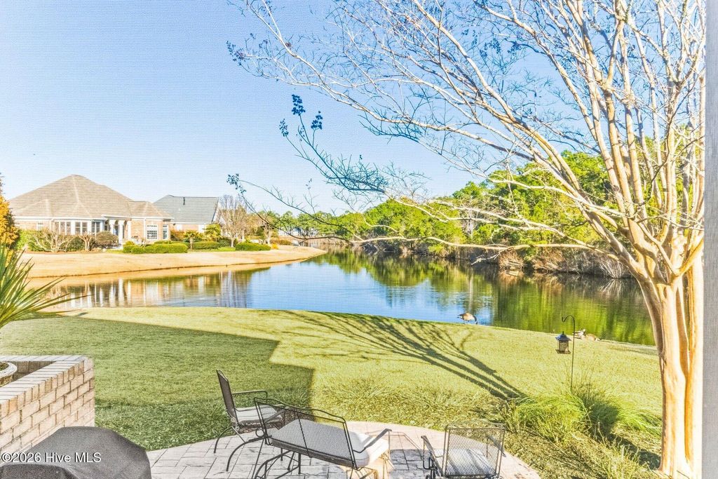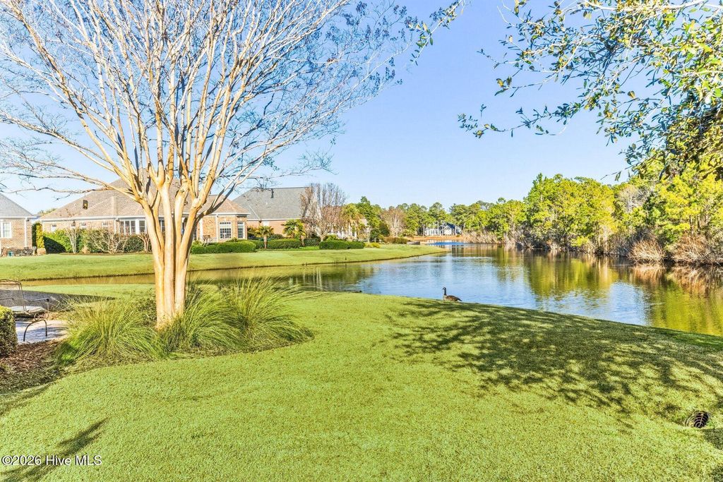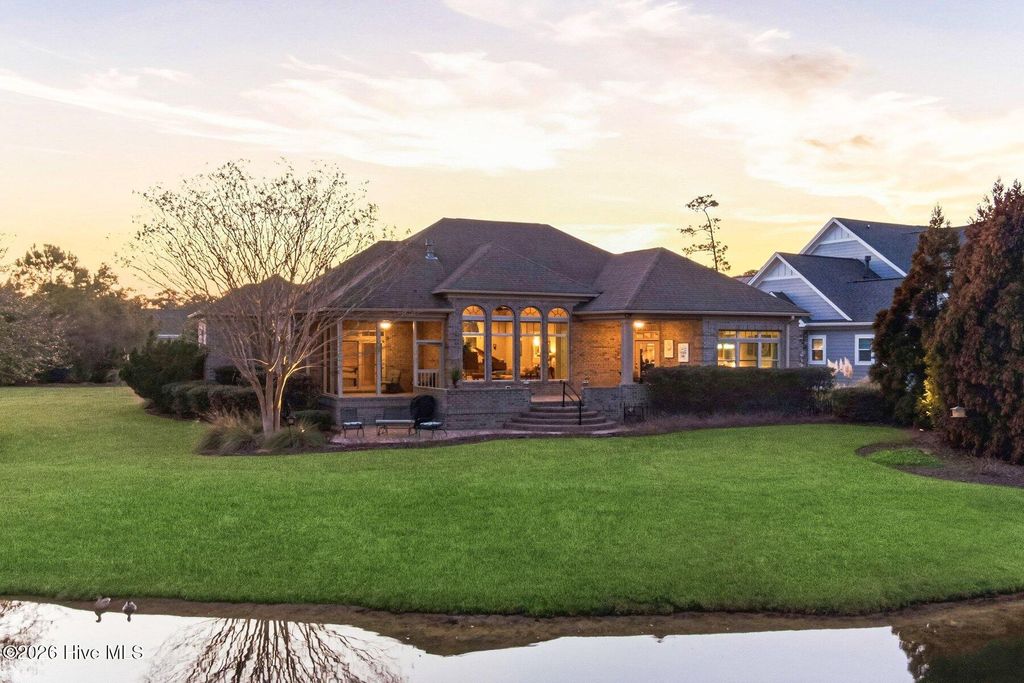Some homes capture water views. This one lives in them. Custom built and meticulously maintained by its original owner, this full-brick waterfront residence offers 2,673 square feet of thoughtfully designed living within the prestigious gates of Ocean Ridge Plantation. Positioned at the end of a quiet cul-de-sac, the setting enhances both privacy and presence. Expansive windows frame open water across the homesite, while a natural forested edge adds depth and seclusion - a perspective that feels grounded, peaceful, and rare. Morning light glides across the water from the covered screened porch as birds and wind through the trees become the soundtrack. By afternoon, reflections settle into long, quiet lines, creating a view that shifts beautifully throughout the day. Inside, hardwood flooring, elevated ceilings, custom trim, and built-ins add warmth and character. The living room fireplace anchors the space while drawing the eye naturally toward the water beyond. The kitchen blends refinement and function with granite countertops, GE appliances, generous cabinetry, and a layout designed for everyday living and entertaining. The main-level primary suite offers its own retreat with fireplace, built-ins, dual vanities, separate closets, jetted soaking tub, and direct porch access. A second bedroom and full bath are also on the main level, while upstairs a spacious private suite with full bath provides ideal guest or bonus living space. Built with longevity in mind: full brick exterior, whole-home generator, encapsulated crawlspace with dehumidification, and transferable termite bond (2023). Ocean Ridge Plantation amenities include indoor/outdoor pools, fitness, pickleball, walking paths, championship golf, and a private oceanfront beach clubhouse at Sunset Beach. A carefully built one-owner home capturing one of the community's most compelling water perspectives - where structural integrity and coastal lifestyle meet