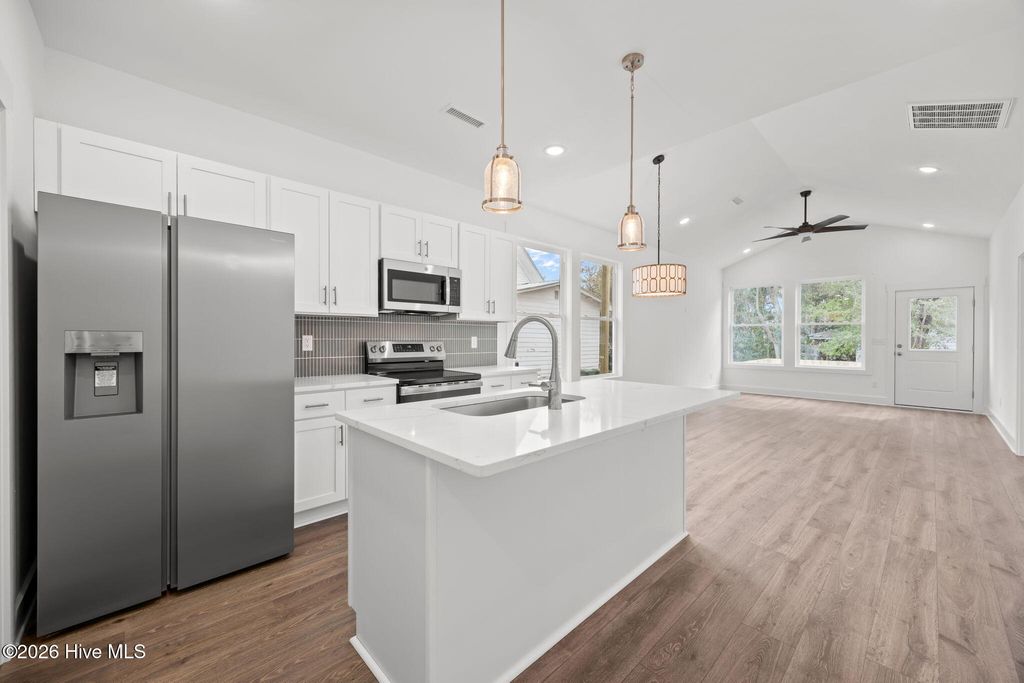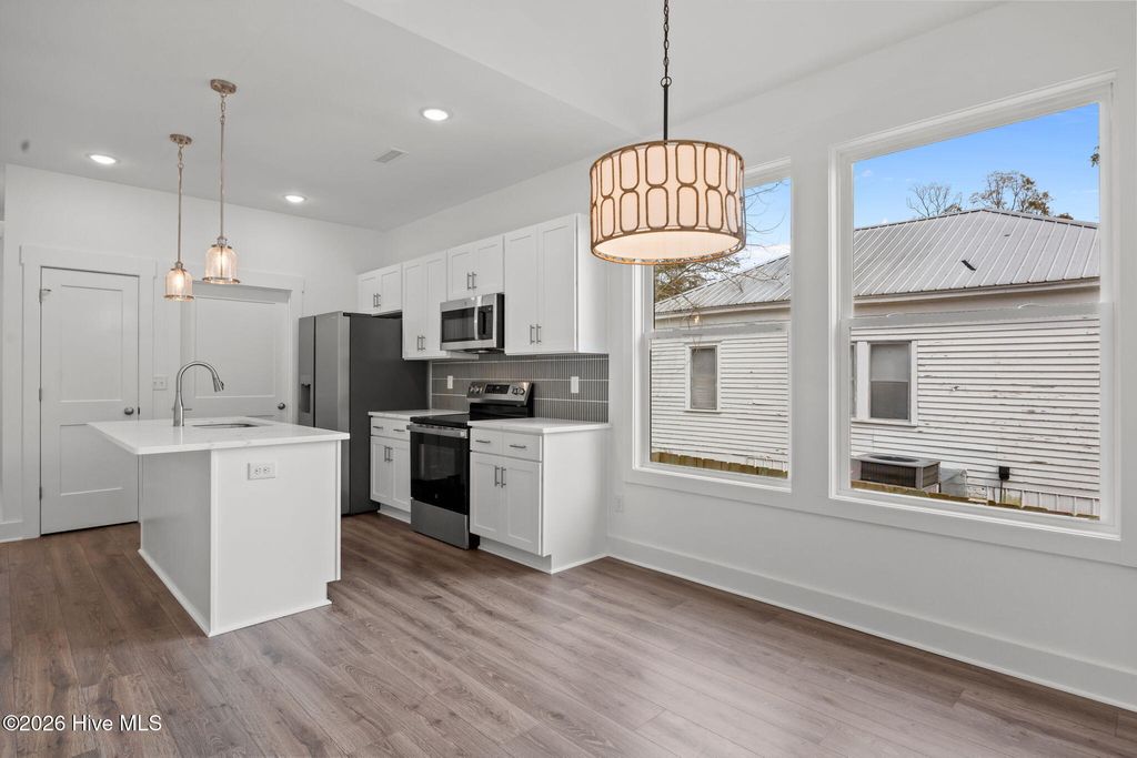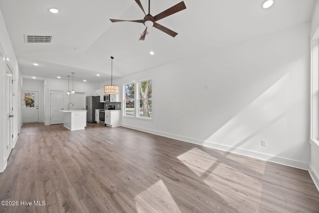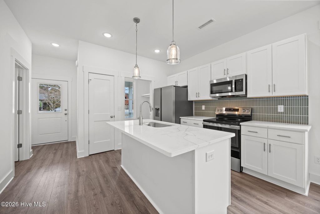 Brand new construction in downtown Wilmington -- where modern comfort meets walkable living. This thoughtfully designed home features an open floor plan with vaulted ceilings, quartz countertops, stainless steel appliances, and stylish finishes throughout. The spacious primary suite offers a walk-in closet and dual vanity for everyday convenience. Enjoy your morning coffee on the large covered front porch or entertain in the fully fenced backyard. Just steps from downtown restaurants, breweries, and riverfront attractions, this home combines location and lifestyle. Includes a one-year builder warranty and HVAC warranties for added confidence.