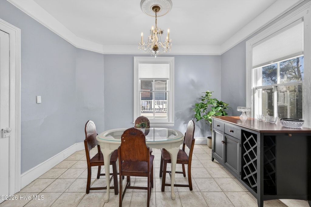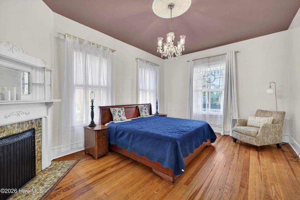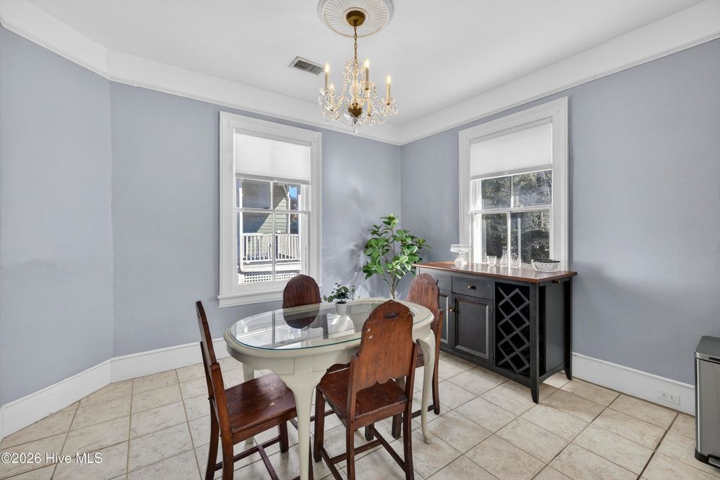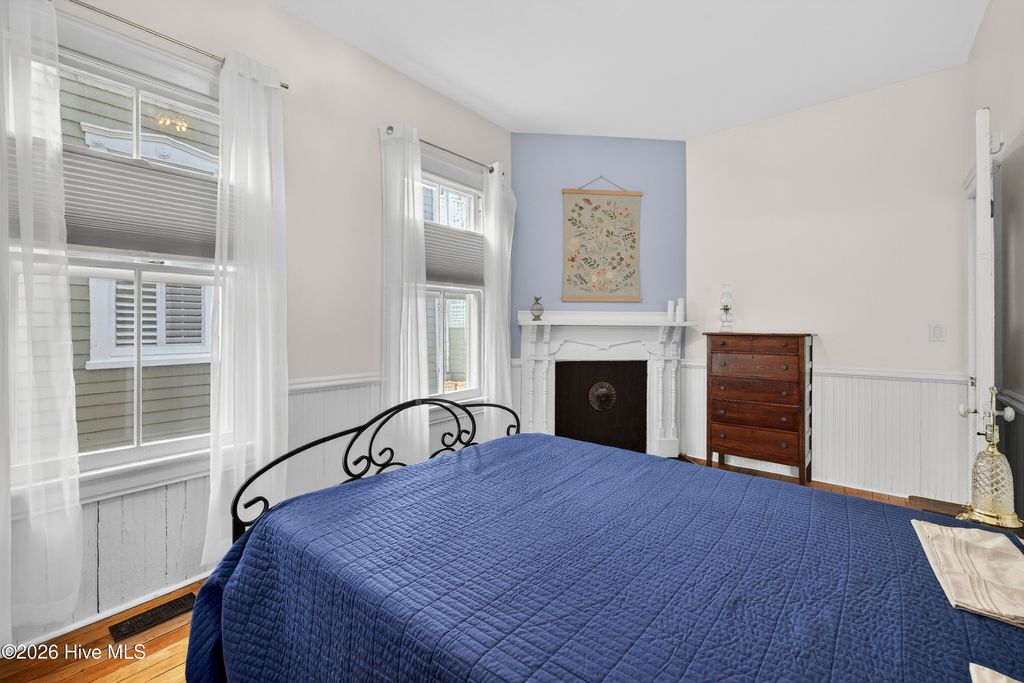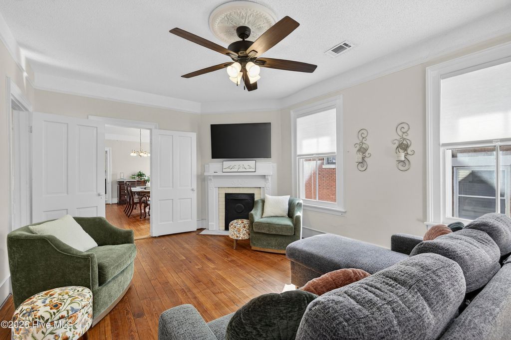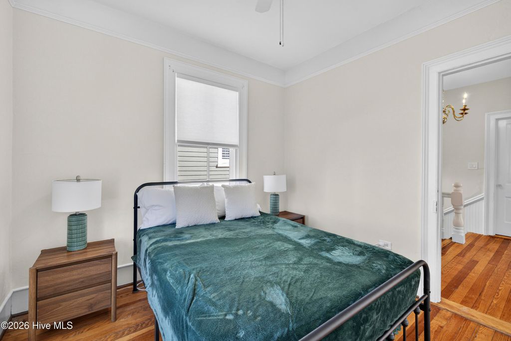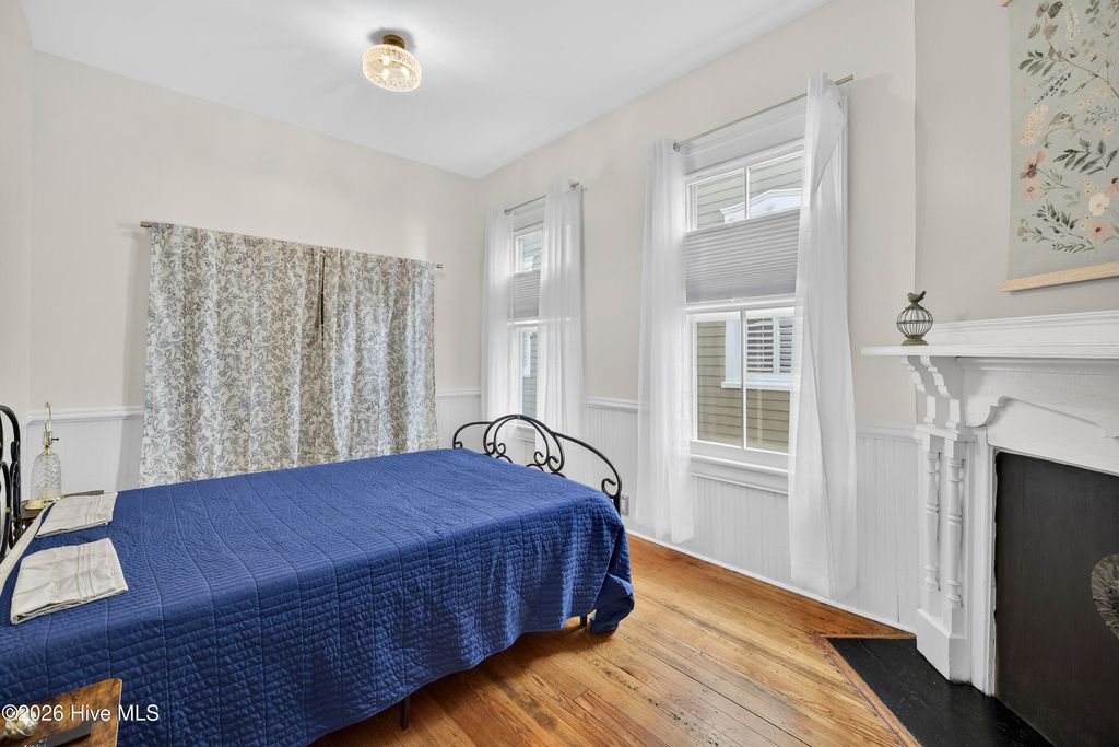 Stunning 120+ year old home in Historic downtown Wilmington being sold fully furnished! This home is currently split into 2 separate units however potential to be converted back to a single family home by opening up the entry hallway between them if desired. The old post previously used to tie up horses out front welcomes you to walk up to the covered rocking chair front porch where you can sit & watch the horse drawn carriage meander by. The inside of this well cared for home is filled with character and has been carefully maintained to keep the integrity of the historic charm. New roof was put on in 2024, most of the home has been re-wired, & the whole exterior has recently been painted. The upstairs unit has been updated with an on demand water heater. All appliances seen remain including the fridges, washers, & dryers. With natural gas hookups, both kitchens have gas stoves. Additional details throughout include hardwood flooring, high ceilings, & finished trim work. Spacious backyard with an extended paver patio, new decking, a newly installed privacy fence that has a tucked away treasure behind it - off street parking in back via alley access. Crawl space has been encapsulated & a dehumidifier installed, professionally done by ServPro. This home is conveniently nestled downtown within walking distance to many wonderful restaurants, coffee spots, & the historic USO building for community theatre shows. With all furnishings included, it's ready to go to generate air b&B or vrbo income.
