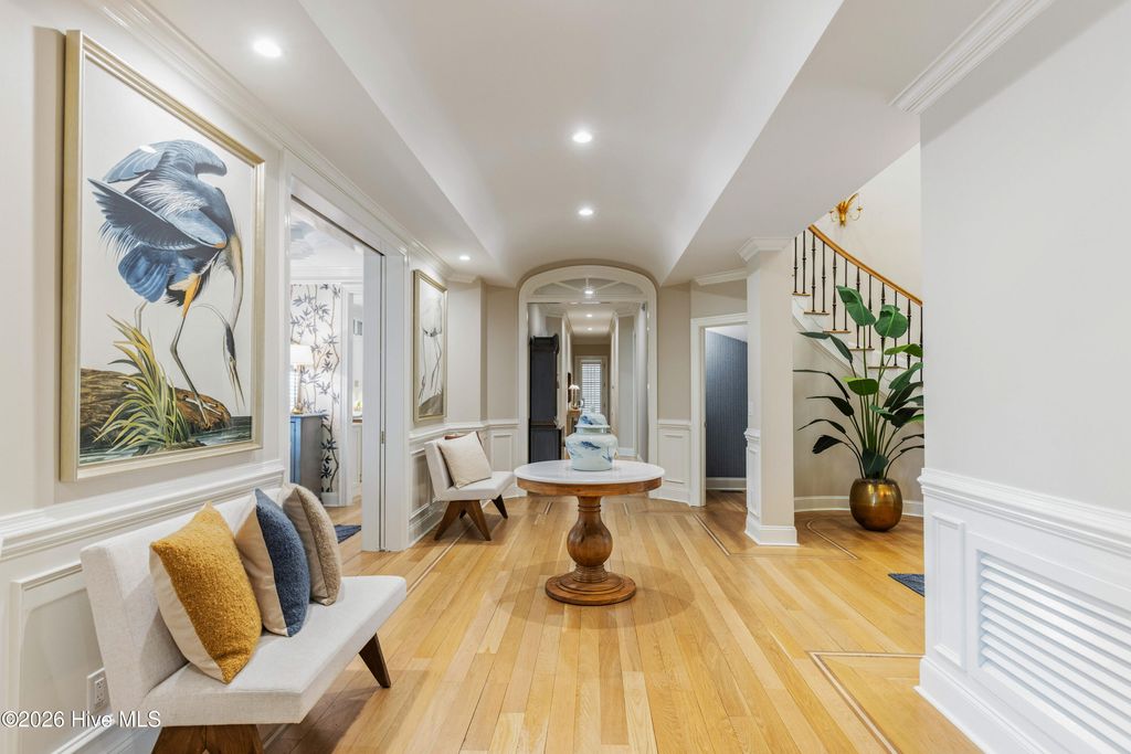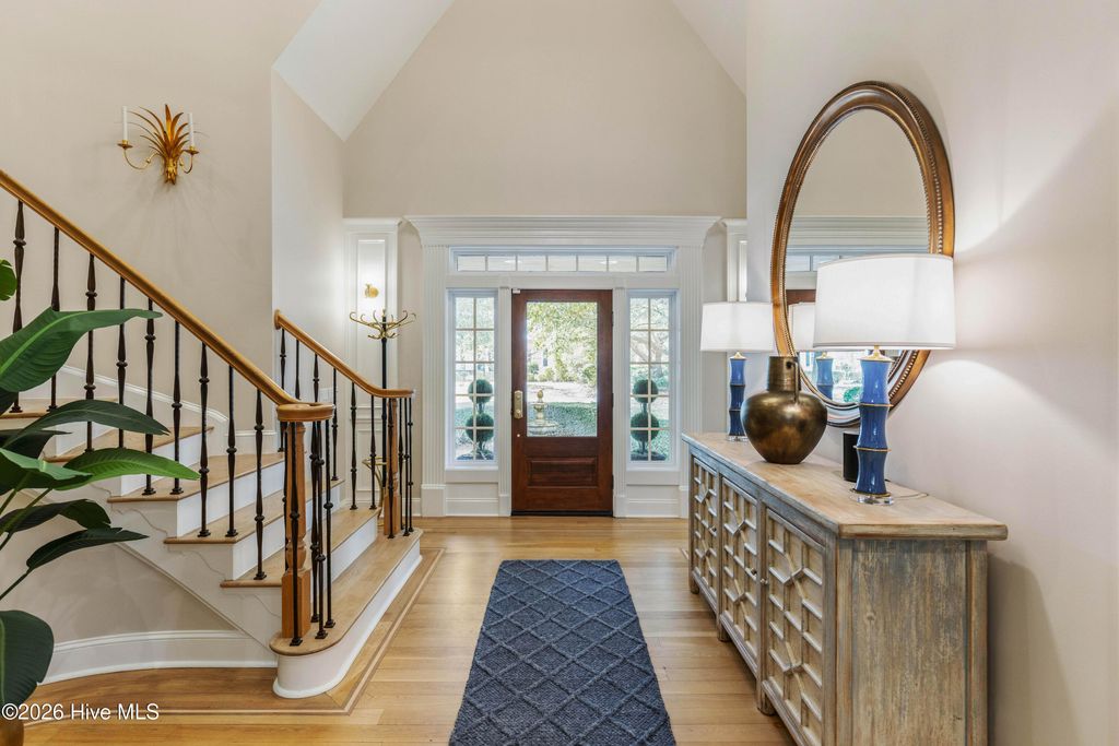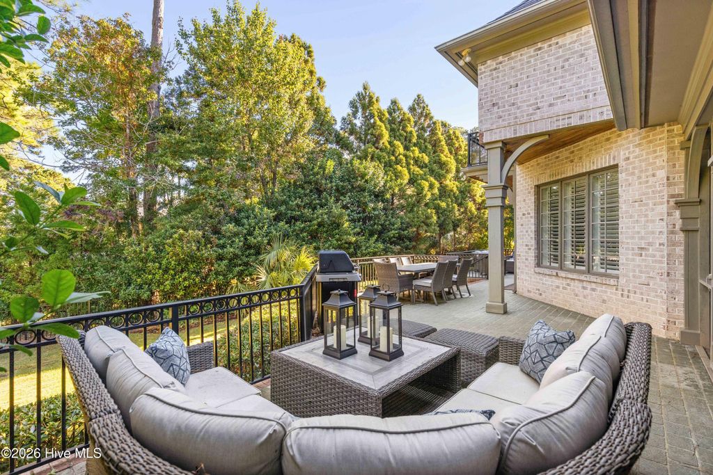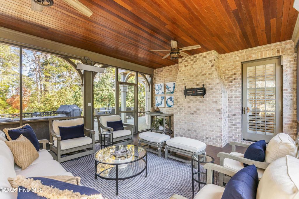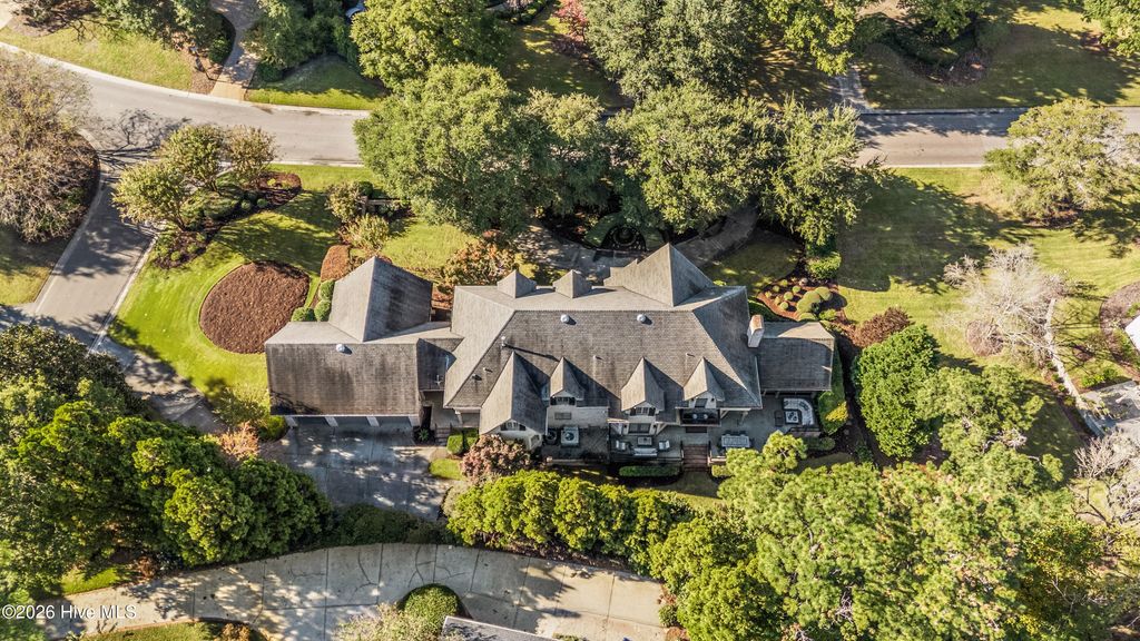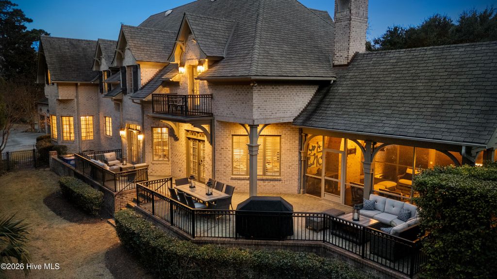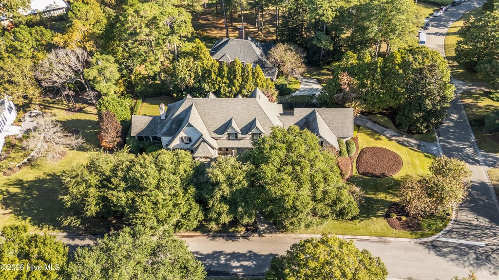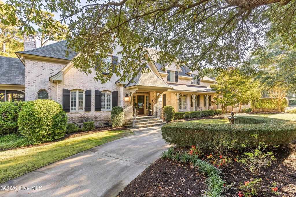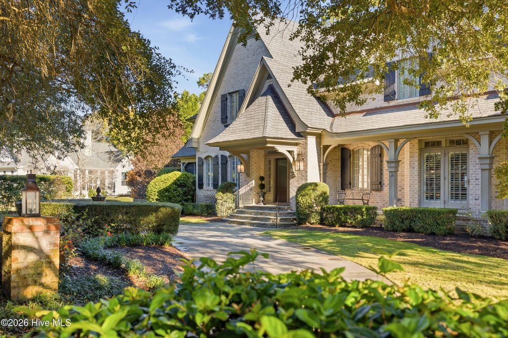 Welcome home to 2201 Masons Point Place -- a French Provincial masterpiece located in the prestigious gated community of Landfall. Offering over 6,800 sq ft, 5 beds, and 5½ baths, this exceptional residence features extensive updates and refined finishes throughout. Nestled on a corner lot, four stunning live oaks welcome you, complemented by a circular drive with fountain in front and a rear-entry 3-car garage. A grand foyer with soaring ceilings and a rounded staircase sets an elegant tone. The great room is designed for entertaining, featuring vaulted ceilings, gas fireplace, and a custom bar with designer glass backsplash and beverage fridge. A formal dining room with glass pocket doors and intricate molding. The updated kitchen showcases floor-to-ceiling cabinetry, reeded glass uppers, quartz countertops, new KitchenAid appliances, and an inviting keeping room with a second gas fireplace and matching stone surround. Beautifully designed first-floor laundry room offers custom cabinetry, modern hex tile, and a separate sink. First floor primary suite and an additional guest suite. The second floor features an expansive game room opening to a balcony overlooking Howe Creek, separate office with custom built-ins and wainscoting, and a dedicated home theater with built-in bar and refrigerator. A secondary staircase leads to a climate-controlled multi-purpose room ideal for a gym, craft room, or storage. Three additional bedrooms, including a second primary suite plus a second-floor laundry, for ultimate convenience. All walk-in closets feature custom California Closets. Expansive outdoor living includes a large screened porch with infrared heaters, a generous rear terrace, and covered breezeway -- each with several entry points -- ideal for al fresco dining and entertaining. Unmatched interior finishes and exceptional outdoor living. Full list of thoughtfully curated updates and features can be found attached. Schedule your private showing today!