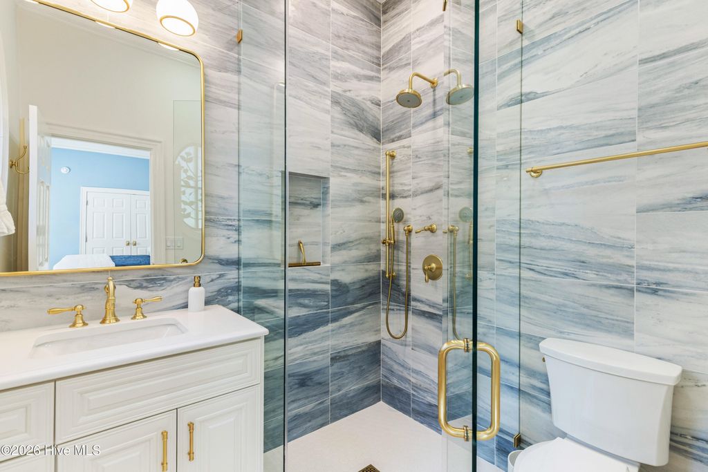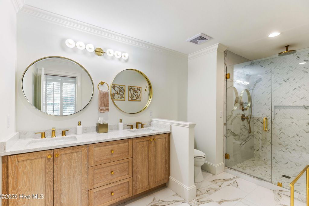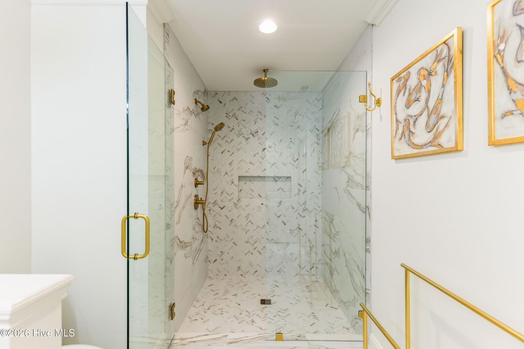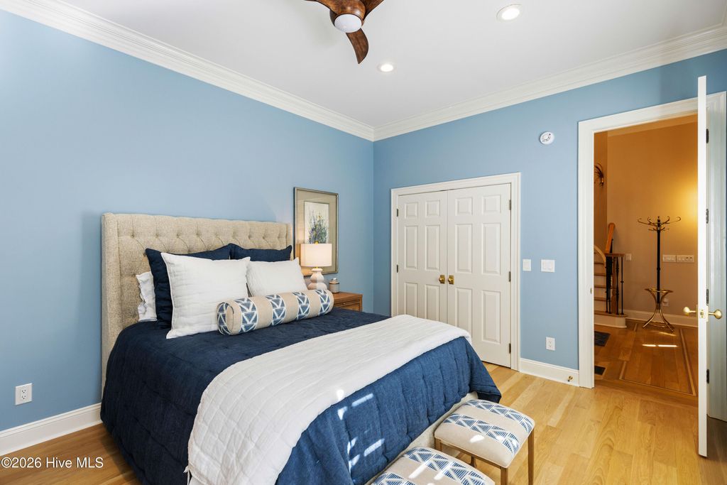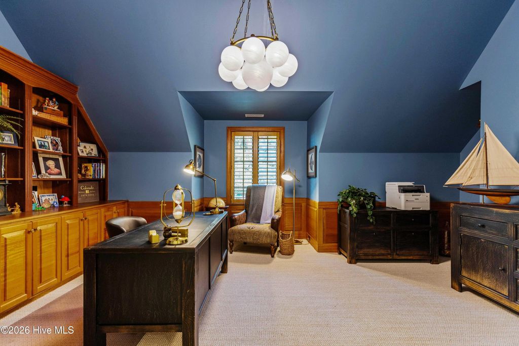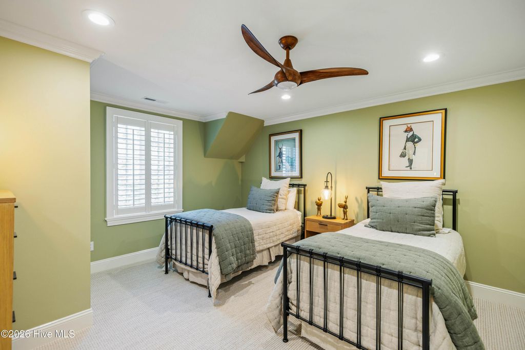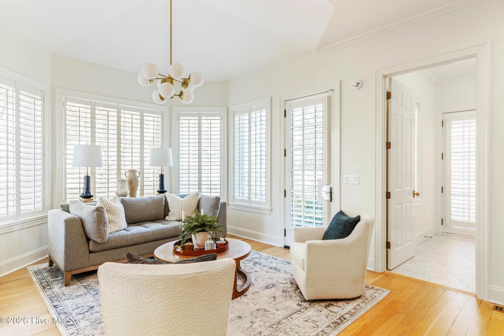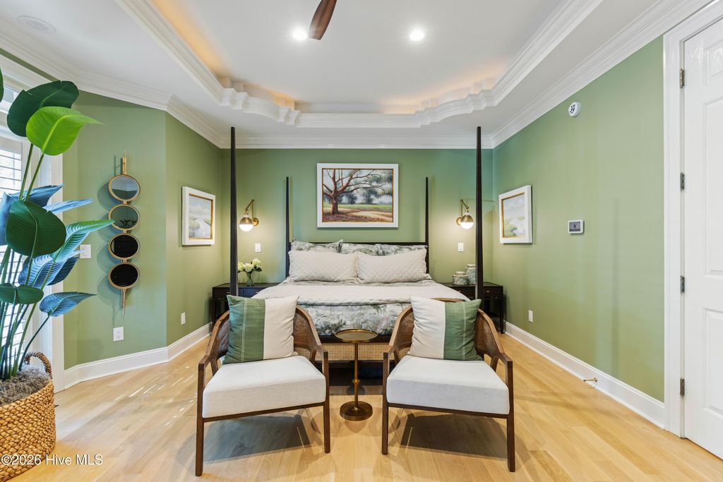 Welcome home to 2201 Masons Point Place -- a French Provincial masterpiece located in the prestigious gated community of Landfall. Offering over 6,800 sq ft, 5 beds, and 5½ baths, this exceptional residence features extensive updates and refined finishes throughout. Nestled on a corner lot, four stunning live oaks welcome you, complemented by a circular drive with fountain in front and a rear-entry 3-car garage. A grand foyer with soaring ceilings and a rounded staircase sets an elegant tone. The great room is designed for entertaining, featuring vaulted ceilings, gas fireplace, and a custom bar with designer glass backsplash and beverage fridge. A formal dining room with glass pocket doors and intricate molding. The updated kitchen showcases floor-to-ceiling cabinetry, reeded glass uppers, quartz countertops, new KitchenAid appliances, and an inviting keeping room with a second gas fireplace and matching stone surround. Beautifully designed first-floor laundry room offers custom cabinetry, modern hex tile, and a separate sink. First floor primary suite and an additional guest suite. The second floor features an expansive game room opening to a balcony overlooking Howe Creek, separate office with custom built-ins and wainscoting, and a dedicated home theater with built-in bar and refrigerator. A secondary staircase leads to a climate-controlled multi-purpose room ideal for a gym, craft room, or storage. Three additional bedrooms, including a second primary suite plus a second-floor laundry, for ultimate convenience. All walk-in closets feature custom California Closets. Expansive outdoor living includes a large screened porch with infrared heaters, a generous rear terrace, and covered breezeway -- each with several entry points -- ideal for al fresco dining and entertaining. Unmatched interior finishes and exceptional outdoor living. Full list of thoughtfully curated updates and features can be found attached. Schedule your private showing today!