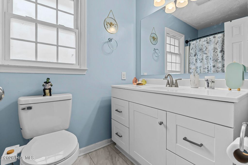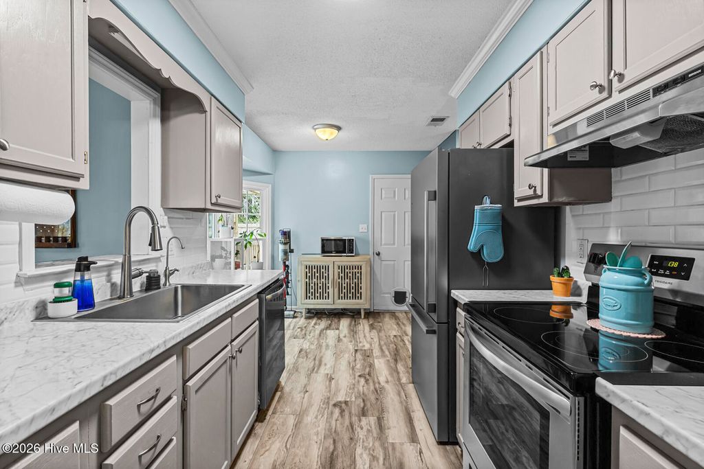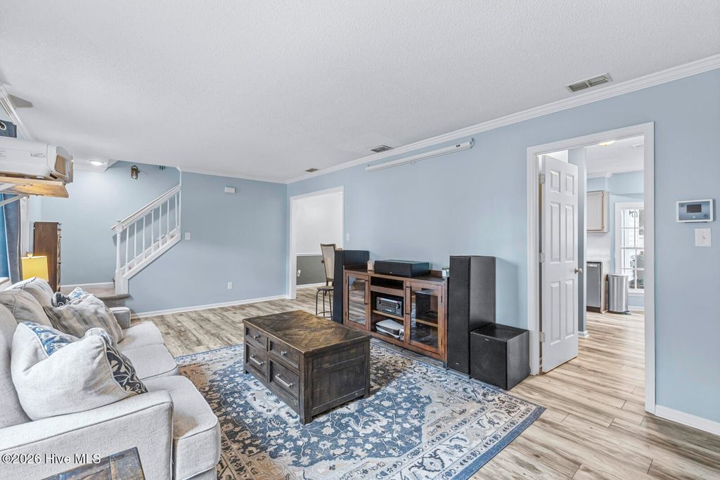 Colonial-inspired charm meets modern comfort at 201 Valencia Ct in Jacksonville. This thoughtfully updated two-story home offers the space you need with the upgrades you want. Enjoy peace of mind with a 2025 Trane HVAC system featuring CleanEffects and Air Scrubber technology, plus zoned controls for enhanced efficiency and year-round comfort. Inside, luxury vinyl plank flooring flows throughout the main level. The updated kitchen showcases a tile backsplash, stainless steel appliances, and ample prep space. Two spacious living areas and a formal dining room provide flexibility for gatherings, entertaining, or everyday living. Step outside to a large back deck overlooking a fully fenced backyard--ideal for outdoor enjoyment, gardening, or relaxing evenings at home. Upstairs, the primary suite offers generous space and a private ensuite bath. Two additional bedrooms and a full bathroom complete the second level. A dedicated utility/mudroom with direct access to the backyard and garage adds everyday convenience--especially on those rainy North Carolina days. Located close to shopping, dining, and local amenities, this home combines classic style, modern updates, and functional living spaces. Preferred lender credit available for qualifying client with Christian Carter at Guild Mortgage. Schedule your showing today!