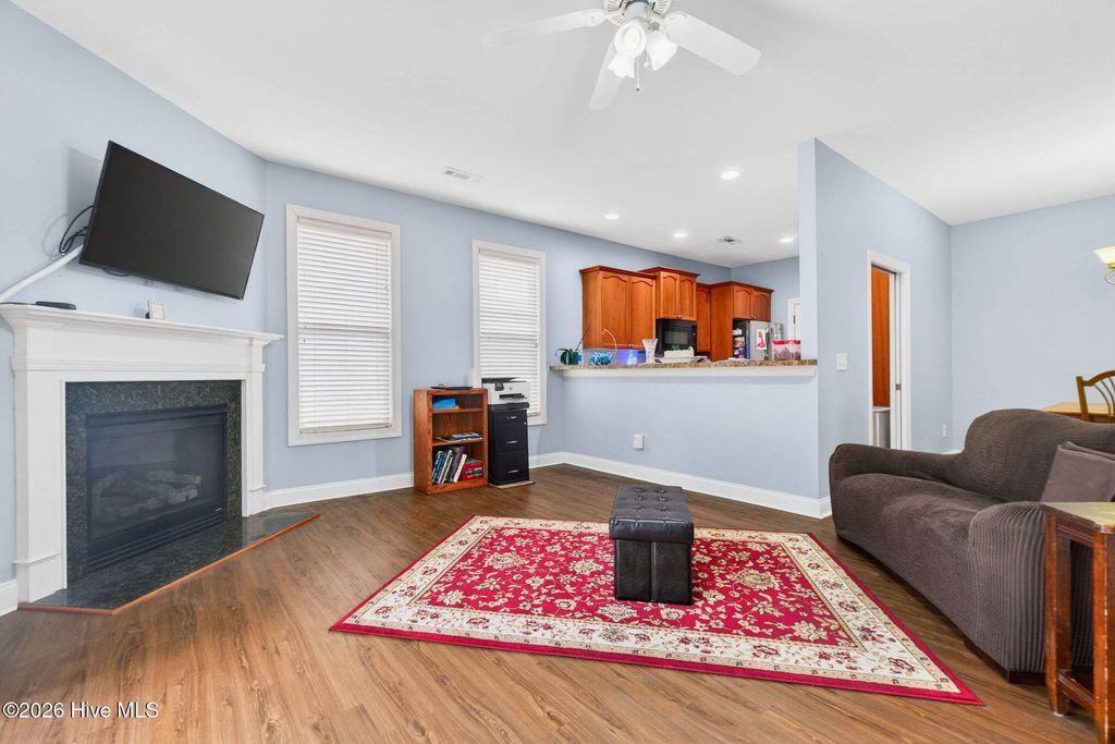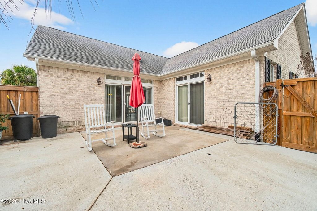 1018 Garden Club Way is a wonderful 3 bedroom 2 bath brick canal front home located in Waterford of the Carolinas in Leland, NC. It has a dock to enjoy the canal right in your back yard... It has easy care LVP flooring in the main living areas and in bedrooms 2 and 3. There's a low-maintenance fenced-in courtyard patio where you can create your own private oasis- it's also accessible from the primary bedroom. The primary bedroom suite has a trey ceiling and newer carpeting. It also has dual vanities, separate tub and shower and a walk-in closet. The kitchen has a tiled floor, warm neutral tone wood cabinetry, ample counter space and is open into the living room so entertaining is a breeze. There's a corner fireplace, too (it's not connected). The other two spacious bedrooms share the second full bath. The garage is heated and cooled with custom cabinetry for added storage. Come take a look and make it your own! Waterford is a unique planned community with 19 privacy gate-protected neighborhoods which are connected by scenic walking/biking paths and 17 miles of freshwater controlled canals and ponds fed by 10-acre natural Osprey Lake. Exceptional neighborhood amenities include a renovated clubhouse with fitness center, beach entry resort style pool and cabana, tennis, pickleball, bocce, basketball and a sandy volleyball beach and kayak and canoe launch. The commercial hub at the entrance of the community features grocery and essentials, dining, services and health, speciality shops and businesses, hotels and growing! In addition to all the great things the neighborhood has to offer, you're just a short drive to Historic Wilmington, major medical facilities, the airport and the beach!