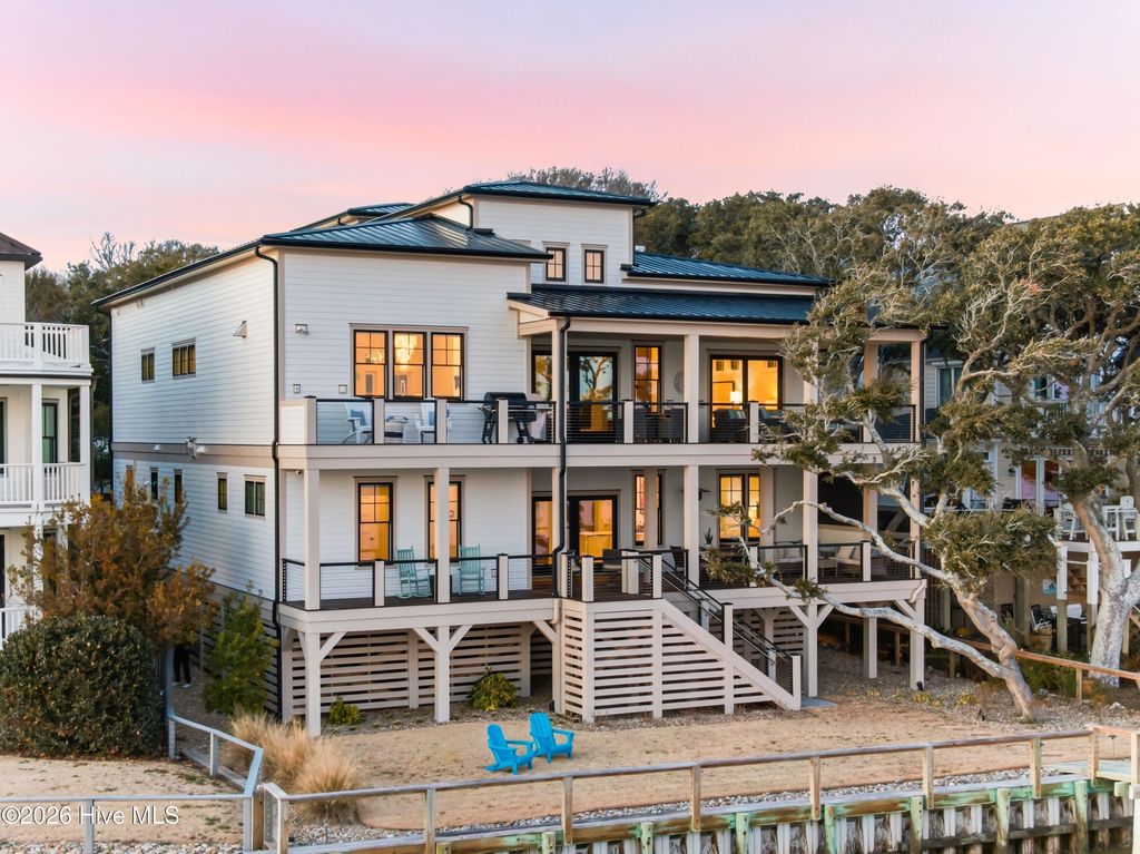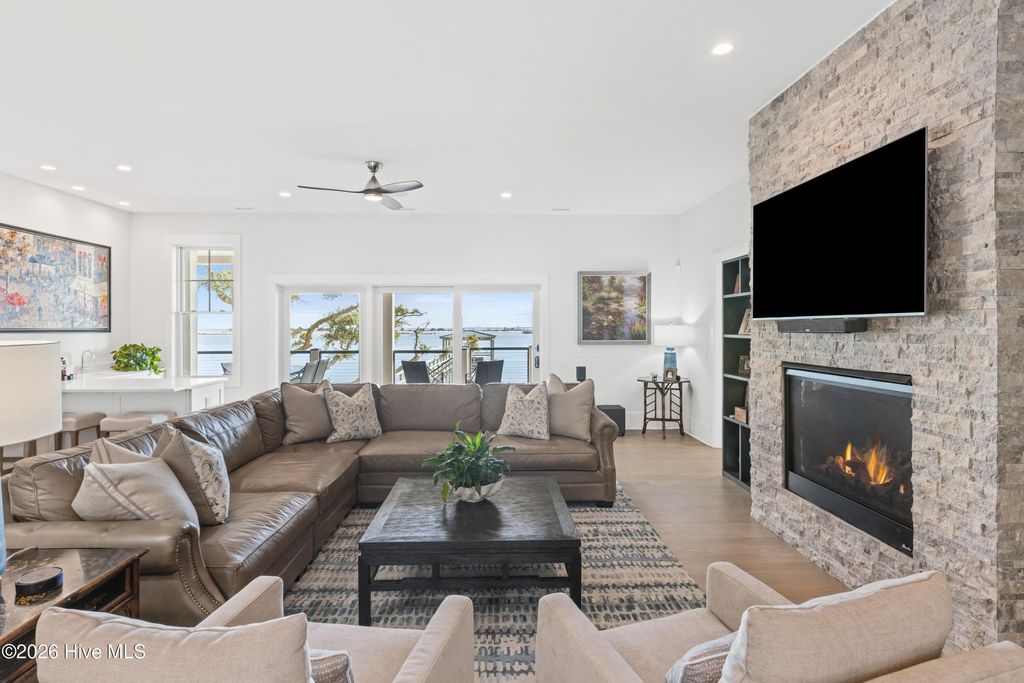 For the most discerning of buyers, 306 E. Bay Street is more than a home--it is a front-row seat to the very best of coastal living. Begin your mornings on the waterfront porch, coffee in hand, as the Bald Head Island ferry glides quietly down the Cape Fear River beneath a low blanket of silver fog. In the distance, the soft echo of ship horns carries across the water as a container vessel makes its ghostlike approach to port. By evening, golden light melts into the horizon and silhouettes of ibis drift gracefully toward their roost on Battery Island, best enjoyed beside the glow of the gas firepit. Positioned on one of the highest lots in historic downtown, the residence commands sweeping, unobstructed vistas that transform hour by hour -- sunrise to sunset, season to season. Conceived, engineered, and meticulously constructed over more than three years--with completion in late 2024--this extraordinary residence reflects vision, precision, and uncompromising craftsmanship at every turn. Every structural element, finish selection, and architectural detail was thoughtfully curated and flawlessly implemented, resulting in a home that is as enduring in quality as it is striking in presence. A rare and coveted amenity on the Southport waterfront, the property offers oversized, private, conditioned garages at street level--seamlessly integrated into the architecture--delivering both convenience and distinction seldom found within the historic district. Step through the stately entry doors into a dramatic three-story foyer where your gaze is immediately drawn through the lower-level living space to the water beyond. The entry level unfolds into a refined waterfront family room anchored by a striking floor-to-ceiling stone fireplace and custom wet bar -- an elegant setting for relaxed evenings after a day on the river. Two private en-suite guest retreats provide exceptional comfort and autonomy, while a dedicated exercise room and thoughtfully placed powder room enhance daily living. Ascend by private elevator or along the beautifully illuminated staircase to the breathtaking main living level, where an 18-foot coffered ceiling crowns the open-concept design. The gourmet kitchen -- equally suited for the accomplished chef or the gracious host -- showcases dual islands, Sub-Zero and Wolf appliances, custom cabinetry, and exquisite stone surfaces. The adjoining great room, appointed with custom built-ins and a second floor-to-ceiling stone fireplace, flows seamlessly into the dining area. Expansive sliding glass doors dissolve the boundary between indoors and out, opening onto the waterfront porch -- an idyllic extension of the living space and a spectacular setting for sunset gatherings or tranquil mornings. Also on this level: a refined private library, a beautifully designed multi-purpose laundry suite, a powder room, and a magnificent primary suite that spans the full depth of the home from street side to waterfront. This serene retreat captures commanding water views and offers a spa-inspired bath defined by understated elegance, refined materials, and thoughtful proportions. Throughout the residence, curated finishes and substantial structural engineering speak to enduring quality and modern resilience -- impact-rated windows and doors, elevated ceiling heights, custom millwork, refined lighting, seamless elevator access, and a building envelope designed for longevity along the coast. Every element has been executed with intention, harmonizing timeless Southport charm with contemporary sophistication. 306 E. Bay Street is not simply a waterfront home. It is a legacy property -- an architectural statement and a generational opportunity to own one of the most distinguished and thoughtfully executed addresses in historic Southport.