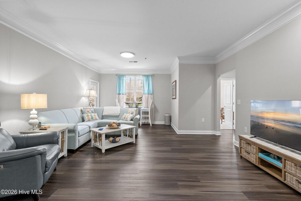 Welcome to this beautifully updated, first-floor furnished condo featuring the popular Magnolia floor plan in Woodlands at Crow Creek in Calabash, NC. This spacious 3-bedroom, 2-bath condo has been thoughtfully renovated with modern finishes and meticulous attention to detail. The large primary suite opens directly to the screened porch, offering the perfect spot to enjoy morning sunshine and relax in the afternoon shade. The suite includes a generous walk-in closet, and all bedrooms provide direct access to the screened porch/patio, creating seamless indoor-outdoor living. Recent upgrades include a new 50-gallon water heater (December 2025), luxury vinyl plank flooring throughout the main living areas, and new carpet in the bedrooms. The renovated kitchen features quartz countertops, all-new soft-close cabinetry, updated hardware, under-mount lighting, and brand-new appliances. Fresh paint, crown molding, and updated lighting add a polished touch throughout. A separate laundry room with added cabinetry enhances both storage and functionality. Furnishings convey with minimal exclusions, making this truly move-in ready. Residents enjoy two amenity centers with indoor and outdoor pools, a fitness center, tennis and pickleball courts, and an 18-hole championship golf course with an on-site clubhouse restaurant serving breakfast and lunch. Ideally located just minutes from Calabash's renowned seafood restaurants and shopping, and a short drive to the sandy shores of Sunset Beach and Ocean Isle Beach, this home offers the best of coastal living. Myrtle Beach's dining, entertainment, and outlet shopping are only about 30 minutes away. Perfect as a primary residence, second home, or investment property, with both short- and long-term rentals permitted, this condo offers flexibility, value, and lifestyle in one of the area's most desirable golf communities. Schedule your showing today!
