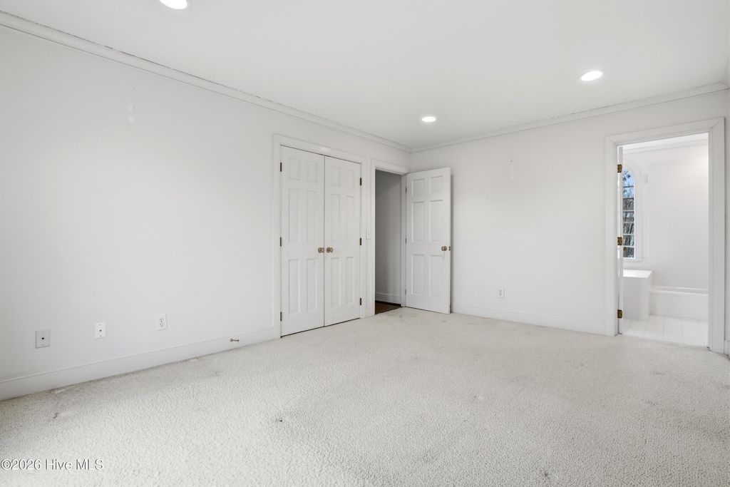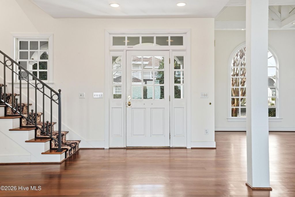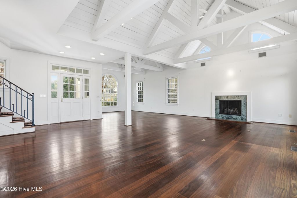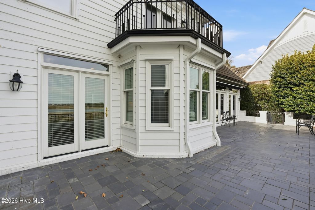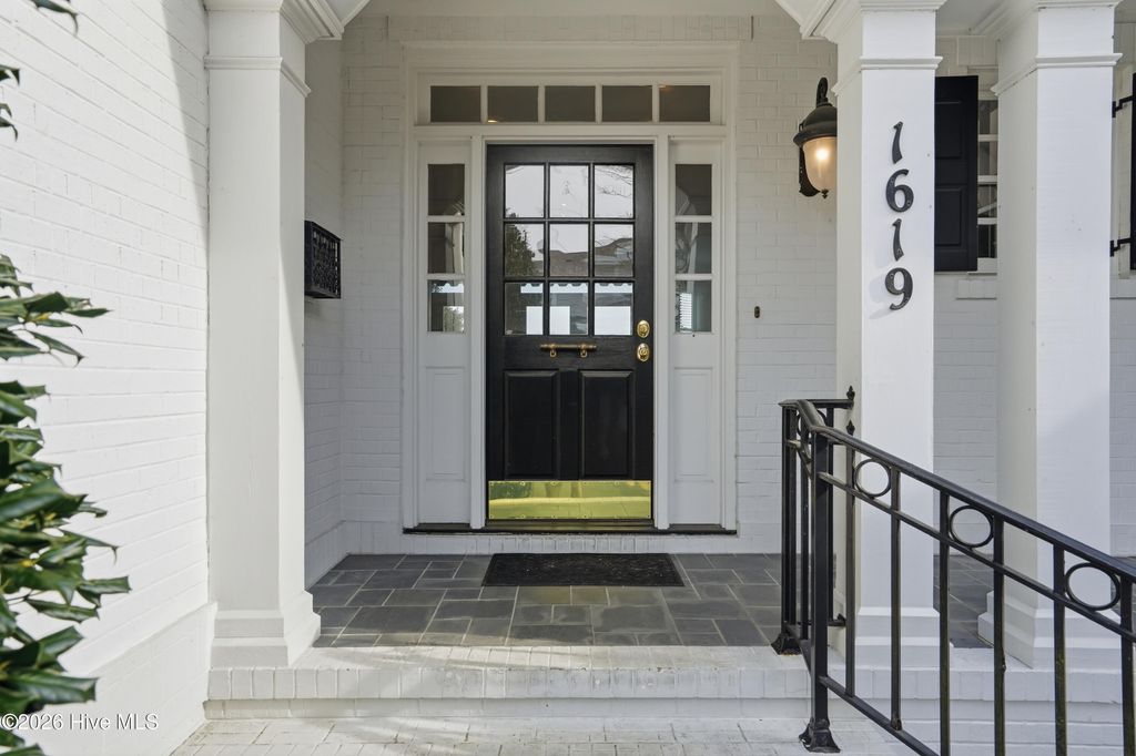 Experience timeless architecture and refined coastal living in this stunning brick residence located within the prestigious gated community of Landfall. Tucked into a lush, wooded setting with manicured gardens and Intracoastal views, this home offers approximately 3,100 sf, including a private (586sf) guest apartment above the detached garage ~ complete with full bath and kitchenette, ideal for extended stays or multigenerational living. Inside, cathedral ceilings with exposed beams create an unforgettable first impression in the main living areas. Rich hardwood flooring, custom millwork, and elegant formal living and dining rooms blend seamlessly with comfortable everyday spaces. The bright white kitchen features custom cabinetry and thoughtful built-ins. A gracious first-floor primary suite provides privacy and convenience, while expansive porches and terrace spaces invite effortless indoor-outdoor entertaining. Walls of windows frame the serene landscape, filling the home with natural light and Intracoastal views. Every detail reflects quality craftsmanship and distinctive European charm. Located just minutes from Wrightsville Beach, shopping and dining at Mayfaire Town Center, this exceptional property offers the perfect balance of luxury, lifestyle, and location!