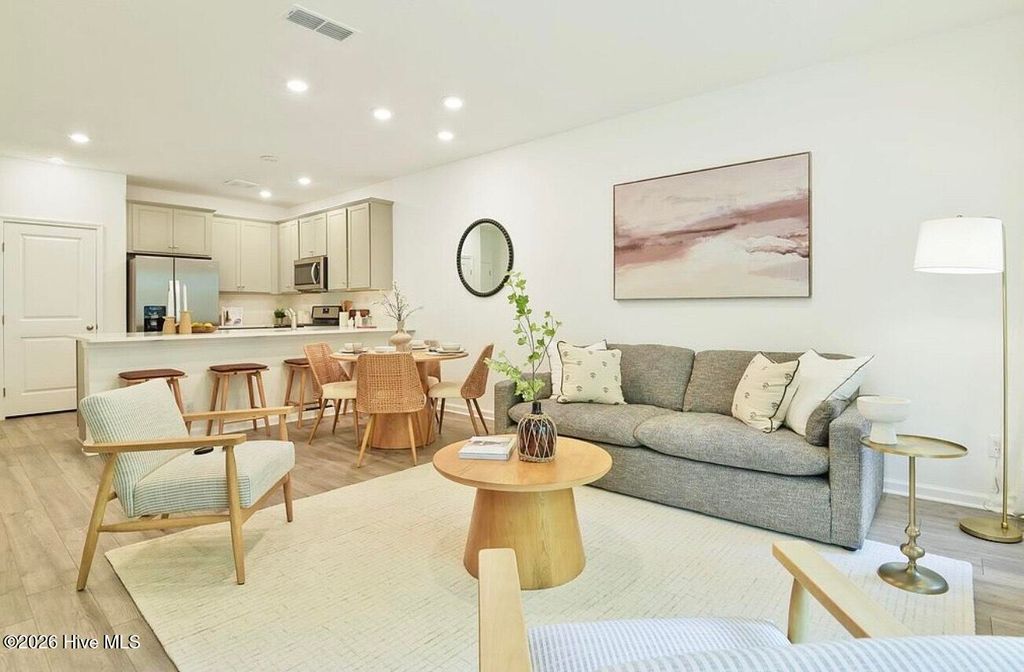 The Watercrest townhome in Sandy Hollow combines modern style with practical living. This two story home features a two car garage and an open concept main level with 9 foot ceilings, abundant natural light, and a bar style counter perfect for meals or casual entertaining. The kitchen includes quartz countertops, a single basin sink, stainless steel appliances, and energy efficient LED lighting, while a convenient powder room completes the first floor. Upstairs, three bedrooms offer flexible space for families or a home office. The primary suite includes a dual vanity, quartz countertops, and a walk in shower, while an upstairs laundry adds everyday convenience. This home comes complete with a refrigerator, washer, dryer, garage door openers, and 2 inch blinds on all windows. Nestled in the established Sandy Hollow community, residents enjoy a peaceful setting, select homesites with wooded backyard views for added privacy, and HOA-maintained grounds that include lawn care for ease of townhome living. With use of the seller's preferred lender, qualified buyers may be eligible for available financing incentives, which could include closing cost assistance. Incentives are subject to credit approval, program guidelines, and change without notice and are not guaranteed. Additional peace of mind comes with a one year limited home warranty, a six year structural warranty, and a termite colony elimination system with first year service included.