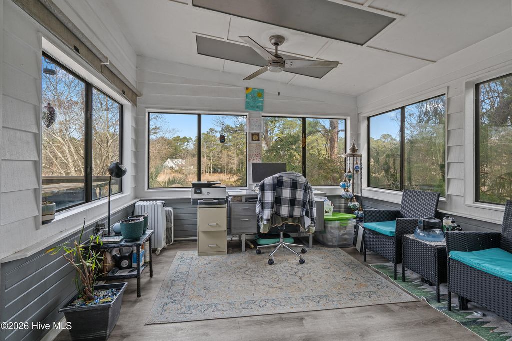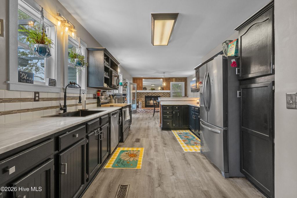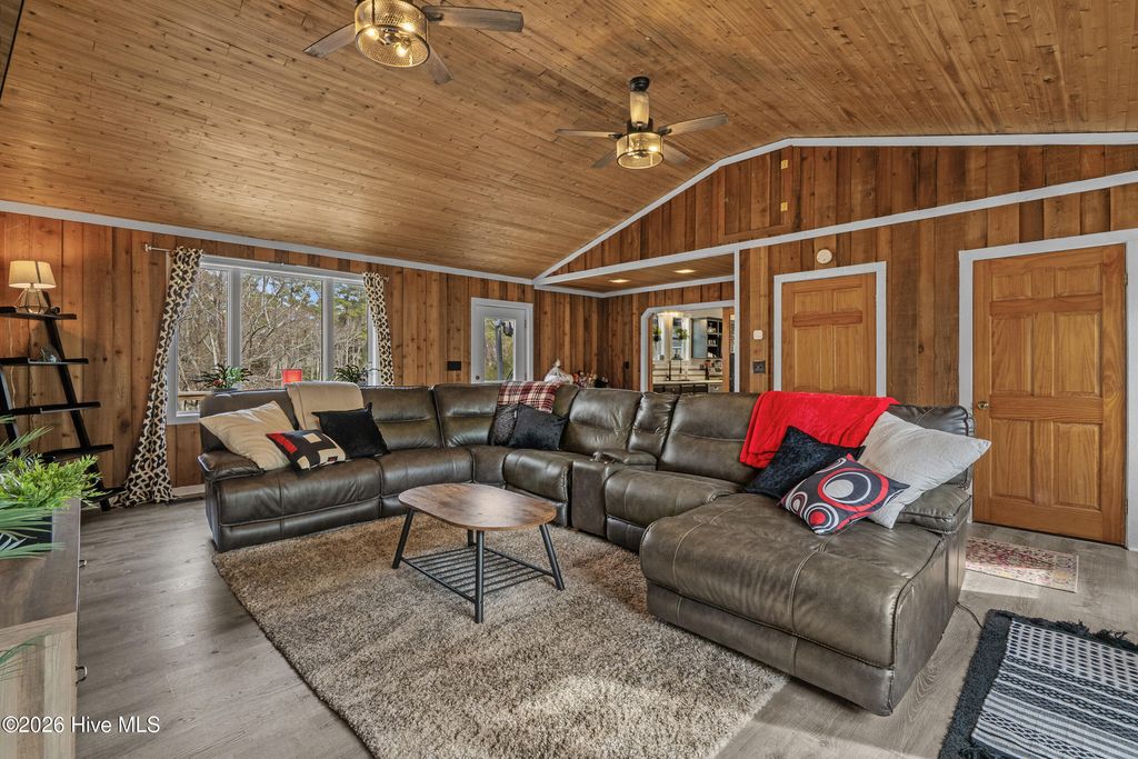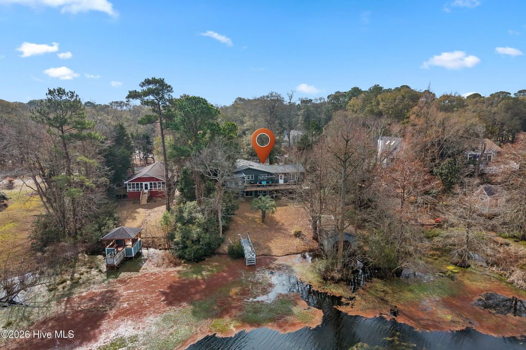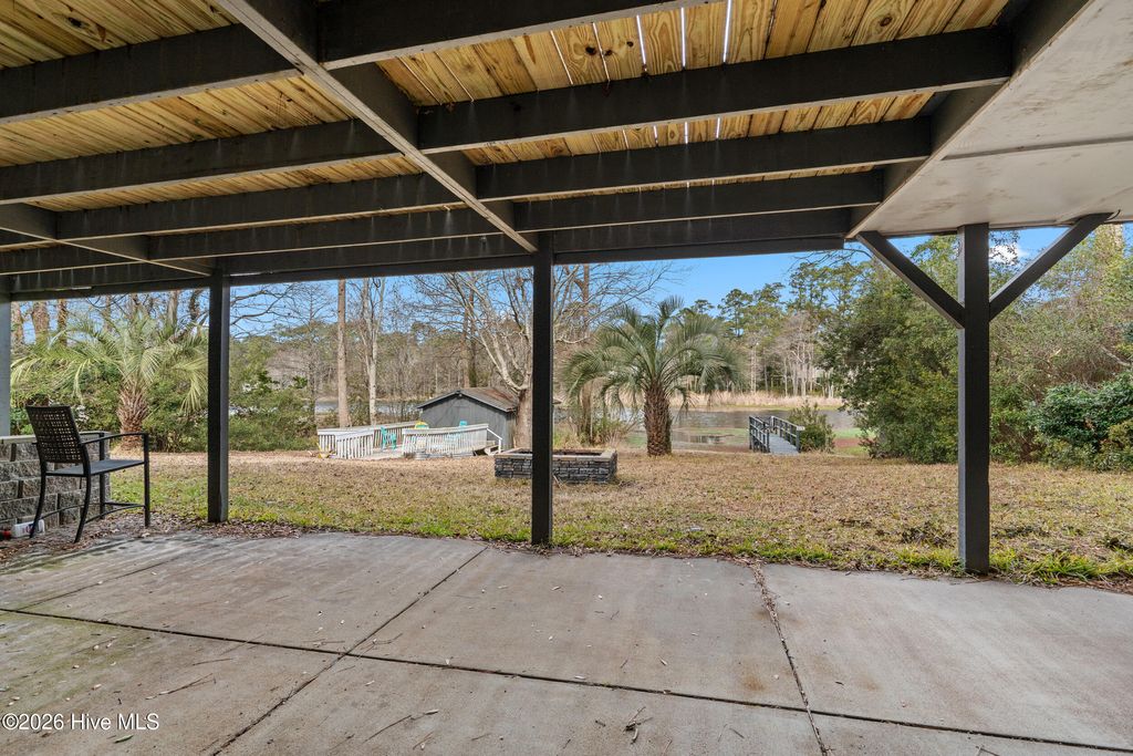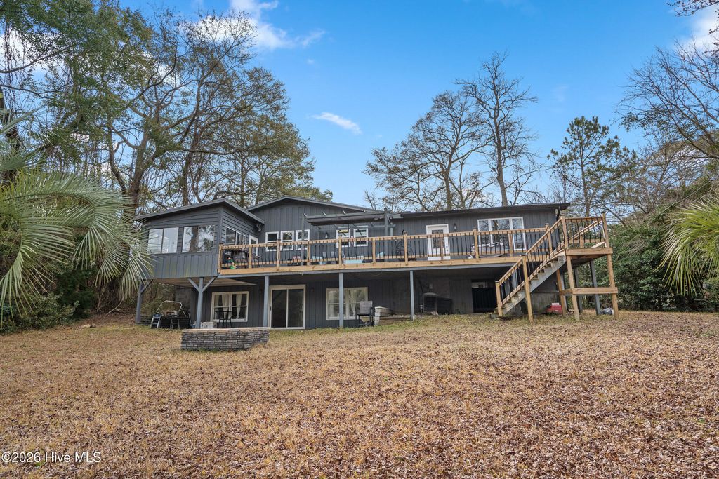 Sunset Beach riverfront gem! This 3-bed, 3.5-bath home offers sweeping Calabash River views from multiple indoor and outdoor spaces. Soaring knotty pine ceilings, cedar walls, oversized windows, and an updated kitchen with black cabinetry, marble counters, and panoramic views make every day a retreat. The primary suite features a walk-in closet, dual sinks, a whirlpool tub, and a separate shower. Two additional bedrooms with updated baths provide comfort and privacy. A finished walk-out basement with a fireplace adds a versatile living space. Outdoor living shines with an elevated deck, riverside patio, boathouse, and pier access. Front entry ramp, attached garage with workshop, and two lots (31 & 32) included. Enjoy peaceful coastal living in the Sunset Lakes community, near Bird Island, Sunset Beach, and local dining. Waterfront living at its finest!