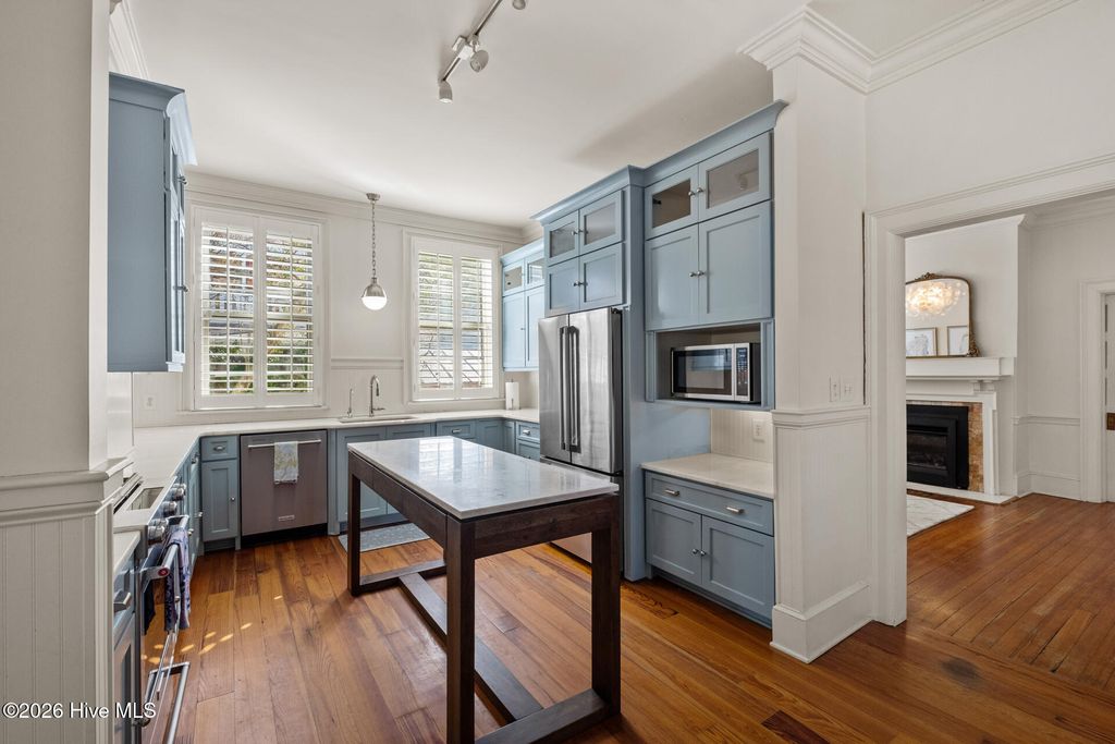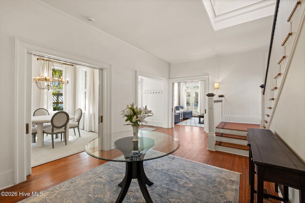 Dram Tree Realty proudly presents the Louis T. Moore House; a fine example of careful renovation in historic downtown Wilmington.The Coastal Shingle Home, built in 1910, is one of the larger, grand homes along beautiful 5th Avenue. With sidewalks and a new bike path directly in front of the home, the area is both walkable and bikeable to all of the attractions that make historic downtown Wilmington a truly desirable place to live. Step into the gracious foyer and experience the light and bright ambiance that will lead you to the formal living room with double french doors that open to the wrap around front porch. The flow of the home is perfect for entertaining, with a formal dining room and large den (that was once and could be again a spacious formal dining room). The kitchen is completely updated, while maintaining a cottage feel. A sunroom/breakfast room leads to the newly rebuilt back deck and a back yard just big enough for a kitchen garden or cook-out! Upstairs you will find a true en-suite primary bedroom with a dressing room and large walk-in closet. The en-suite bathroom features a beautiful jacuzzi tub with a dedicated heat source, separate large shower, two sinks and a toilet room for privacy.Two additional bedrooms and baths make living easy in this beautiful home. There is a walk-in attic and walk-in basement! Many updates and improvements have been made recently, including (but not limited to) lined chimneys for working fireplaces, refurbished guestroom bath, new water heater, new fence and landscaping for easy enjoyment of the yard, new hvac and ductwork, new gas line and new bilco door for the basement! This home makes living in a 100+ year old home easy, with off street driveway parking and all of the conveniences of a newer home- but better! Come and see it today!