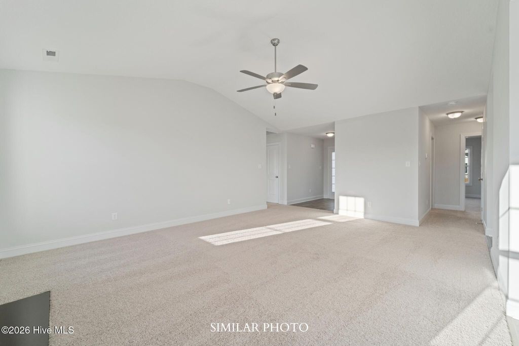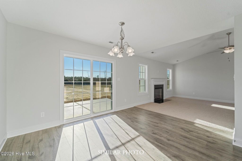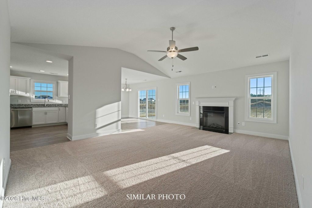 Welcome to the highly desired & popular community of Onslow Bay. Brand new construction built by Onslow County's most trusted & preferred builder. Onslow Bay is a hot spot, 3 miles to MCB Camp Lejeune's Piney Green gate, 14 miles to New River Air Station & minutes to area schools, shopping & dining. This beautiful neighborhood is sure to impress, complete with a clubhouse area & community pool. The Vienna 1583, 3 bedrooms & 2 bath with approx. 1583 heated square feet. The quaint but spacious foyer welcomes you into the huge 14x13 living room that is open to the kitchen. The living room features a ceiling fan and a fireplace with a custom mantel. The kitchen features staggered flat panel cabinets, a pantry, and stainless-steel appliances to include a smooth top range, dishwasher, and a built-in microwave. The grand master bedroom is approx. 12x 16 with a huge walk-in closet that is approx. 9x13. Master bath features dual vanity, separate shower and a soaker tub. Bedrooms 2 & 3 are on the opposite side of the house giving you plenty of privacy, both prewired for a ceiling fan. Out back is your open patio for all your entertaining or morning coffee. Call today! NOTE: Floor plan renderings are similar and solely representational. Measurements, elevations, and specs may vary in final construction. Limited selections for buyer to choose. Call L/A to verify.