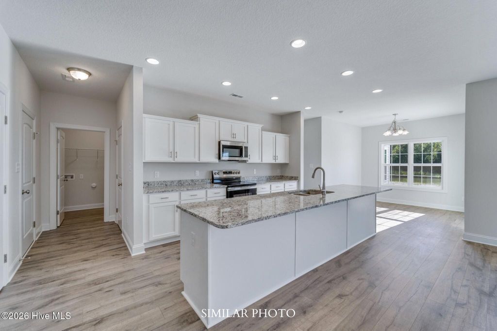 Welcome to the highly desired & popular community of Onslow Bay. Brand new construction built by Onslow County's most trusted & preferred builder. Onslow Bay is a hot spot, 3 miles to MCB Camp Lejeune's Piney Green gate, 14 miles to New River Air Station & minutes to area schools, shopping & dining. This beautiful neighborhood is sure to impress, complete with a clubhouse area & community pool. Welcome to the Shiloh - an inviting and well-designed single-level home offering approximately 1,727 heated square feet, featuring 4 bedrooms and 2 bathrooms. Step inside to a spacious, open-concept layout that provides a natural flow from the living area to the kitchen and dining space--perfect for both everyday living and entertaining. The kitchen includes ample counter space, functional design elements, and plenty of room to gather. The primary suite is thoughtfully placed for privacy and comfort, featuring a sizable walk-in closet and an en-suite bathroom with modern finishes. Three additional bedrooms offer versatility for guests, remote work, or hobbies. With its balanced layout, comfortable design, and timeless appeal, the Shiloh floor plan offers flexibility to suit a variety of lifestyles. Come see how this home can meet your needs; both now and in the future. NOTE: Floor plan renderings are similar and solely representational. Measurements, elevations, and specs may vary in final construction. Limited selections for buyer to choose. Call L/A to verify.