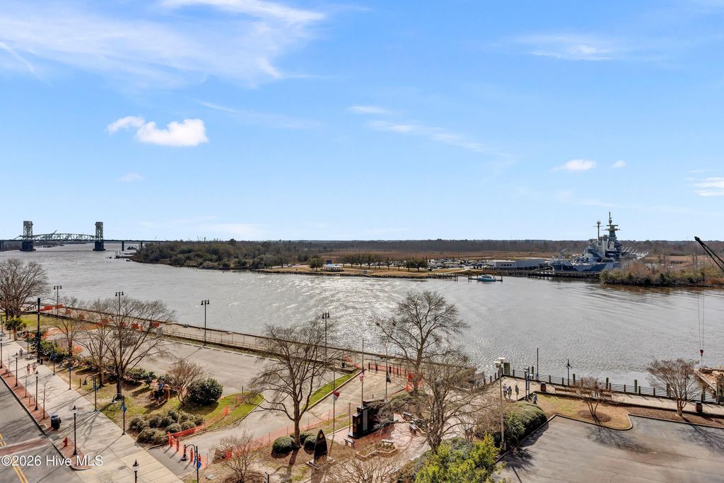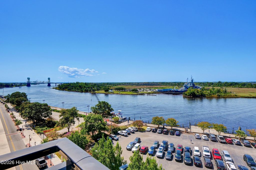 Elegance meets modern comfort in this pristine 2 bed 2.5 bath condo in the landmark River Place community. Spacious and highly sought after floor plan with majestic views of the Cape Fear River enhanced by dedicated flex space for office/study. Gourmet kitchen features a large waterfall quartz counter top island, soft close cabinetry, pantry with pull out shelves, tiled backsplash, Kitchen Aid appliances and more. Beautiful engineered hardwood flooring throughout living space, bedrooms and walk-in closets. High design upgrades complimented by custom closets, pantry and window treatments elevating this truly sophisticated space. Enjoy sweeping water views from oversized picturesque windows with cascading natural light and an oversized private balcony. An exquisite space to entertain and view boaters, ships and magical sunsets. Top tier amenities include consierge service, well-appointed owners club room, community pool and fitness center. Two conveniently assigned/reserved parking spaces in River Place parking deck. Easy access to fabulous dining experiences, music venues, the arts, shopping, River Walk and a lifestyle you will LOVE in the heart of Downtown Wilmington.