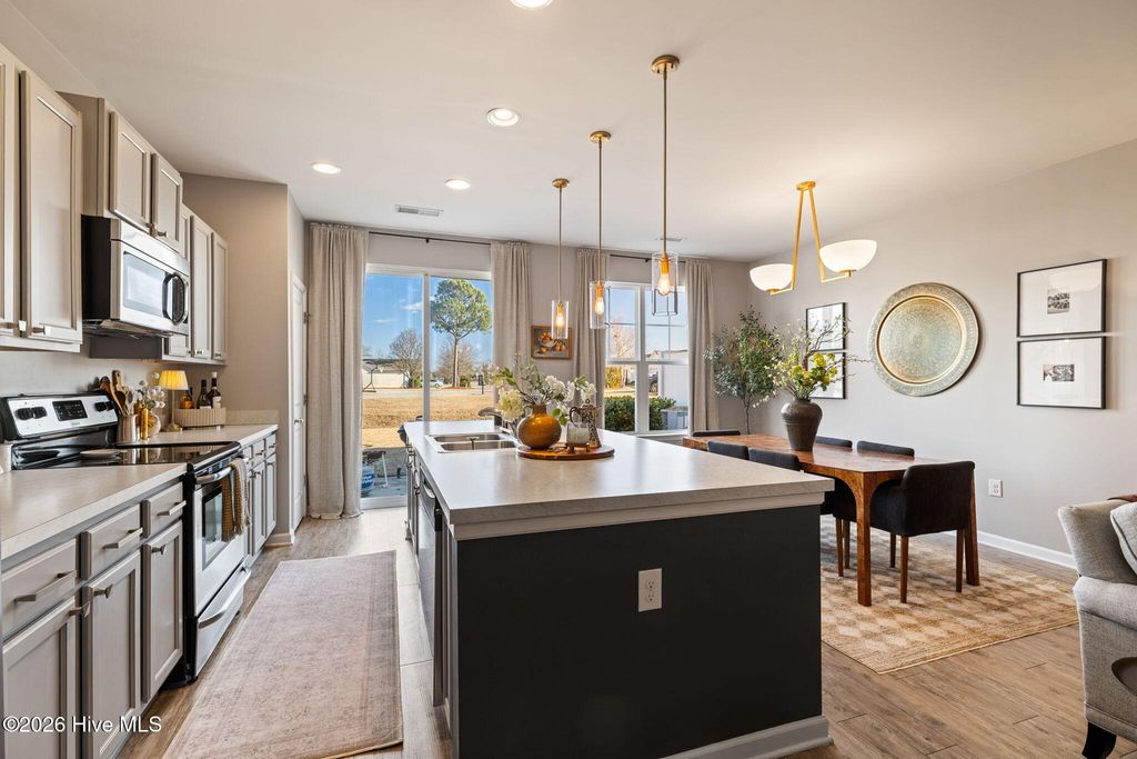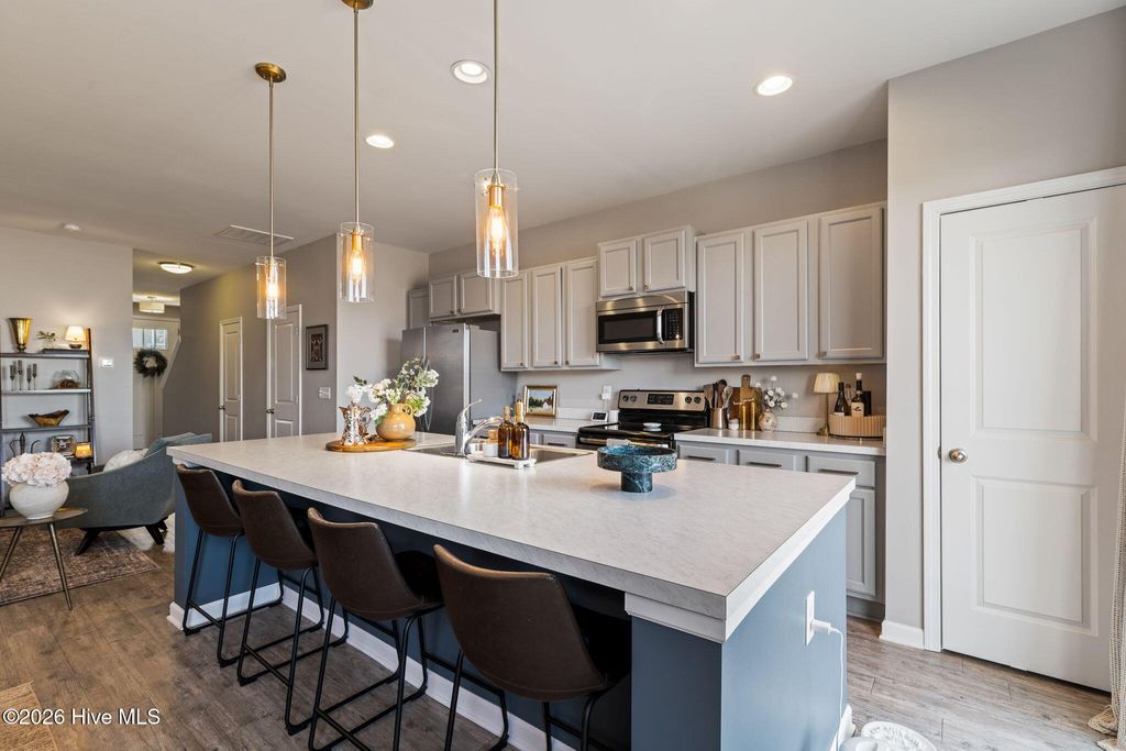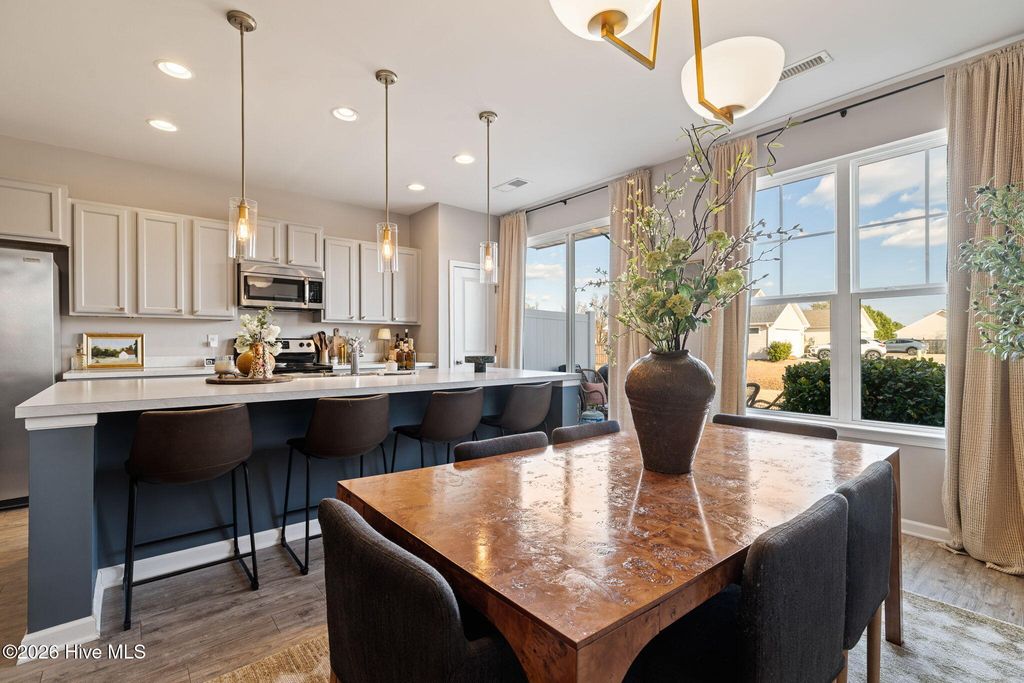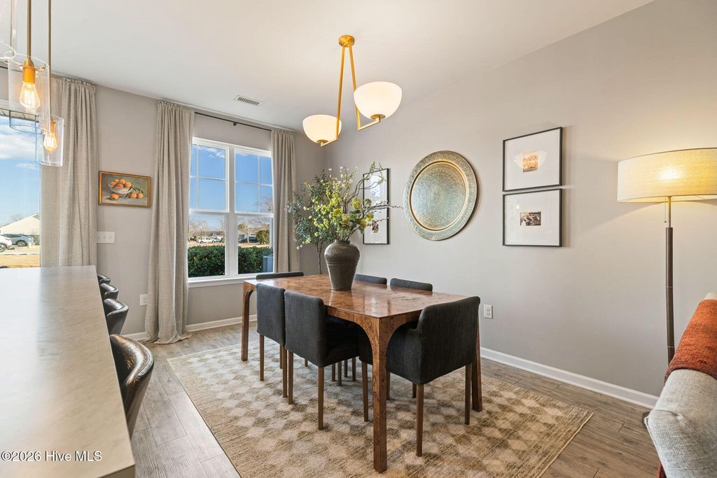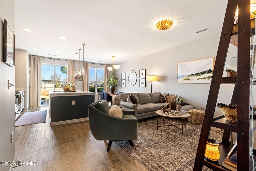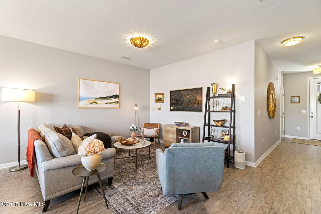 Welcome to the desirable Reserve at West Bay Estates Townhomes in Wilmington, NC 28411, where thoughtful design meets low-maintenance living. This beautifully upgraded townhome has been completely transformed beyond its original builder-grade feel. With a true interior designer's touch, the seller has elevated every space through fresh, modern paint selections, updated hardware, curated light fixtures, and high-end Roman shades and shutters throughout, creating a cohesive, polished aesthetic you'll feel the moment you walk in. The main level features a spacious open-concept layout with stainless steel appliances, a large pantry, dedicated dining area, and an oversized living room perfect for entertaining or relaxing at home. The primary suite is conveniently located upstairs and offers privacy and comfort, away from the two additional bedrooms, plus a laundry room with washer and dryer included. One of the standout features of this home is the thoughtfully converted garage space -- currently serving as a stylish office/man cave. Whether you work from home, need a private retreat, gym, or creative space, this bonus area offers incredible flexibility that sets this unit apart, but could easily be converted back to a garage, if needed. Enjoy peaceful evenings on the back porch and the convenience of easy townhome living in one of Wilmington's most desirable areas -- just minutes from Ogden shopping, dining, and the beaches. This is not your standard Reserve at West Bay townhome -- this one truly feels custom.