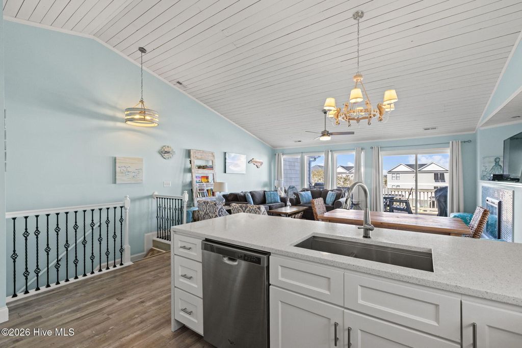 Back on the market, at no fault to the sellers. Previous contract terminated due to buyer related circumstances. Turn-key, fully-furnished 4-bedroom, 3 full bath, end unit townhome with consistent vacation season rental history in the heart of Surf City. Spacious inside entryway, Cali bamboo LVP throughout the home (no carpet). Fully renovated kitchen with beautiful waterfall edge sparkling white quartz counter. Soft close cabinets and drawers. Stainless steel appliances. Custom coastal tile in the kitchen and fireplace surround. Located on the ocean side of Topsail island, with a convenient walkway for a brisk 2 min walk to the beach. Carport under house can accommodate two cars and there is parking in front of the home for two additional cars. Large storage room in the carport for all of your beach gear! One new HVAC system is currently being installed, adding to the value and peace of mind for the next owner!