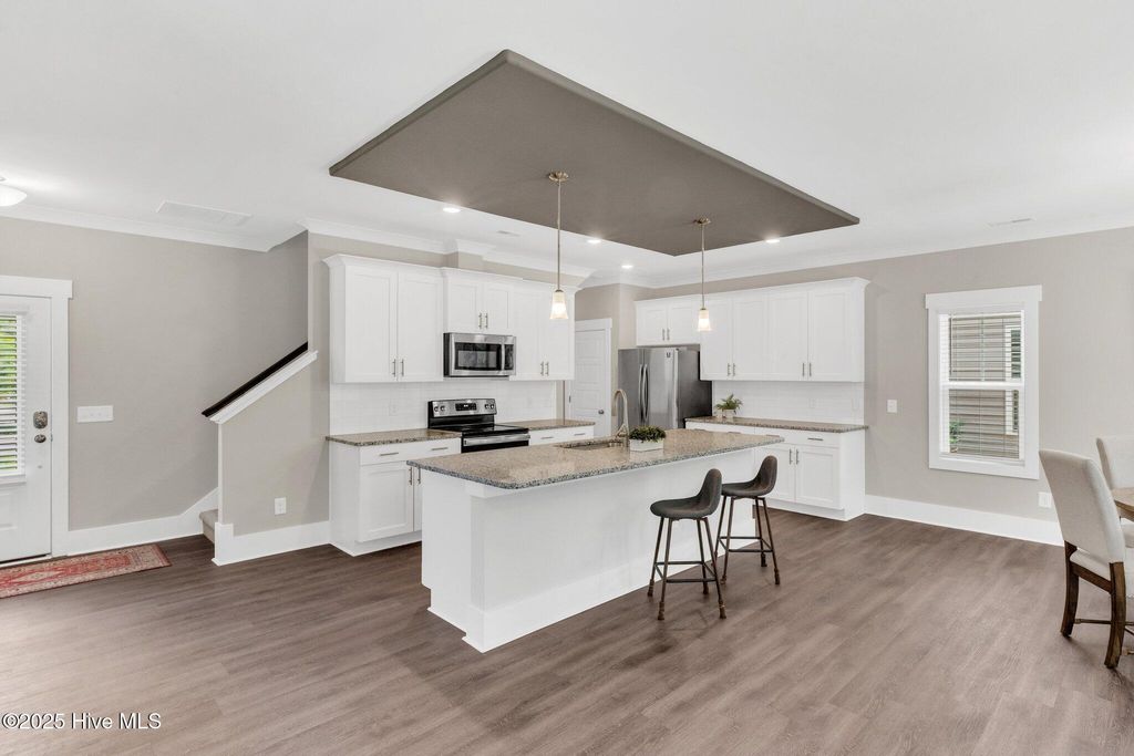 Bright Coastal Retreat Minutes from Carolina Beach Welcome to 753 Cypress Village Place, a beautifully maintained one owner second home in the desirable Cypress Village community in southern Wilmington. Built in 2021 and lightly lived in, this 4 bedroom, 2.5 bath home offers modern style, functional space, and a convenient coastal location. Inside, you will find an open and inviting floor plan filled with natural light, luxury vinyl plank flooring, and spacious living and dining areas that work well for both everyday living and entertaining. The kitchen is designed to be the center of the home, featuring stainless steel appliances, granite countertops, a large island with bar seating, white cabinetry, tile backsplash, recessed lighting, and a walk in pantry. Upstairs, the roomy primary suite includes a custom accent wall, an oversized walk in closet, and a private bath with double vanity, step in shower, and separate water closet. Three additional bedrooms provide flexible space for guests, a home office, or hobbies, including one bedroom with its own walk in closet. A full hall bath, laundry room, and linen storage add everyday convenience. Step outside to a private back patio, ideal for grilling, relaxing, or enjoying the peaceful setting. A two car garage and attic space provide excellent storage. Located in a quiet 36 home community with sidewalks and green space, this home is just minutes from Carolina Beach, shopping, restaurants, medical care, and downtown Wilmington. With no city taxes and move in ready condition, this is a great opportunity to own a like new home in a prime coastal location.