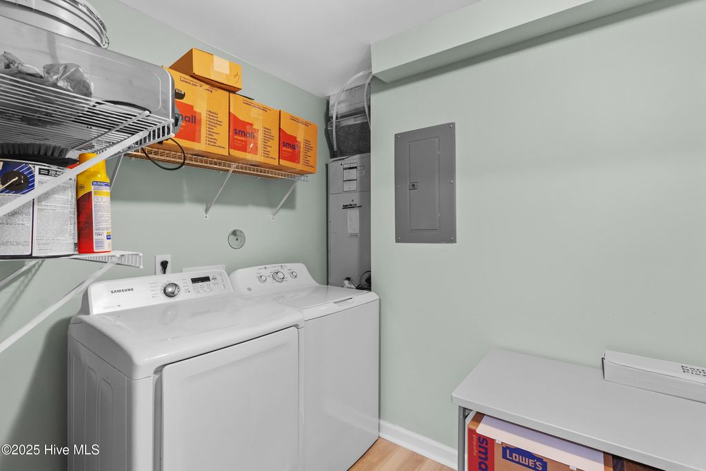 Midtown living at it's best! This beautifully updated 2 bedroom, 2 bath condo is perfectly located just minutes from the beaches, downtown Wilmington, and the hospital -- making everyday living incredibly convenient. Enjoy stylish LVP flooring, fresh coastal paint colors, updated kitchen with new countertops & cabinetry, cozy gas log fireplace, screened porch overlooking peaceful woods, custom California Closets in both bedrooms, all appliances including washer & dryer, a home warranty for added confidence, and community pool. Tucked at the end of a quiet cul-de-sac, this downstairs unit offers privacy and easy access. Perfect for a first home, downsizing, or an investment property in a prime location.
