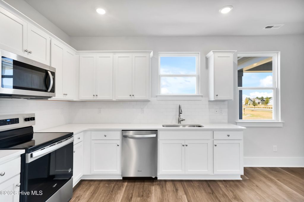 Welcome to The Pines at Blake Farm! The Bennett is a 2-story, 3-bedroom, 2.5-bathroom home with 1414 square feet of open living space. Its centerpiece is the showstopper kitchen, featuring a large island, stainless steel appliances, single basin sink, Quartz countertops, and a spacious pantry. This floor plan is perfect for entertaining or relaxing in style. The Primary Suite offers a massive closet and a luxurious bathroom with a walk-in shower, and dual vanity. With its open layout and sleek design, the Bennet is ideal for anyone seeking comfort and modern features but also functional living space. Home Is Connected® Smart Home Technology is included in your new home and comes with an industry-leading suite of smart home products including touchscreen interface, video doorbell, front door light, z-wave t-stat, & door lock all controlled by smartphone app with voice! Blake Farm is conveniently located near Highway 17 and I40, offering easy access to downtown Wilmington, Raleigh, Porters Neck, and Hampstead. Residents can quickly reach Mayfaire, grocery stores, and hospitals within a short drive. The amenity center will include a swimming pool, multi-sport court, and fire pit, ensuring a well-rounded and enjoyable living experience. Estimated completion Spring 2026.
